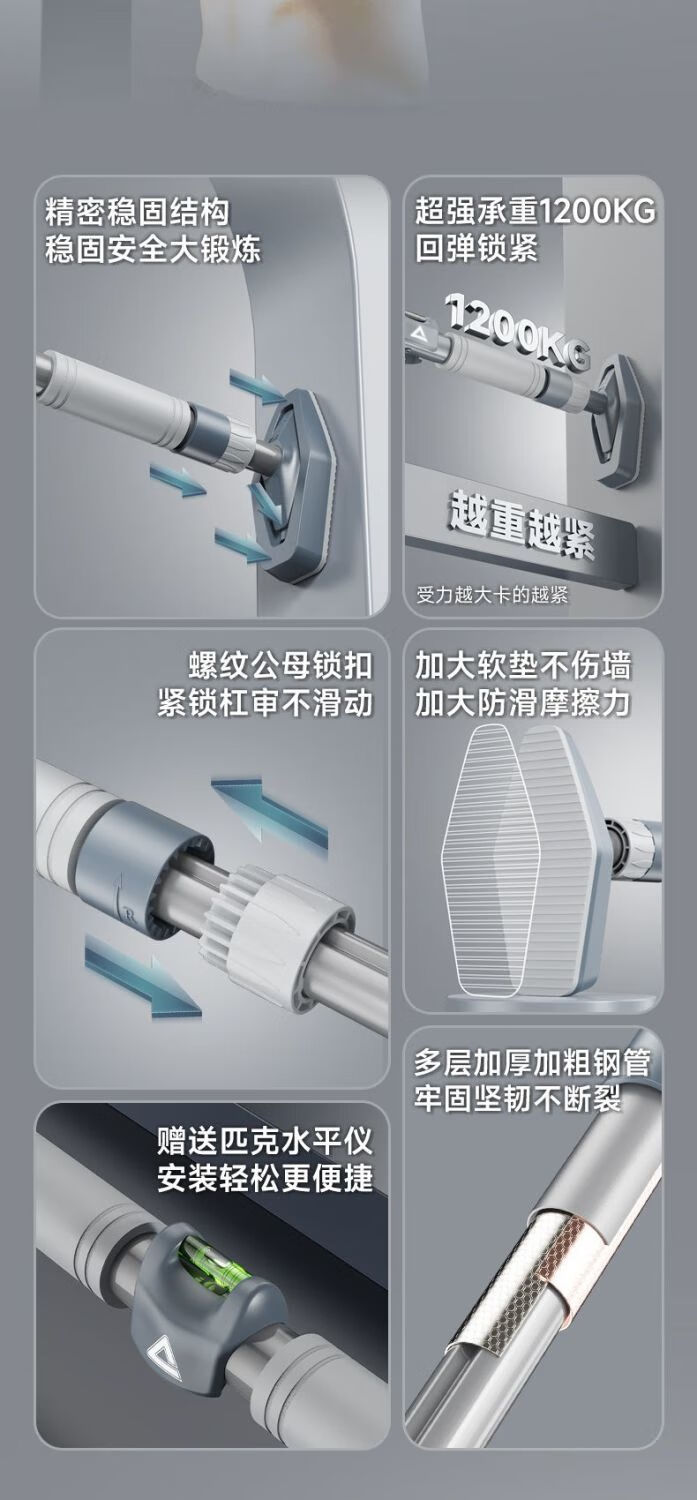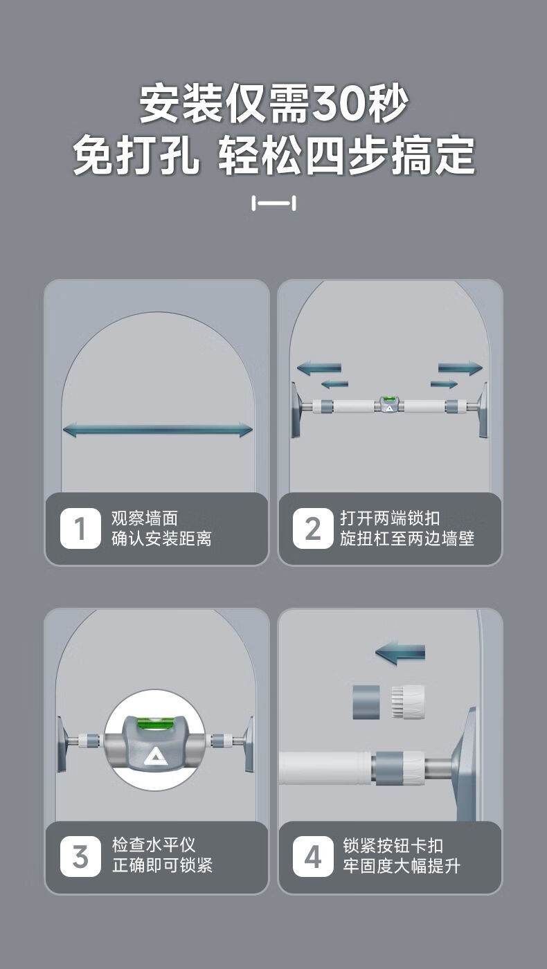 Pickup Pickup door-mounted horizontal bar without punching wall pull-ups auxiliary recovery device for lumbar spine loss home fitness equipment 65-96cm horizontal bar + hanging ring + fitness hook