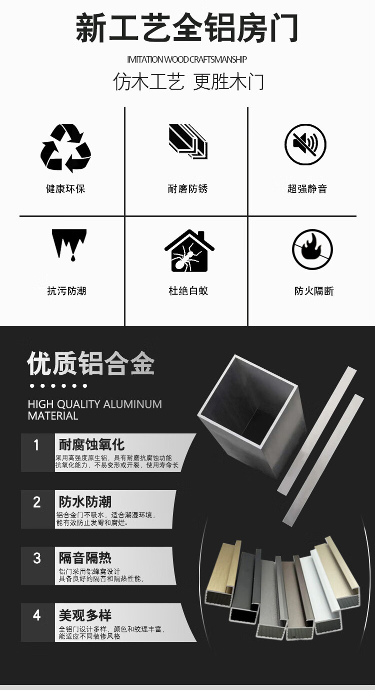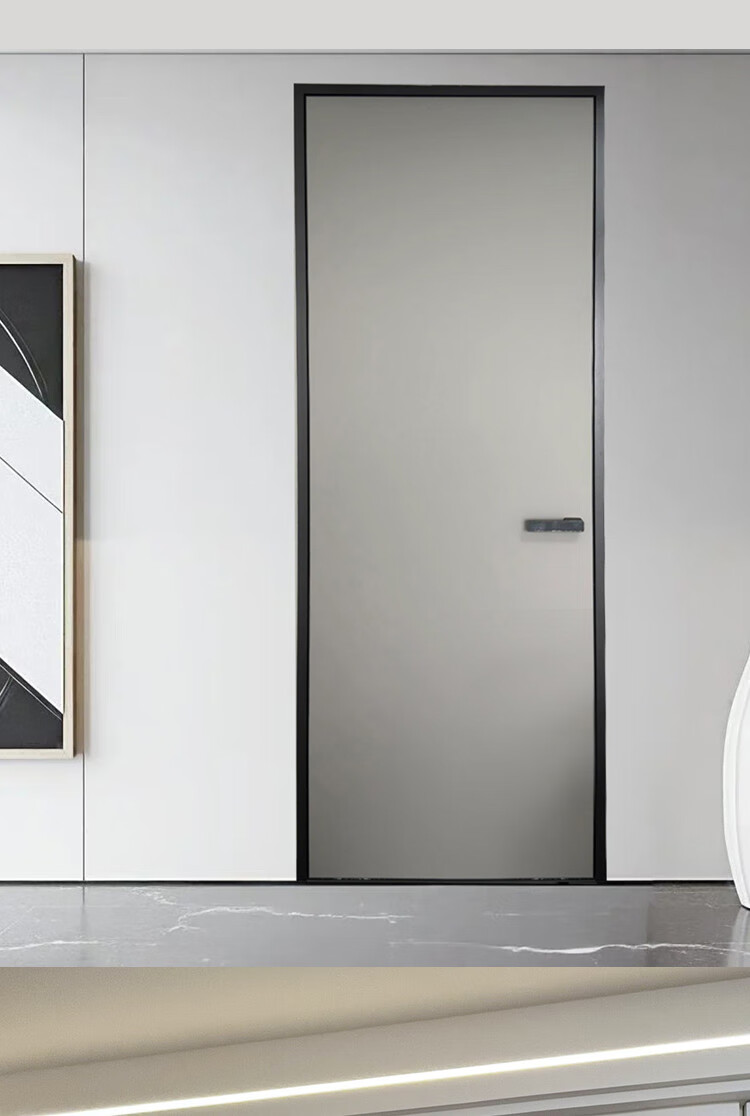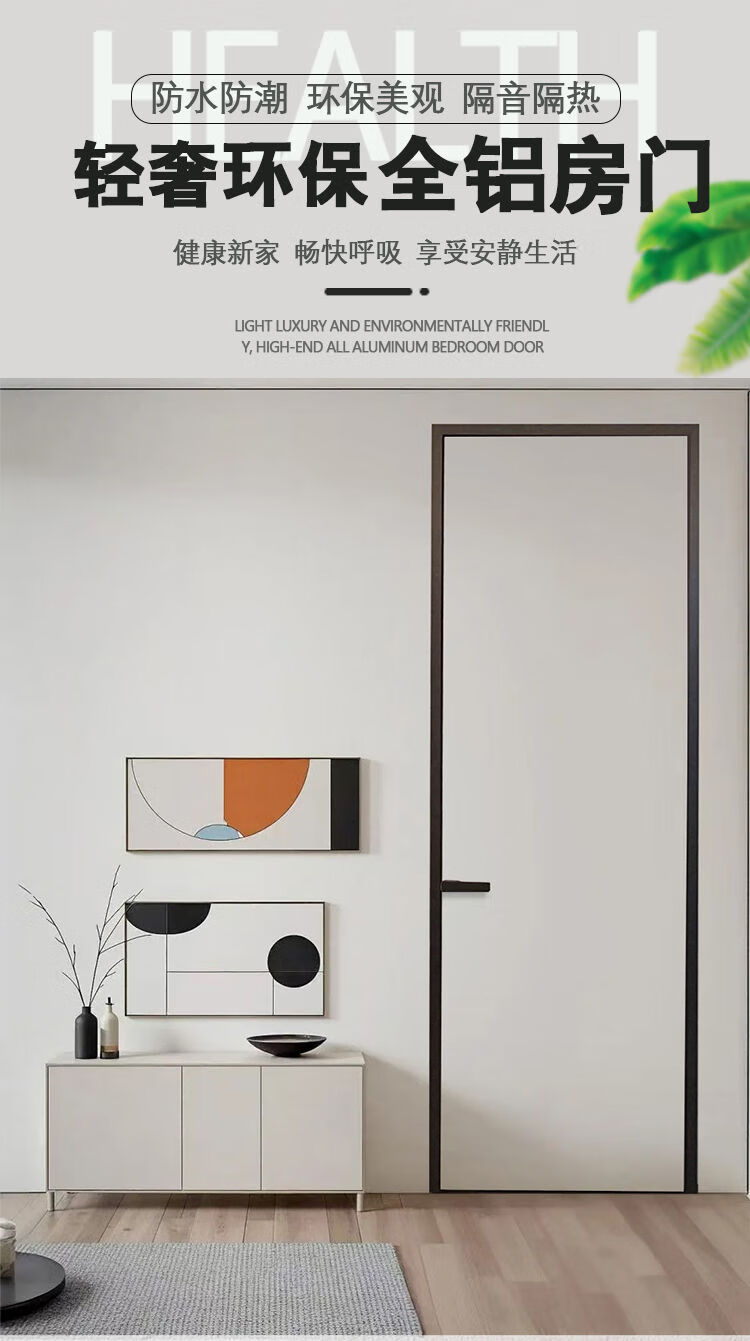 Minimalist bedroom all-aluminum wooden door anti-corrosion and moisture-proof hidden frame aluminum alloy soundproof indoor very narrow flat opening room door customization pure aluminum wooden door (flat on the outside and opening on the inside)