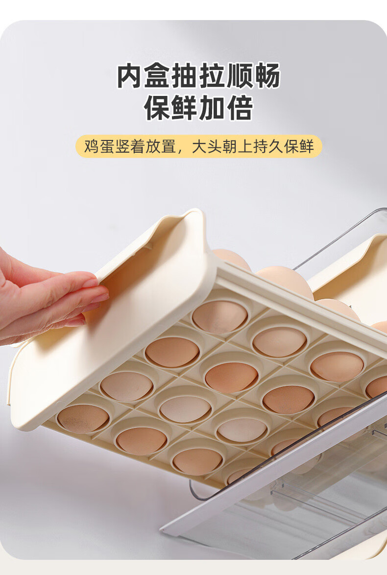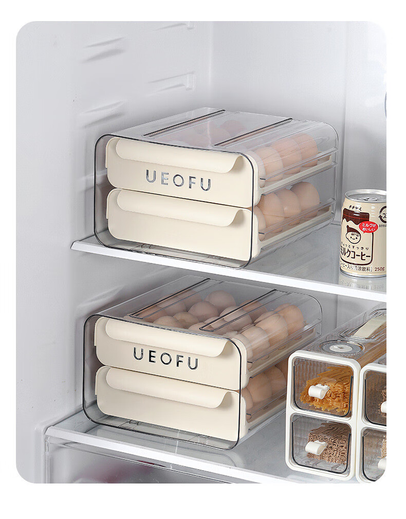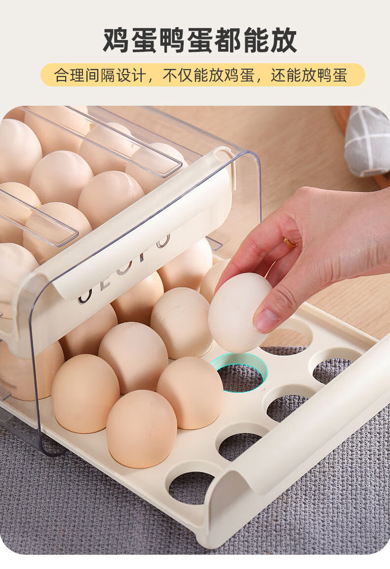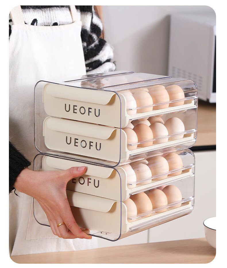 Kezitu carefully selected egg storage box kitchen refrigerator plastic transparent double drawer egg box native egg duck egg crisper new egg storage box printed cream white