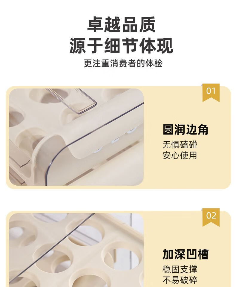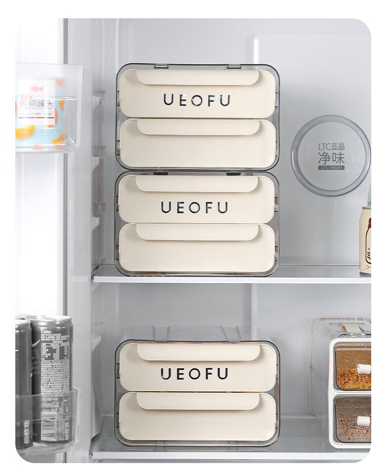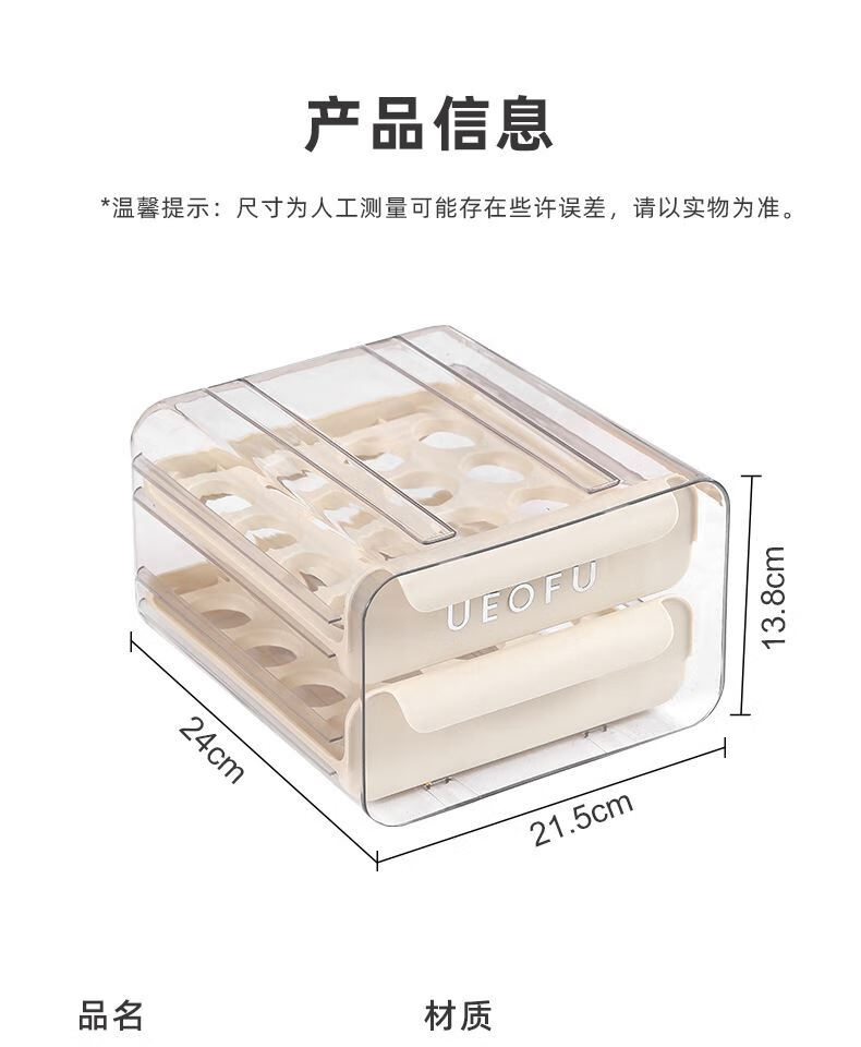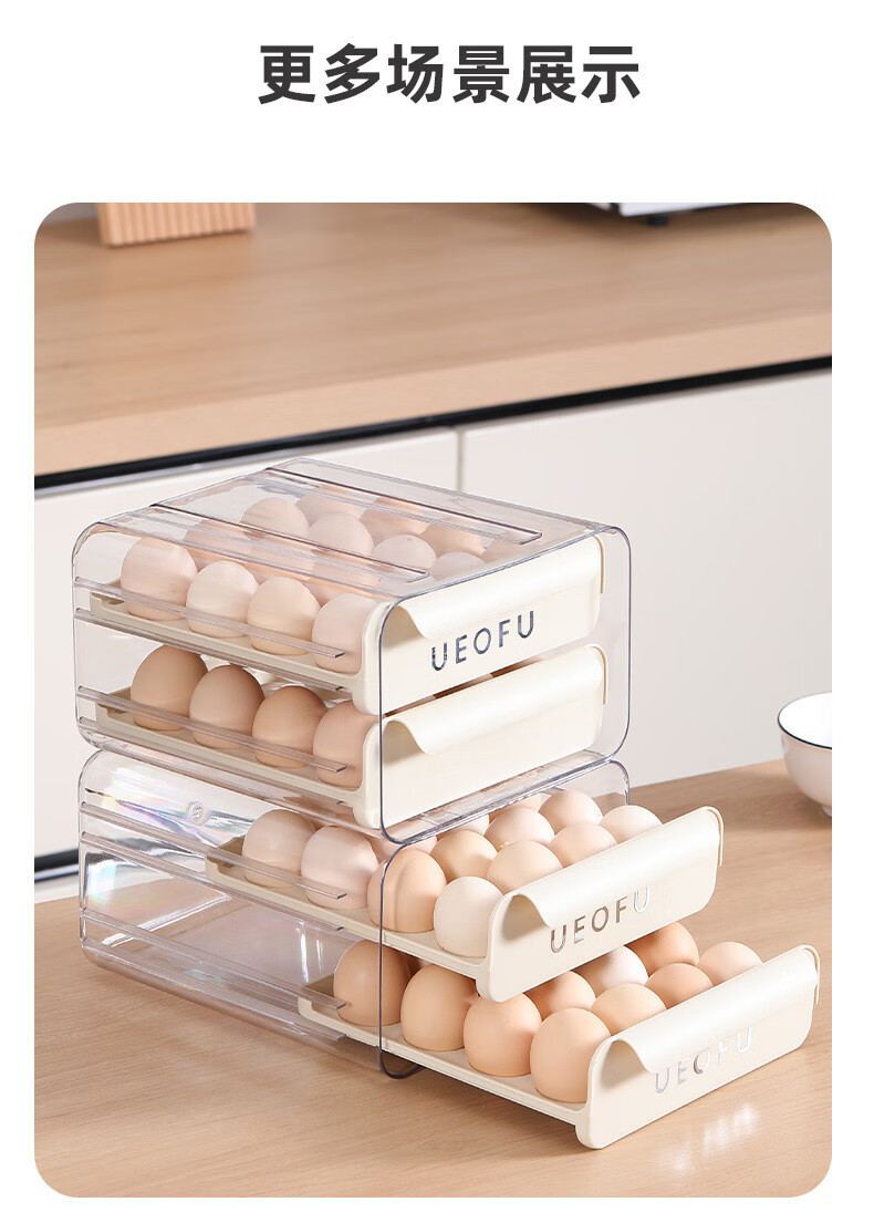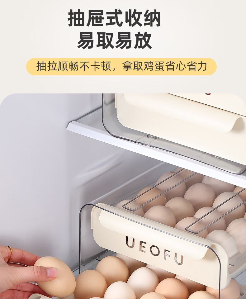 Kezitu carefully selected egg storage box kitchen refrigerator plastic transparent double drawer egg box native egg duck egg crisper new egg storage box printed cream white