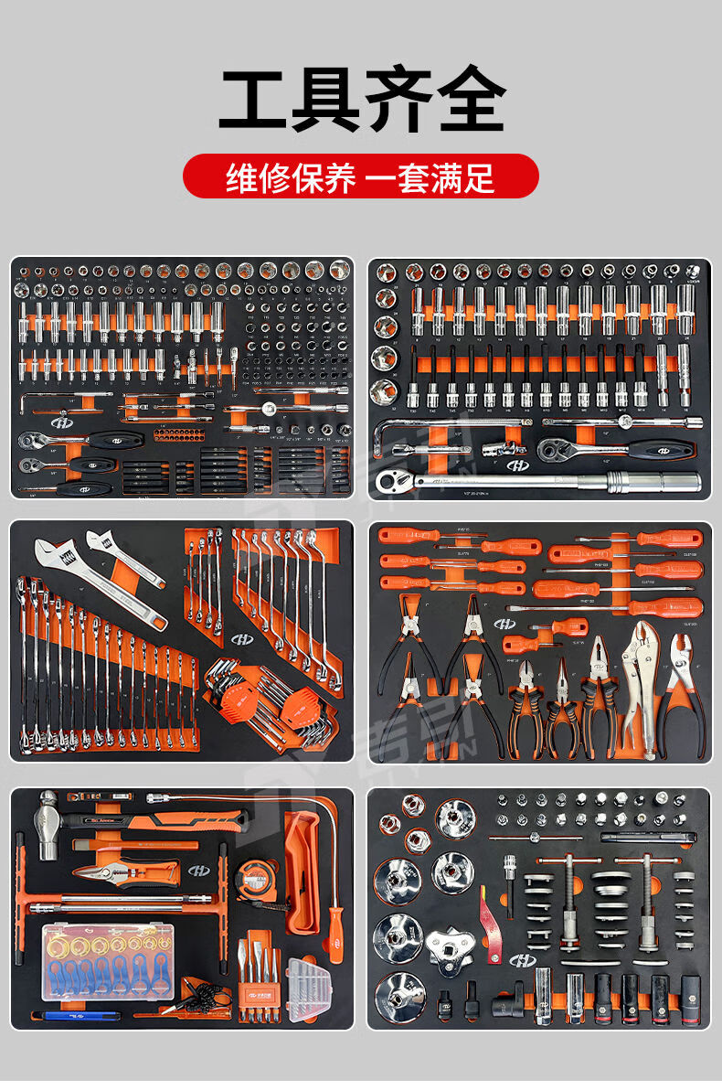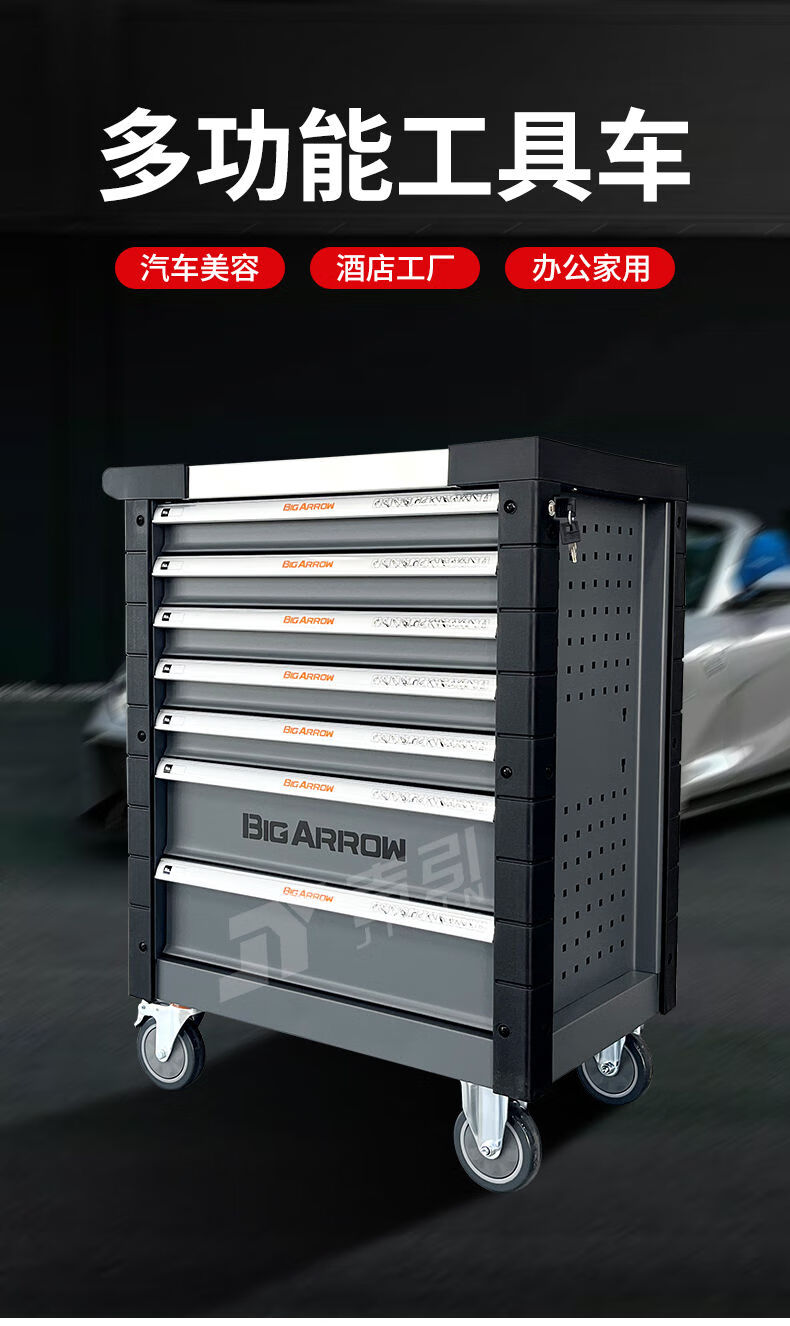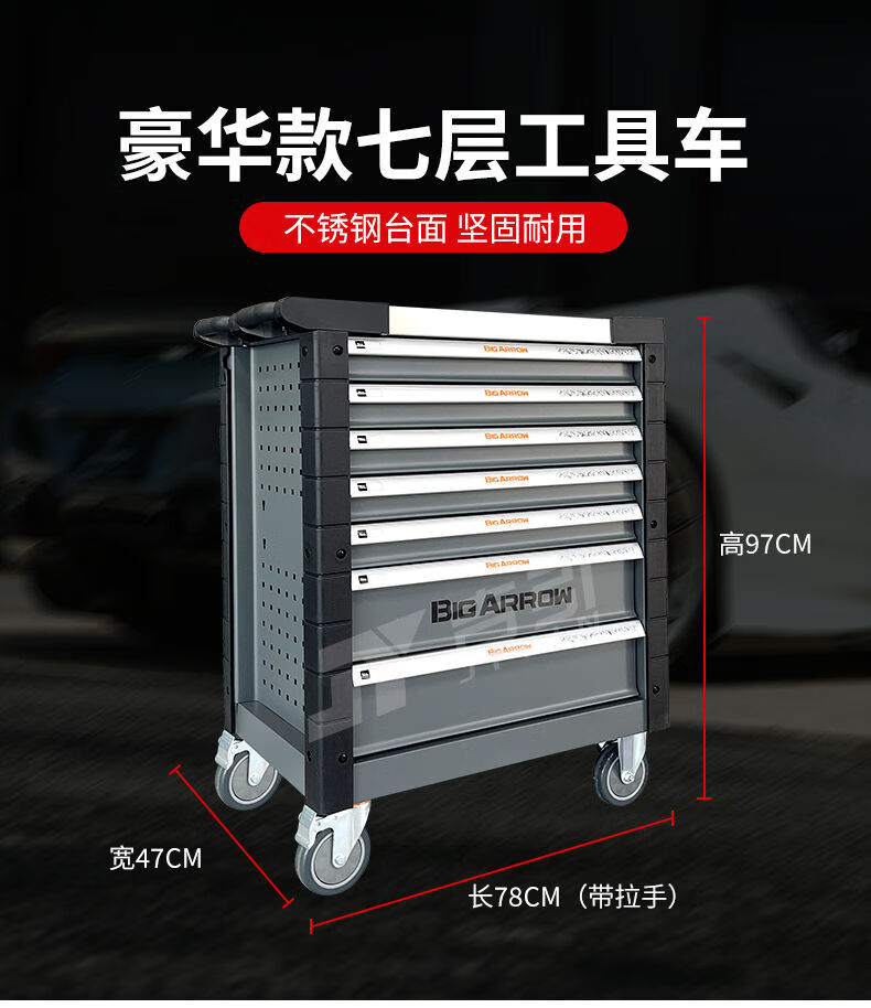 Huili Auto Repair Tool Cart with Drawer Heavy Duty Mobile Combination Tool Cabinet Multifunctional Repair Storage Tool Box Set Auto Repair 372-piece Tool Set + 7-Layer Tool Cart