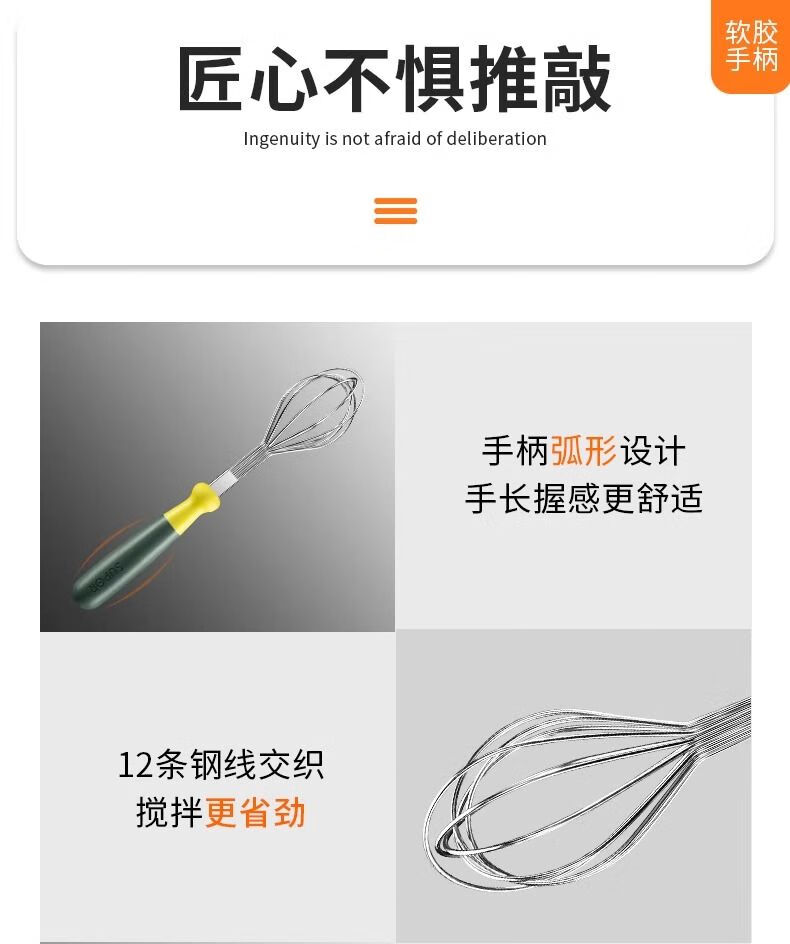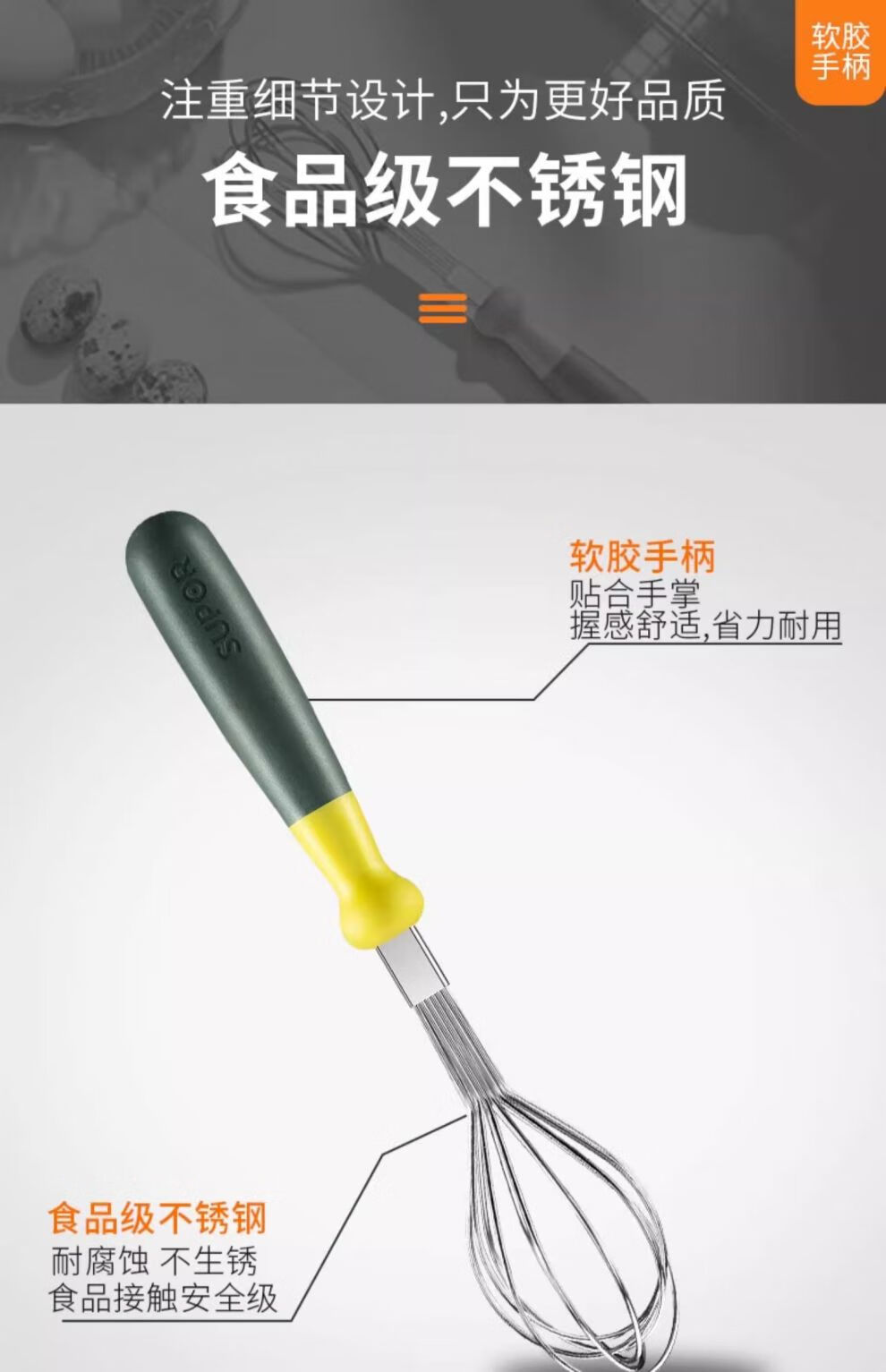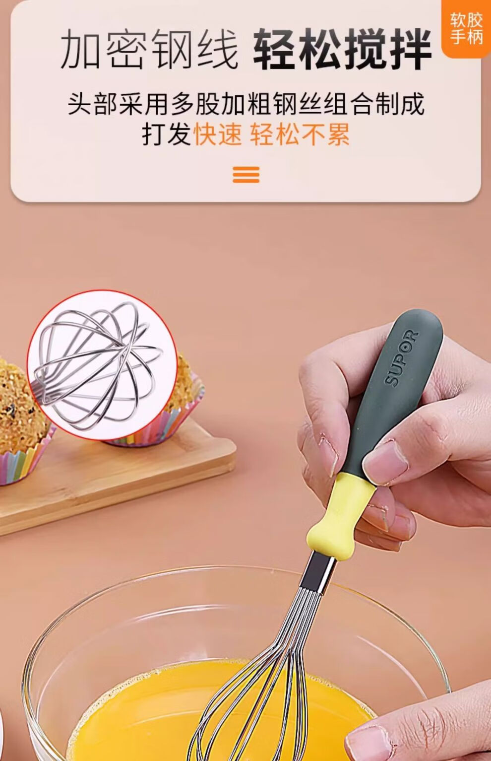 Supor Egg Beater Baked Egg Cream Beater Household Stainless Steel Egg Beating Stick Manual Mixer Manual Egg Beater