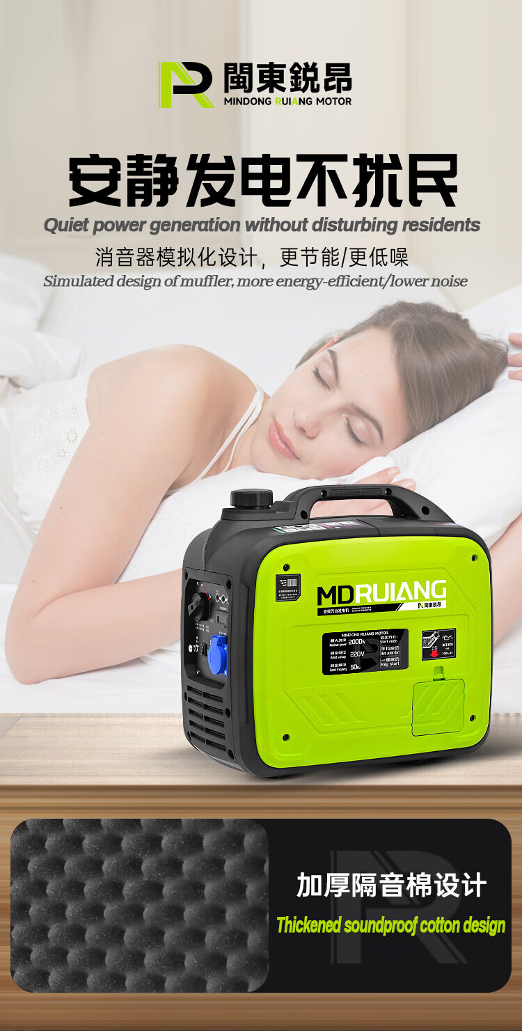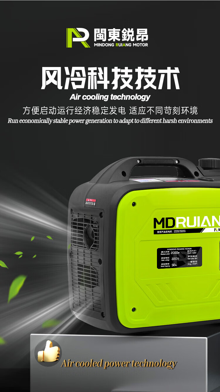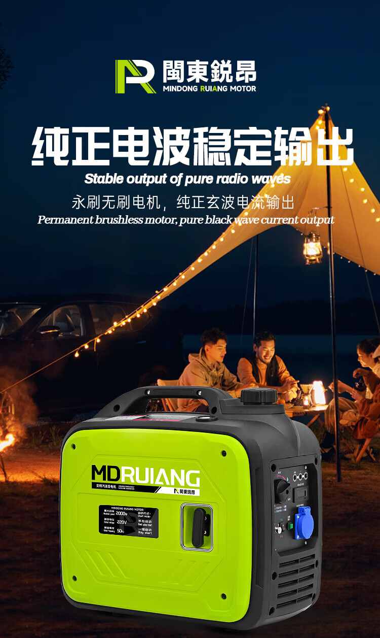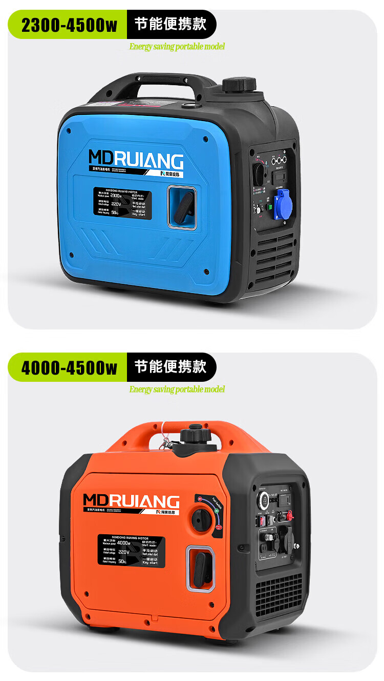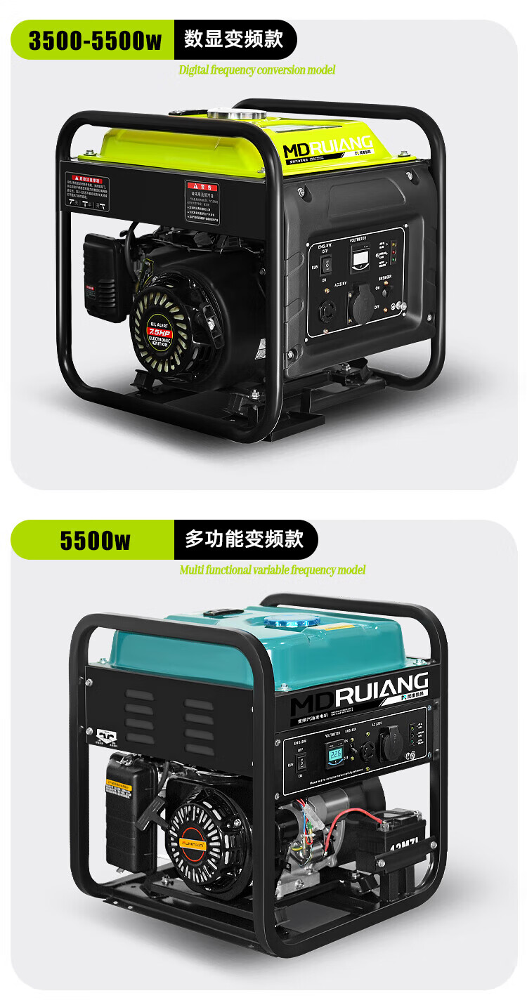 MieLanat MIELANAT Silent Variable Frequency Gasoline Generator Set for Camping 220V Small Home Outdoor 1.5kW - Open Frame - Single Phase 220V