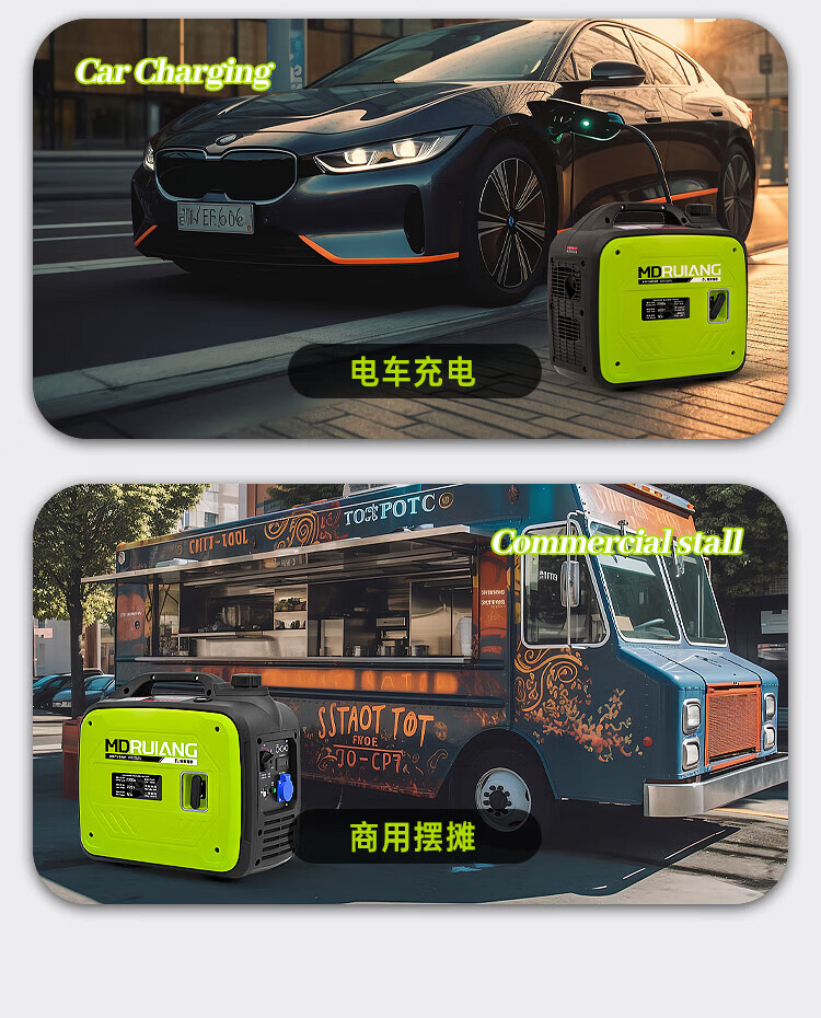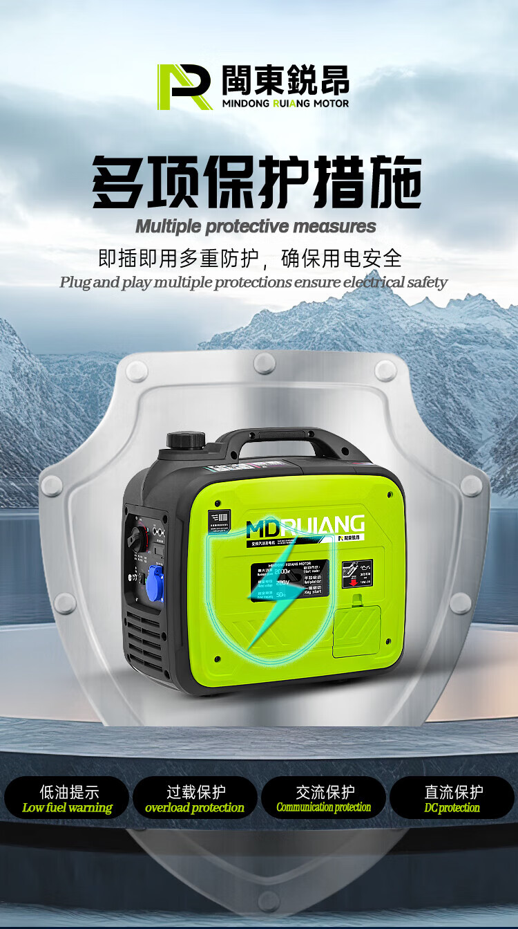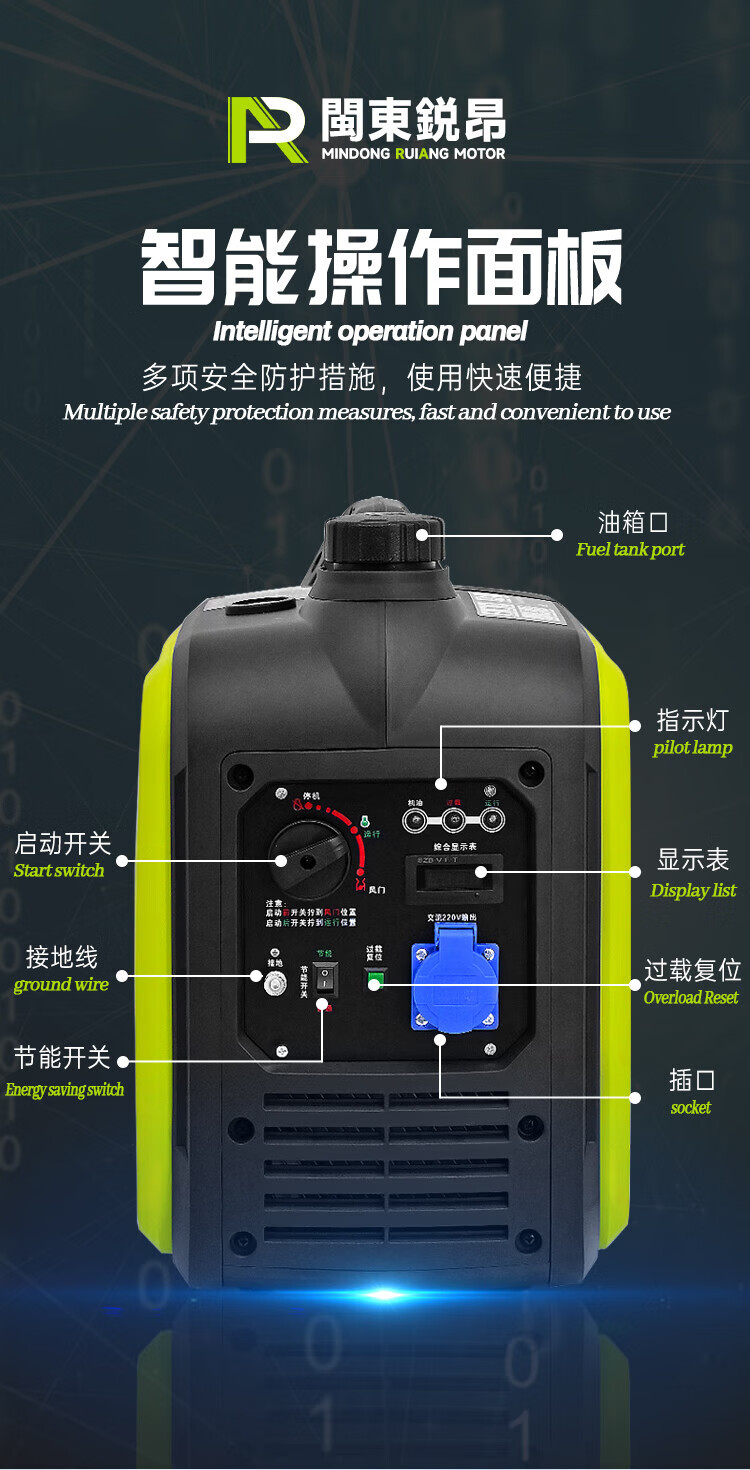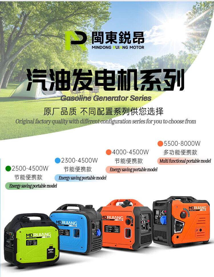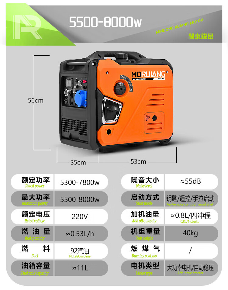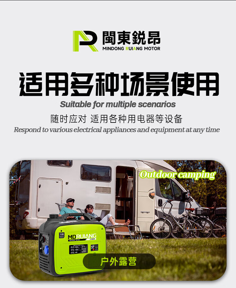 MieLanat MIELANAT Silent Variable Frequency Gasoline Generator Set for Camping 220V Small Home Outdoor 1.5kW - Open Frame - Single Phase 220V