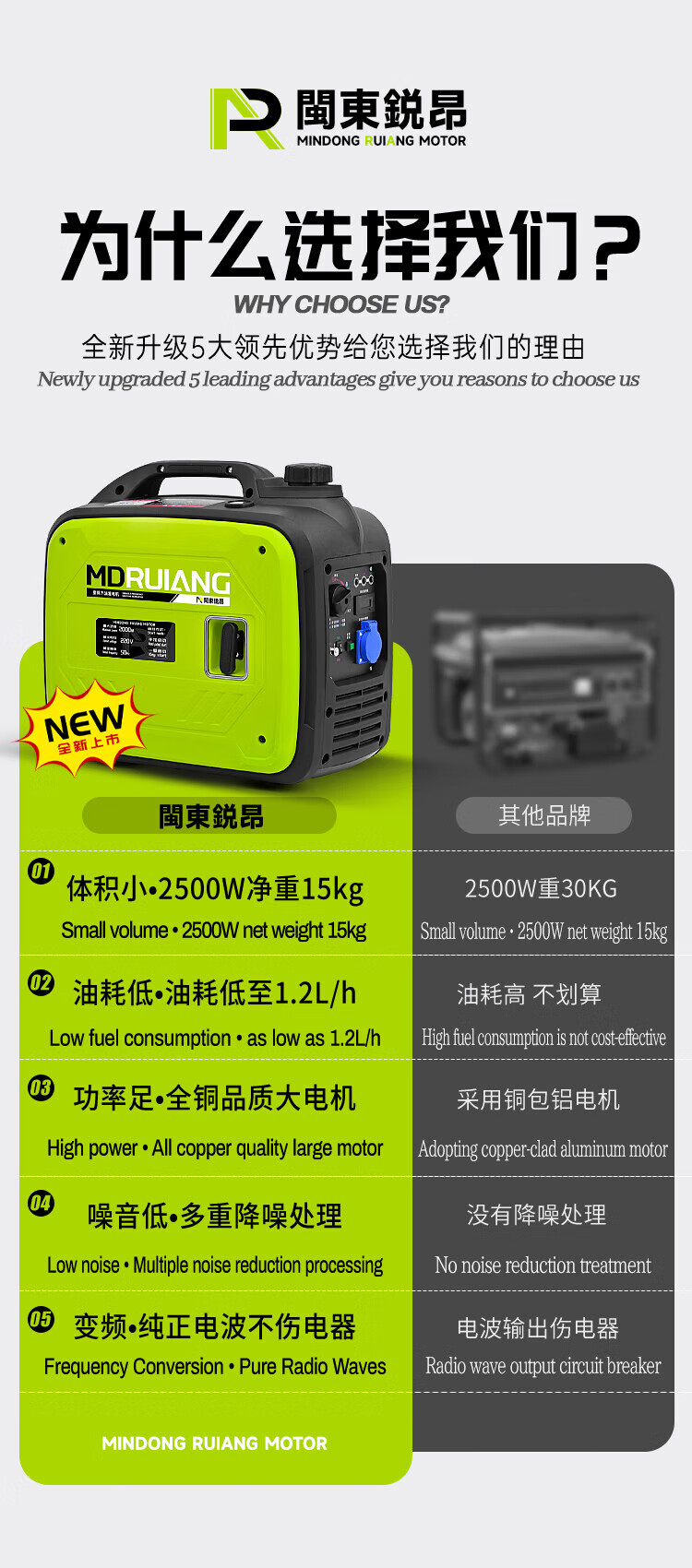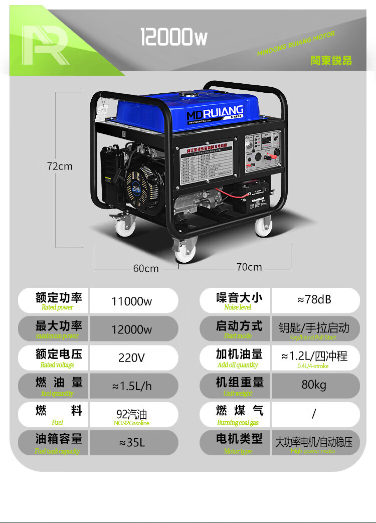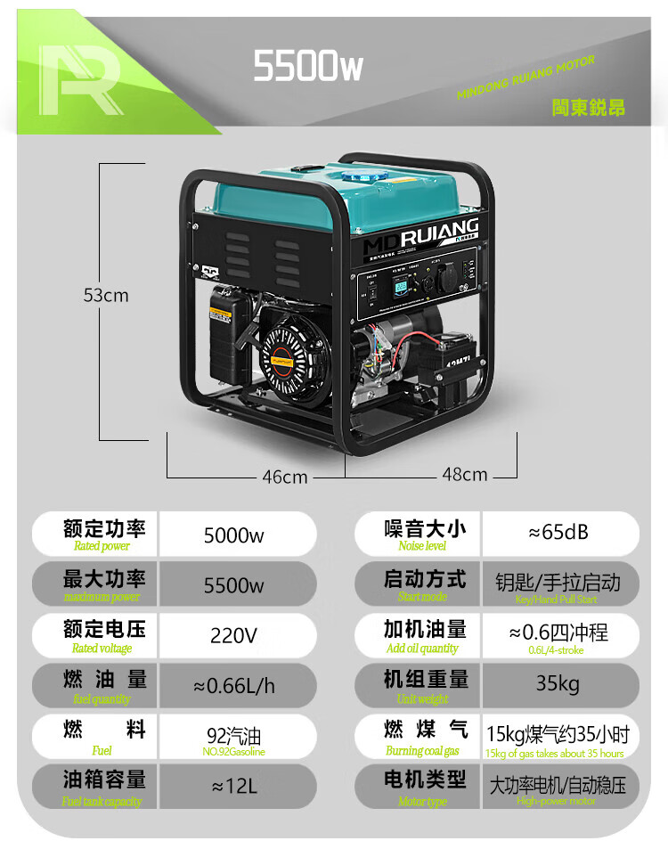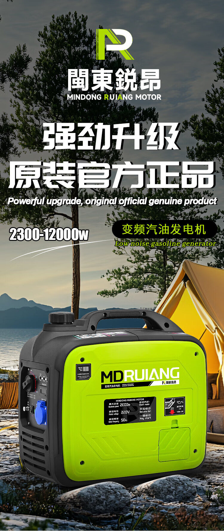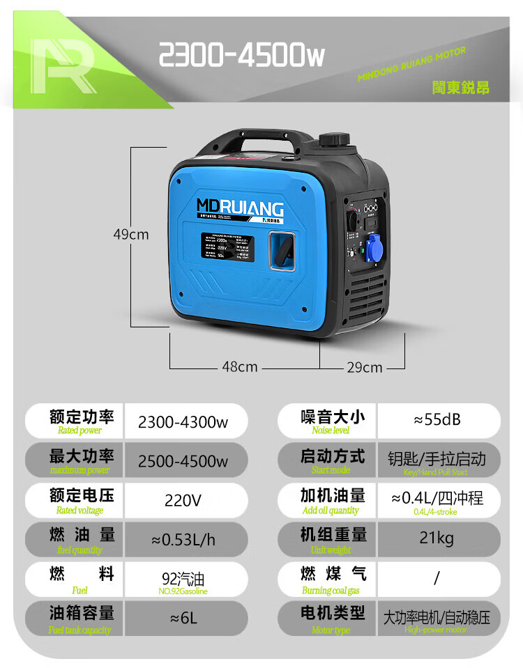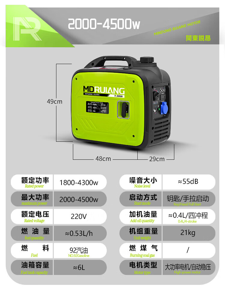 MieLanat MIELANAT Silent Variable Frequency Gasoline Generator Set for Camping 220V Small Home Outdoor 1.5kW - Open Frame - Single Phase 220V