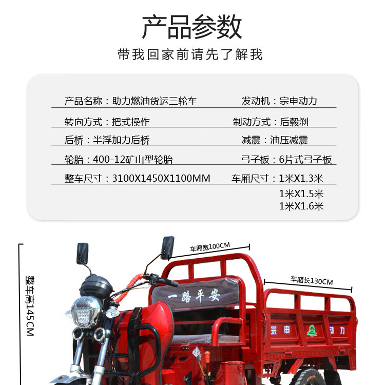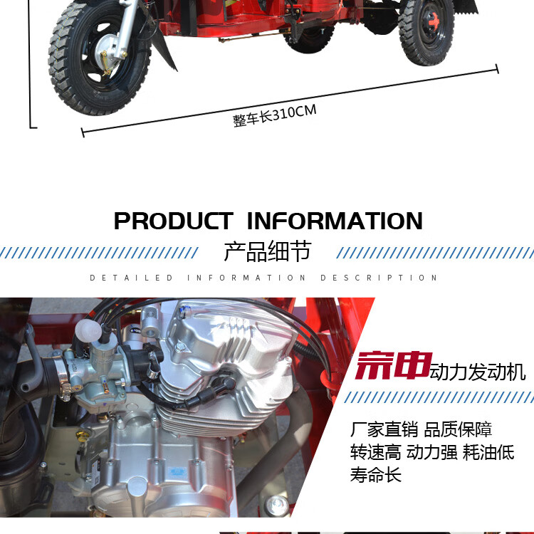 Guangjue's new gasoline three-wheeled motorcycle, agricultural fuel, small household load king freight tricycle, 125 air-cooled 1×1.5 compartment, automatic clutch, color