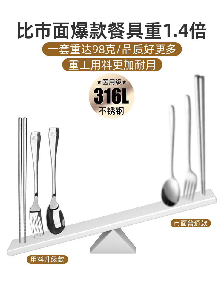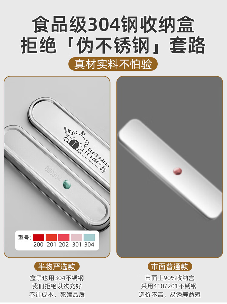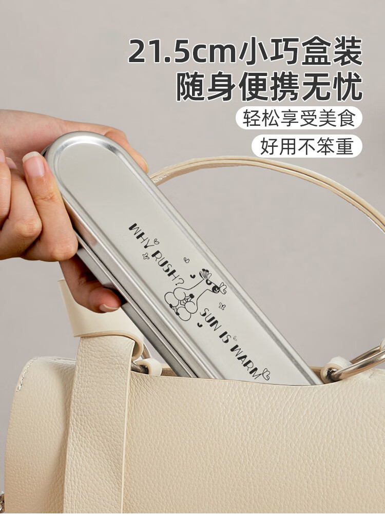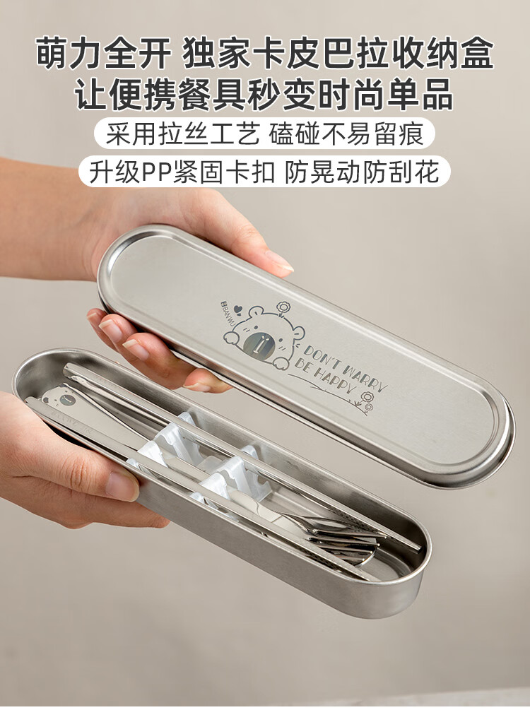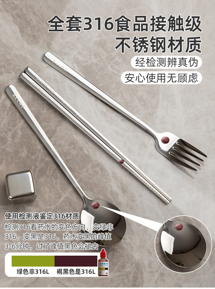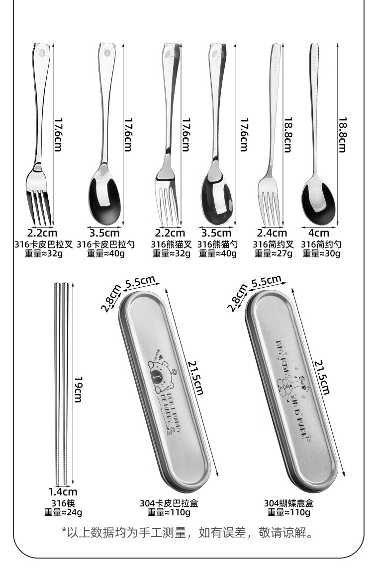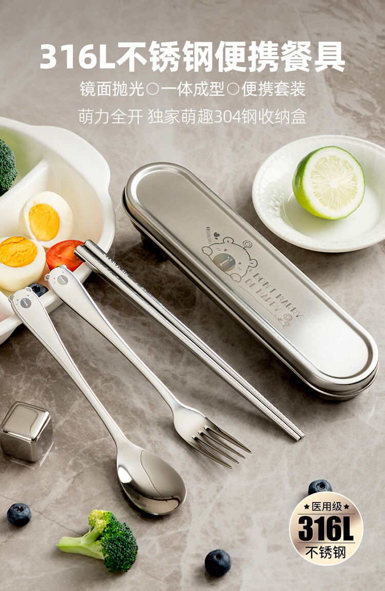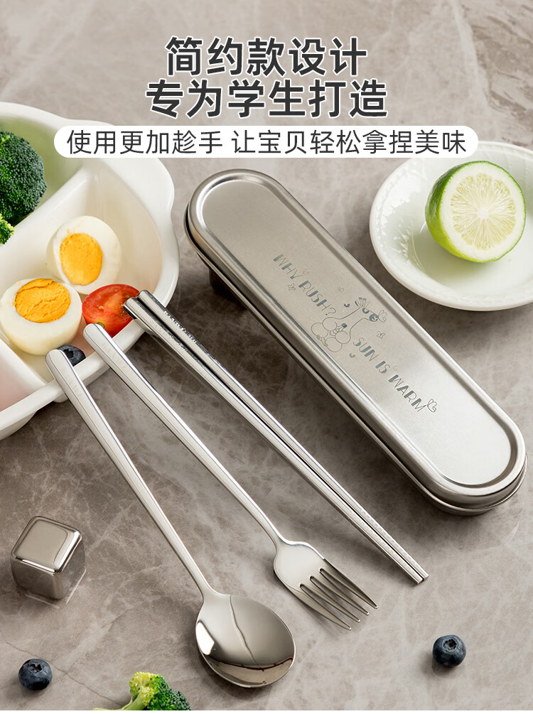 Half Things Life 316L Stainless Steel Student Chopsticks and Spoons Set Children's Portable Tableware Travel Chopsticks Spoons and Forks Three-piece Set Simple Chopsticks and Spoons with 304 Steel Capbara Box