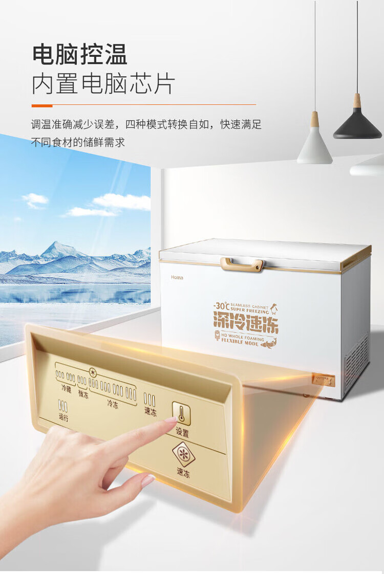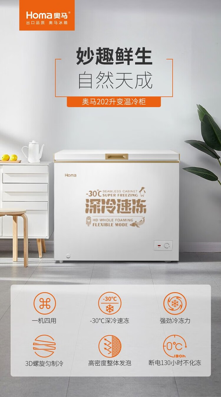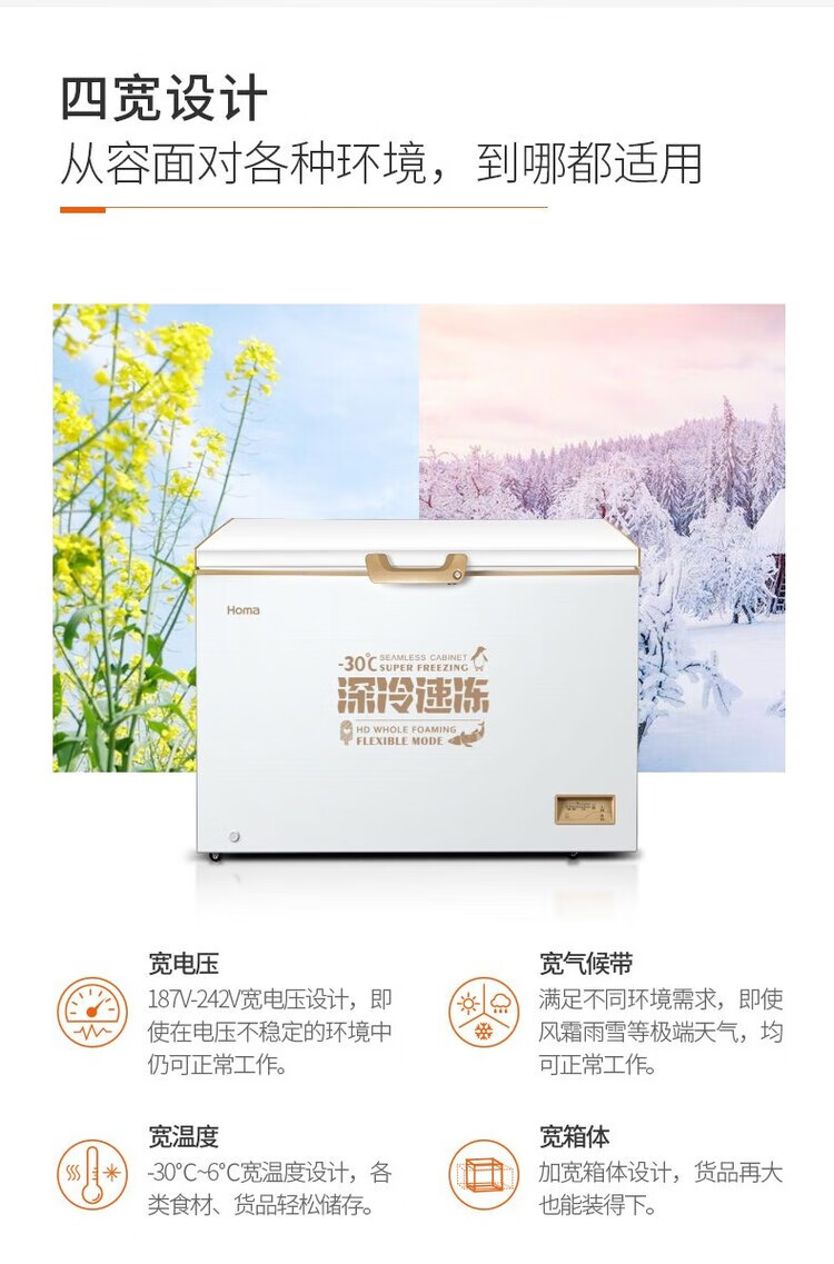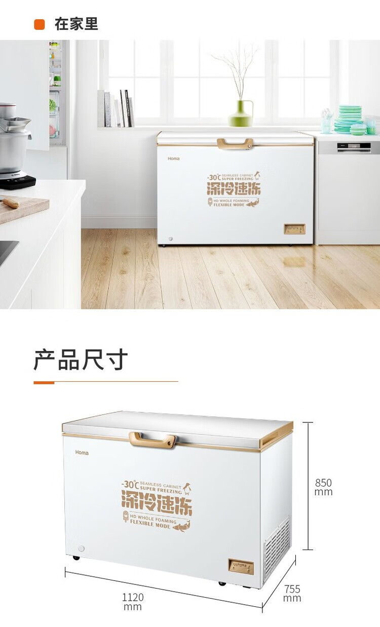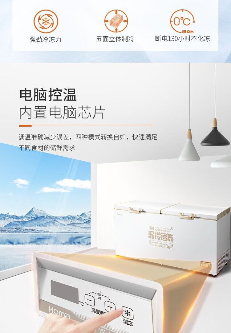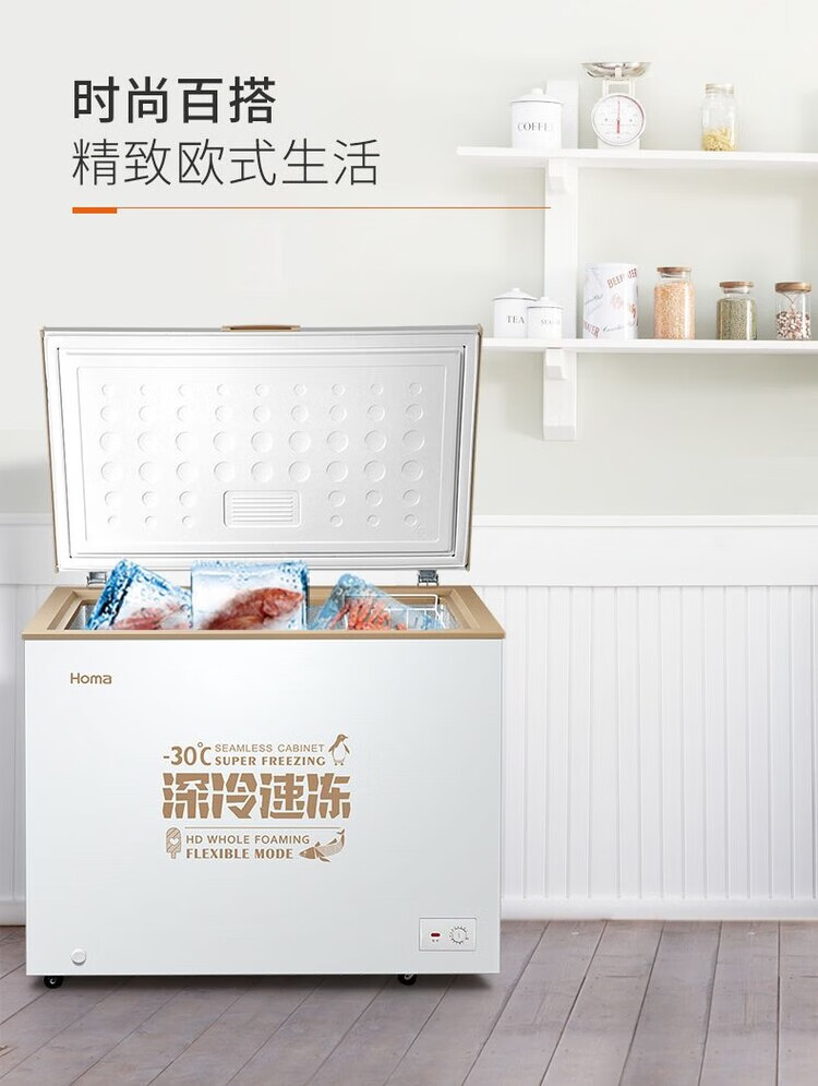 Homa Freezer Level 1 Energy Efficiency Variable Temperature 200/252 Freezer Freezer Horizontal Refrigeration and Freezer Household Dual-Purpose 218MF Deep Cold Brown