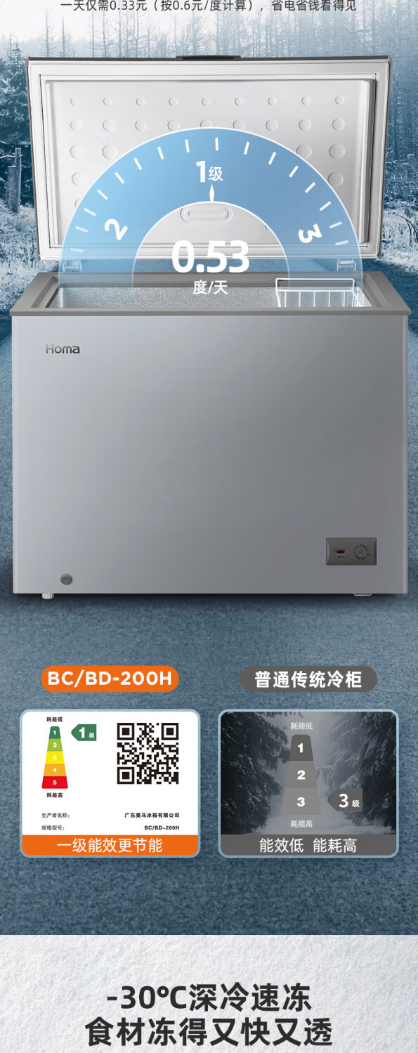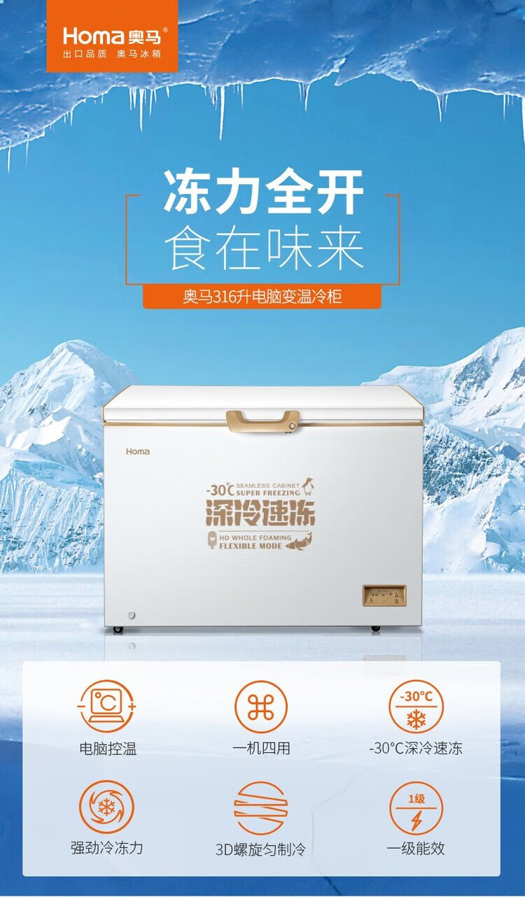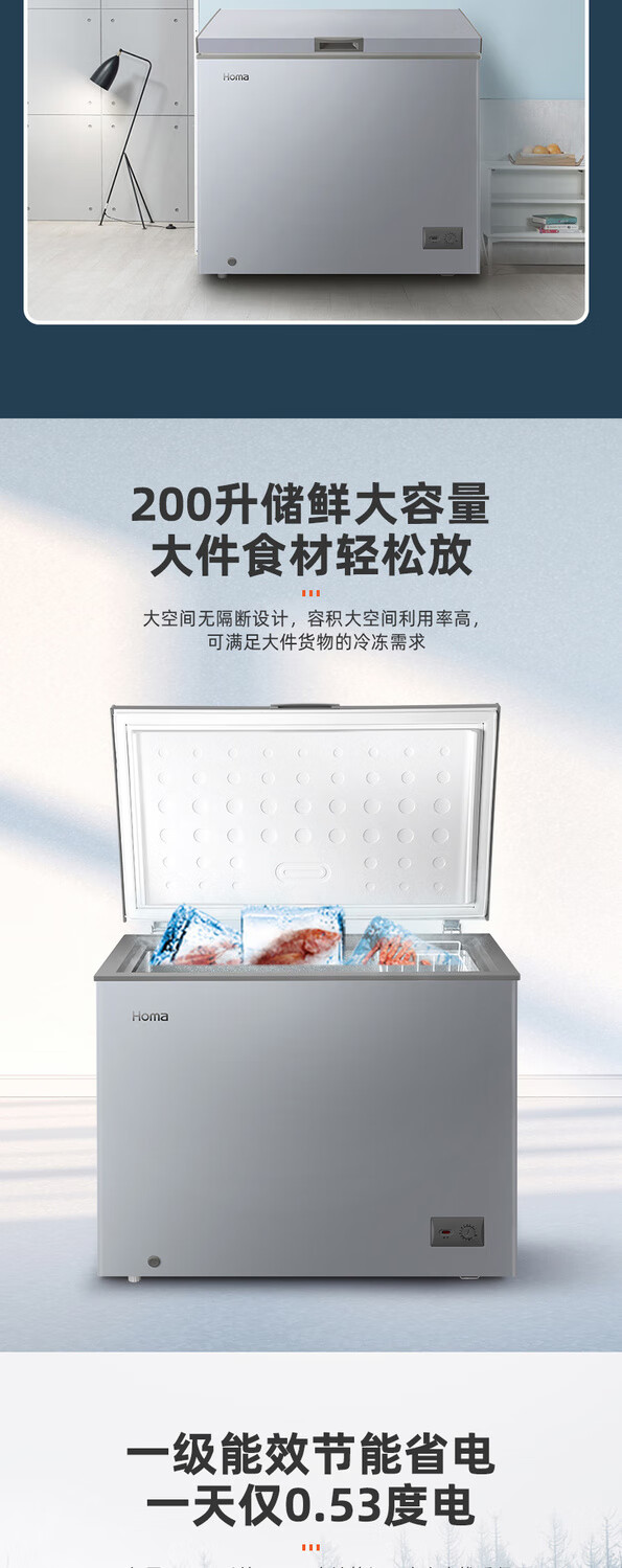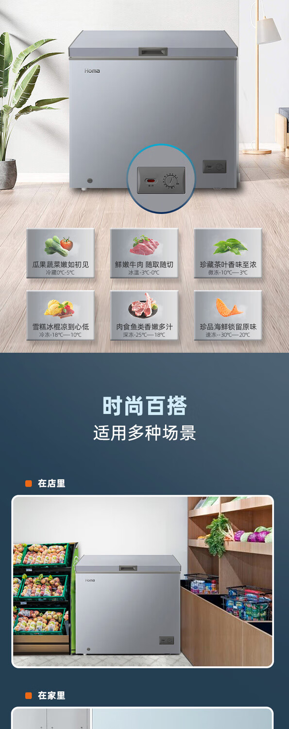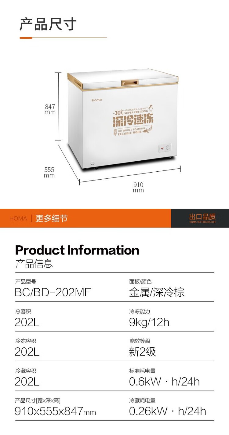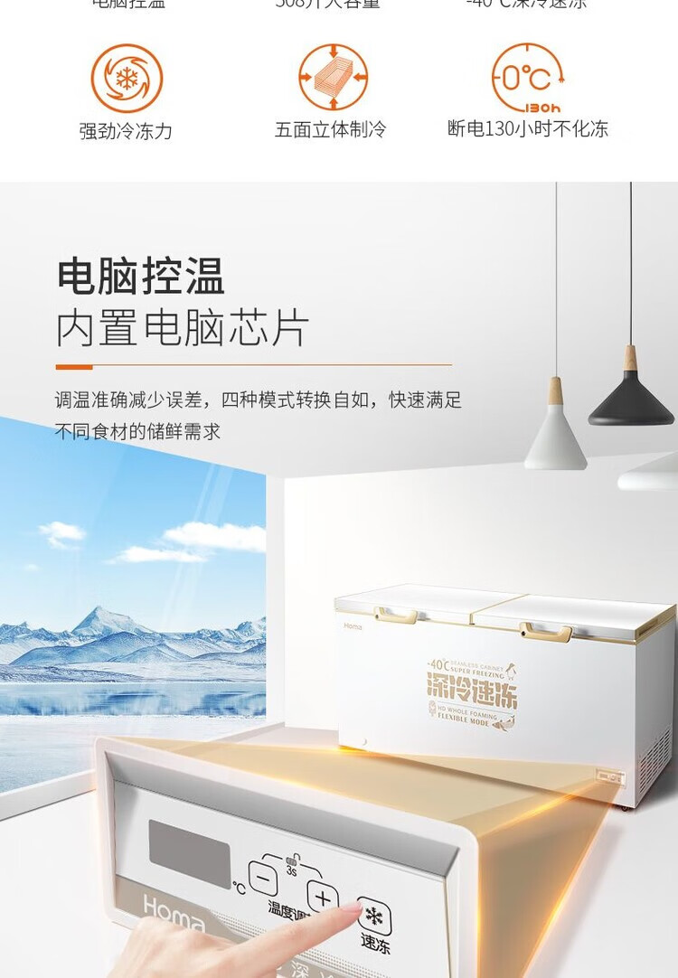 Homa Freezer Level 1 Energy Efficiency Variable Temperature 200/252 Freezer Freezer Horizontal Refrigeration and Freezer Household Dual-Purpose 218MF Deep Cold Brown