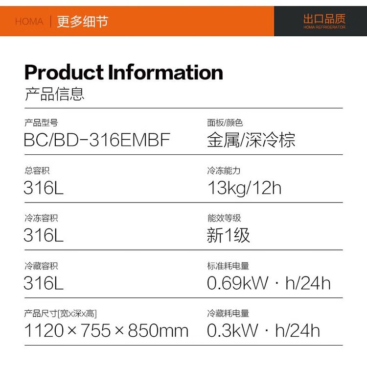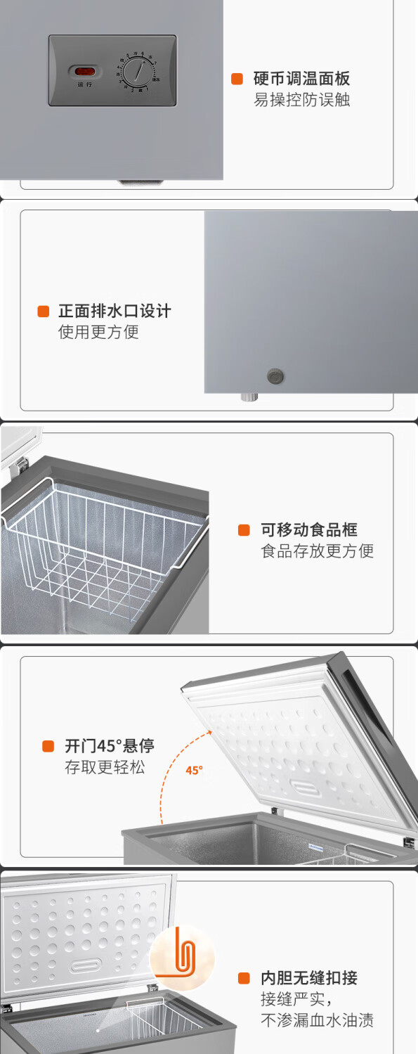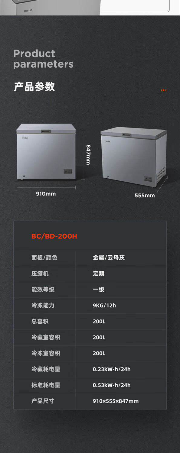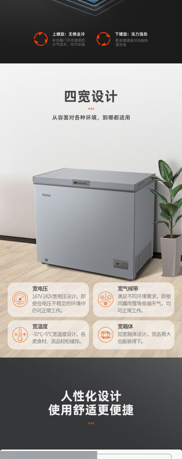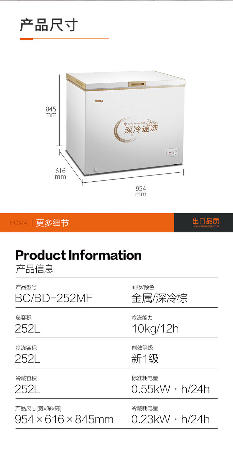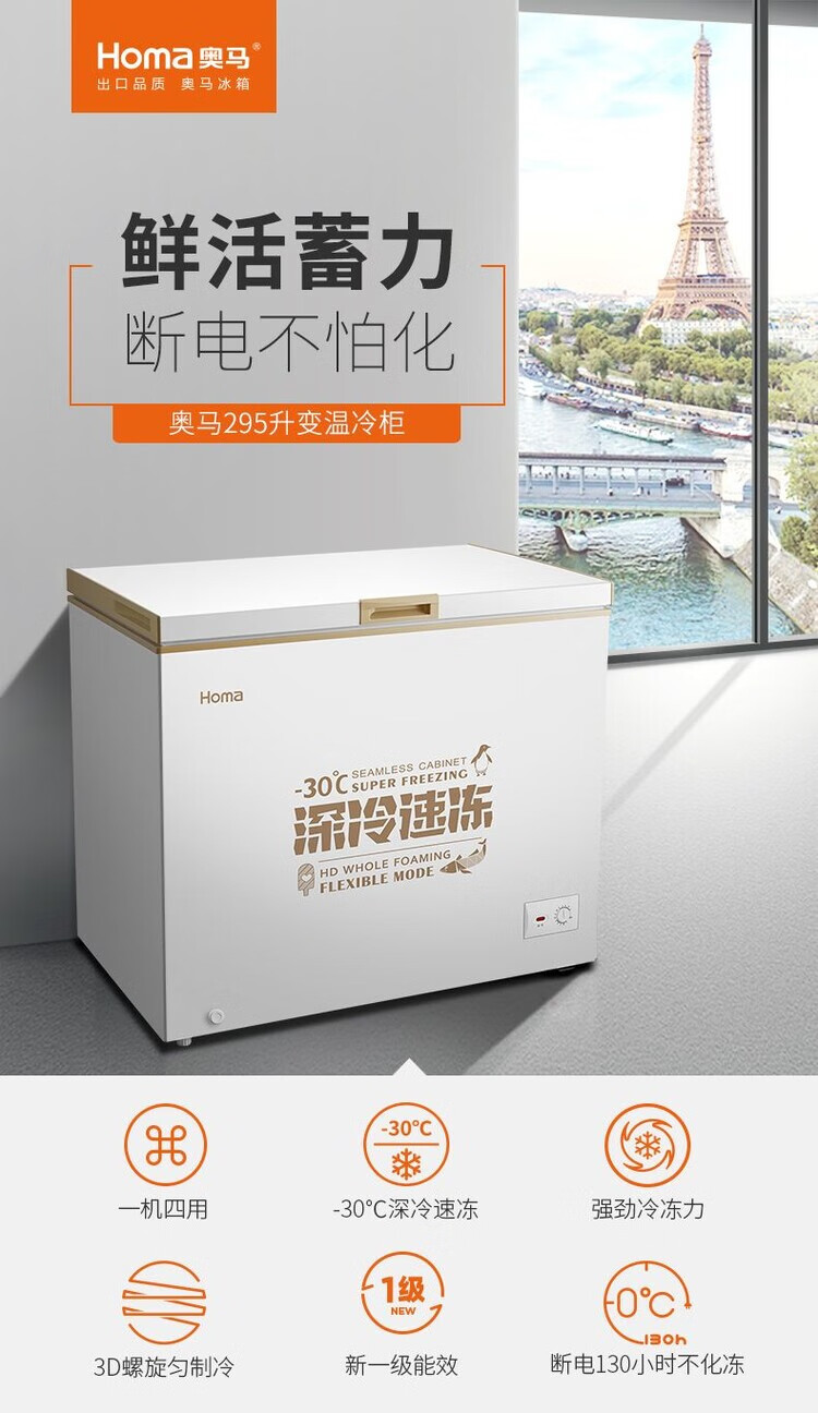 Homa Freezer Level 1 Energy Efficiency Variable Temperature 200/252 Freezer Freezer Horizontal Refrigeration and Freezer Household Dual-Purpose 218MF Deep Cold Brown