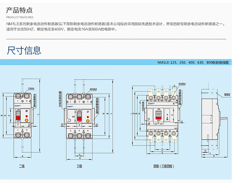 Plastic case leakage circuit breaker NM1LE-125S/4300A250S 400S 630H/4300B leakage protection 315A 4p