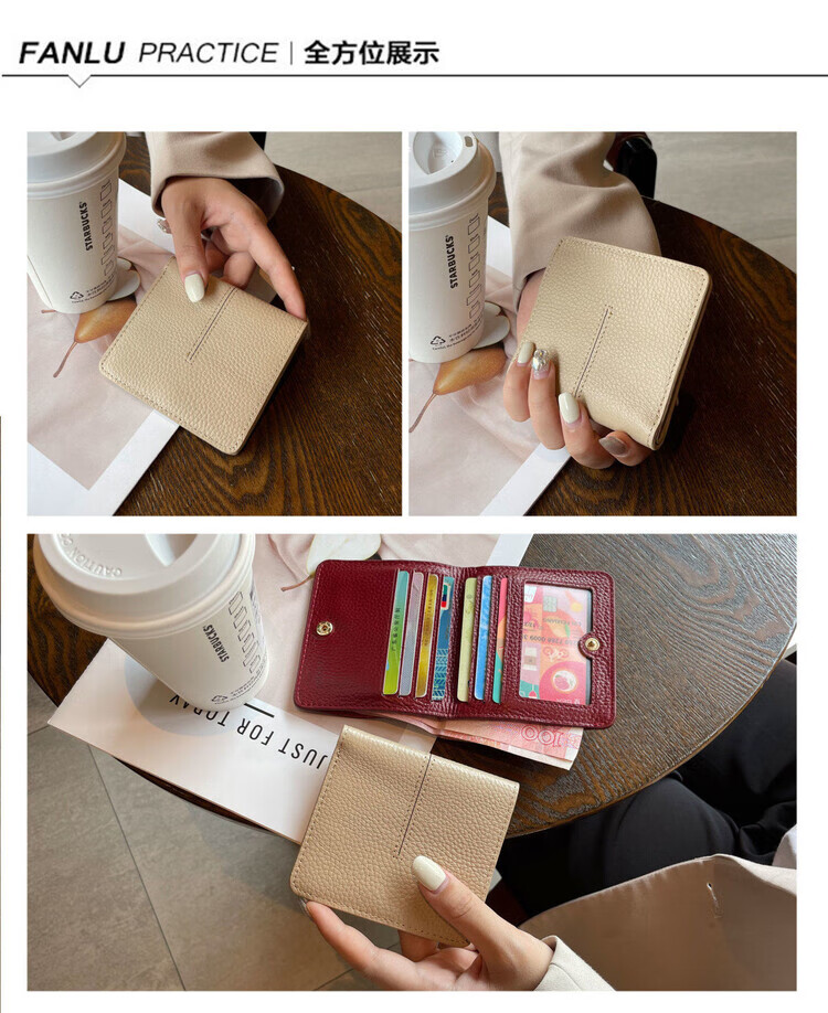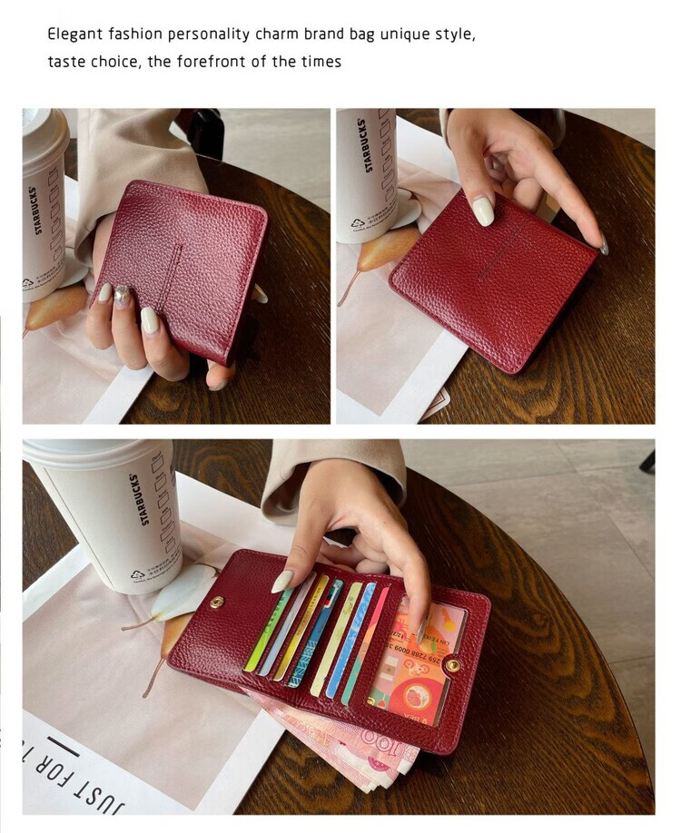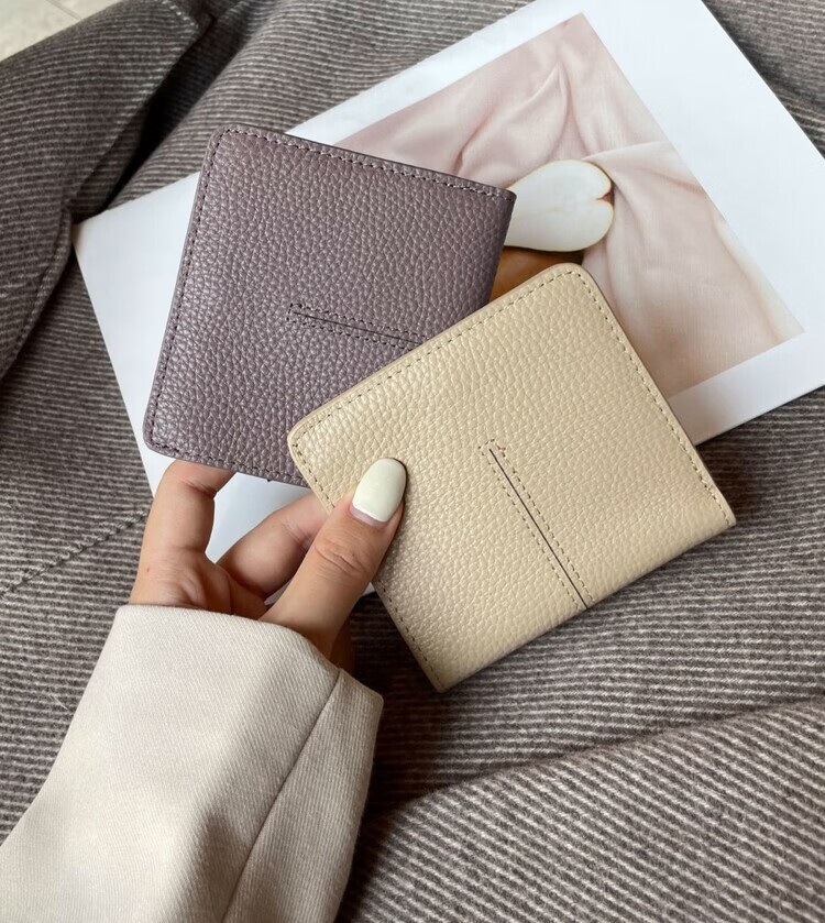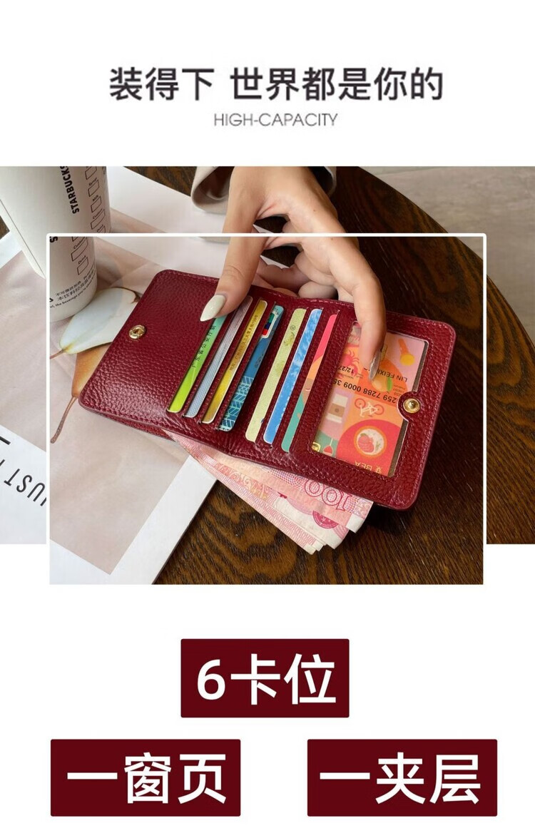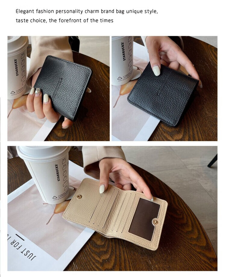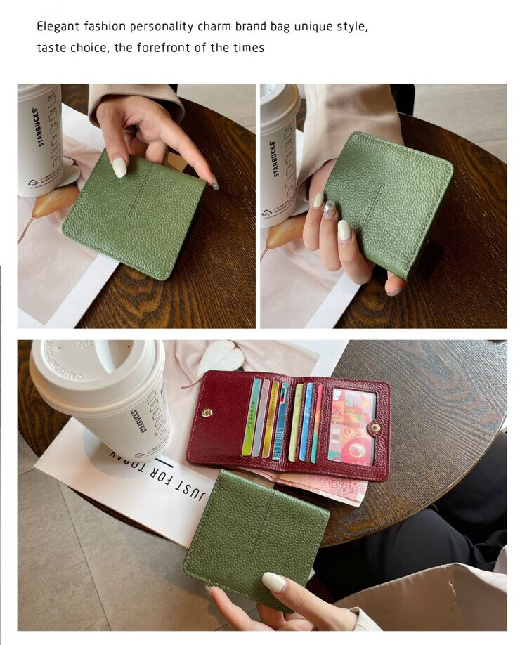 Nimense cowhide texture small wallet women's short style 2025 new high-end folding genuine leather ultra-thin simple wallet card holder green - 6 card slots + 1 mirror window 1 mezzanine affordable regular style
