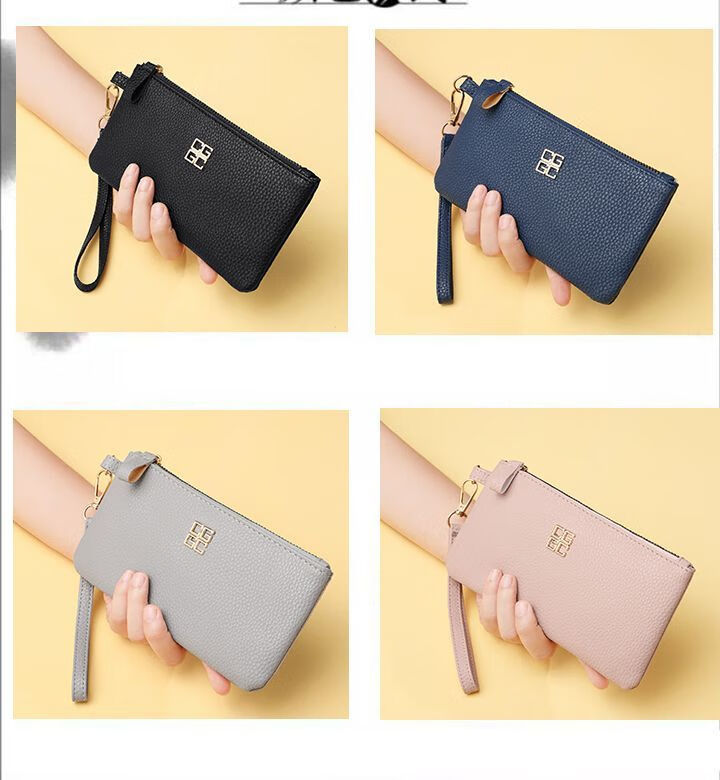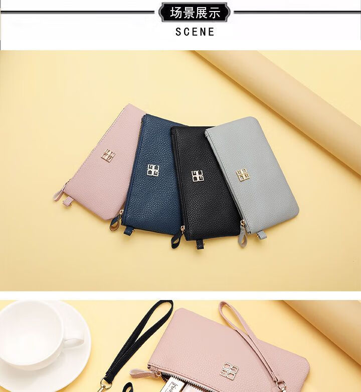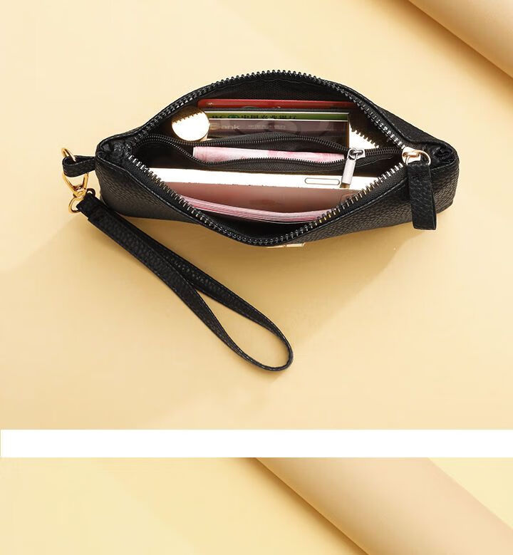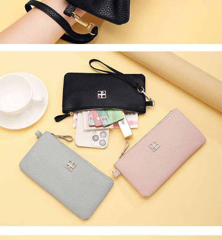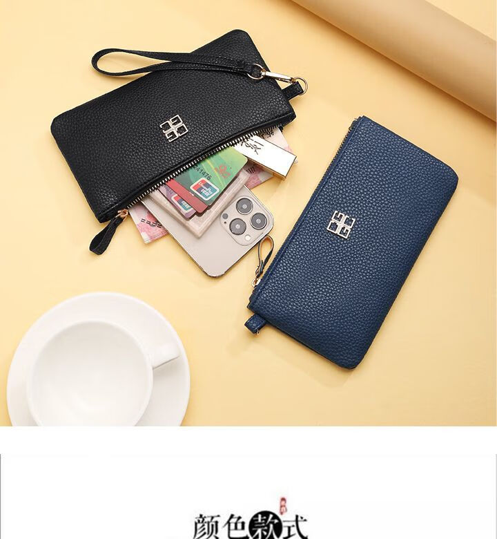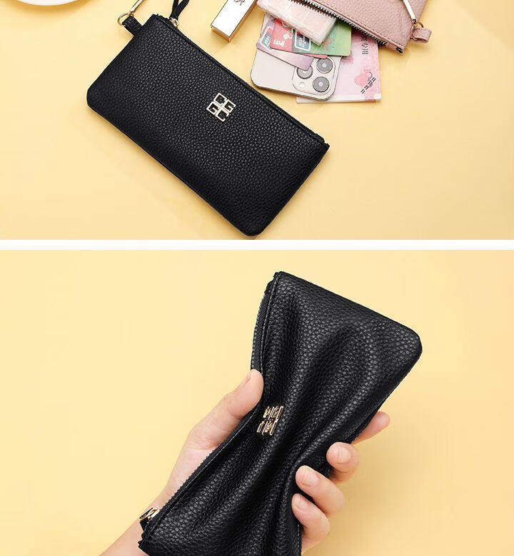 Nimense soft leather texture mobile phone bag ultra-thin internet celebrity long large capacity wallet zipper bag simple portable wallet clutch bag classic black upgraded material-anti-theft brush/anti-degaussing