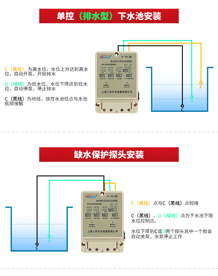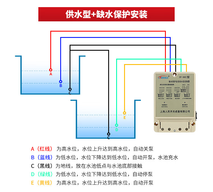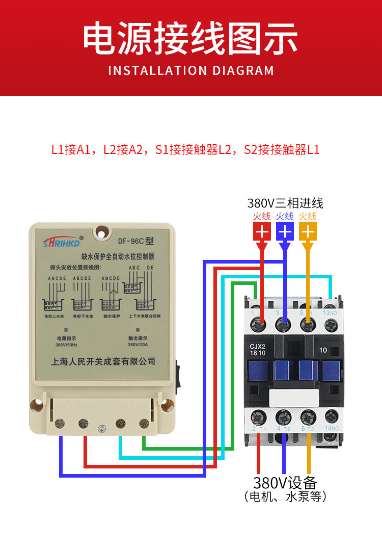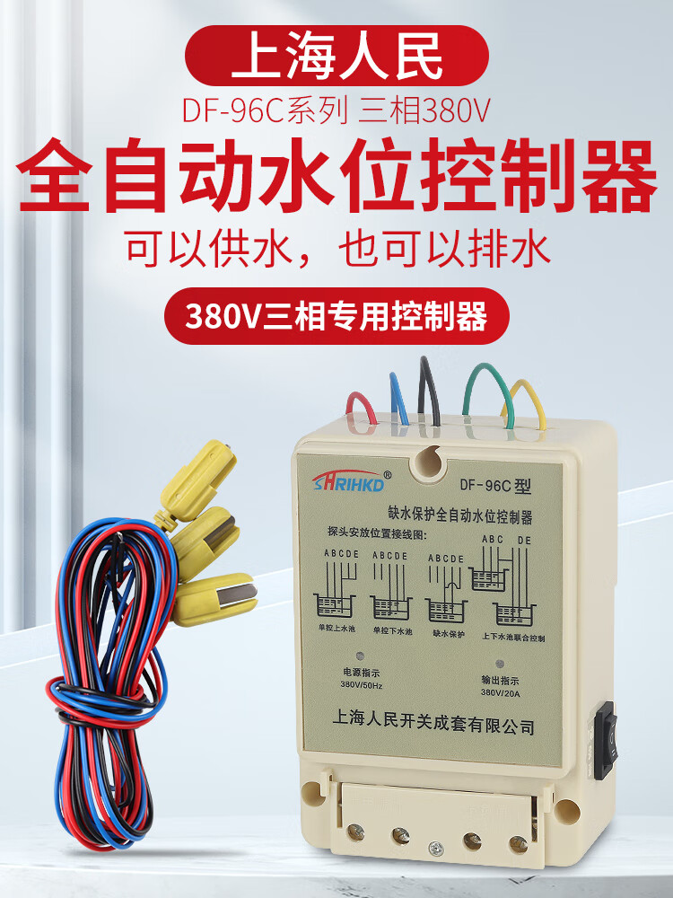 Shanghai People's three-phase 380v water level water tower pumping automatic control water pump level device float switch upper water tank 4 kilowatt set (probe line length 5 meters)