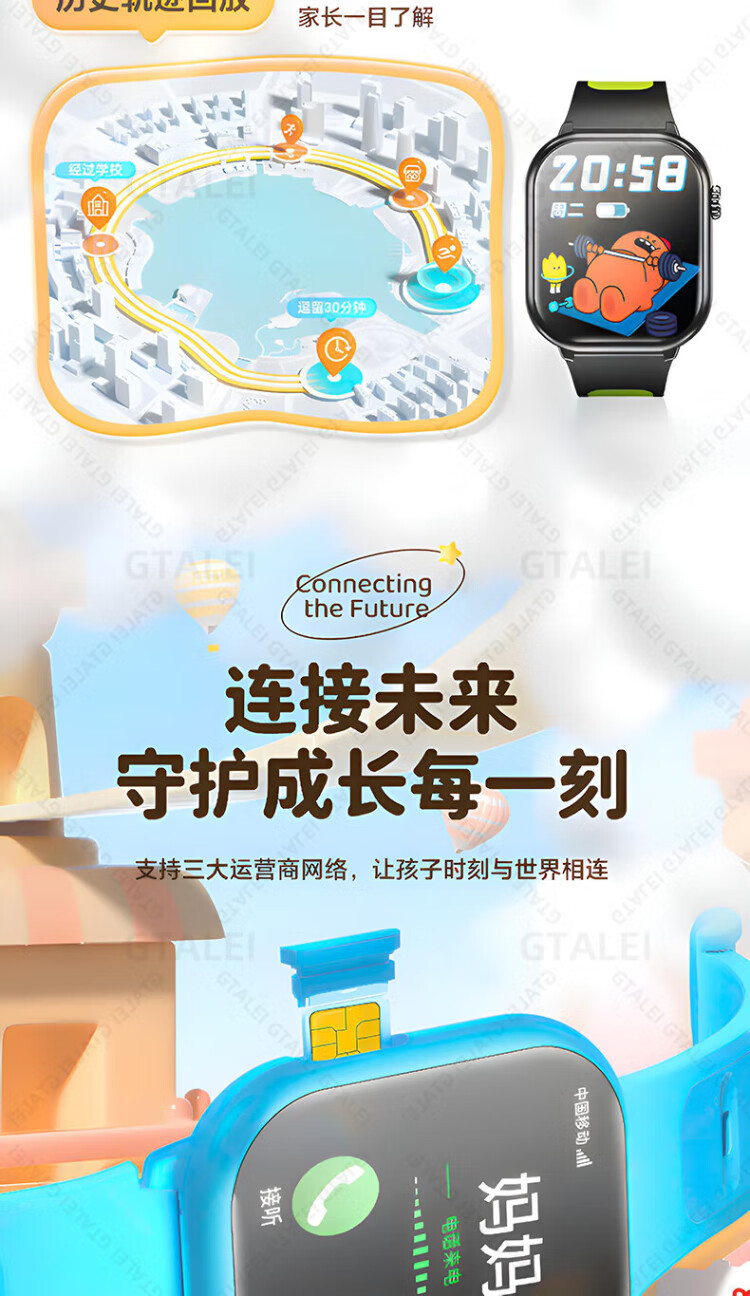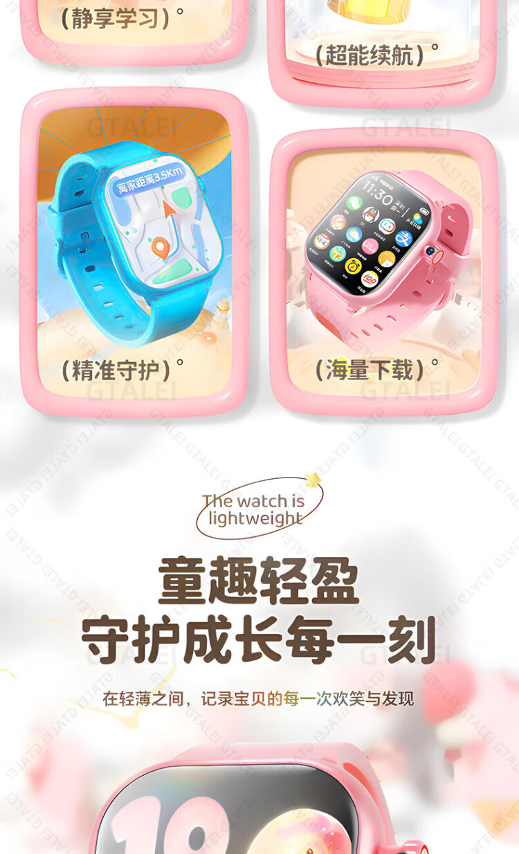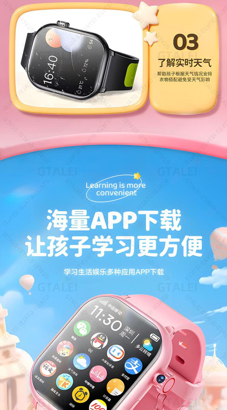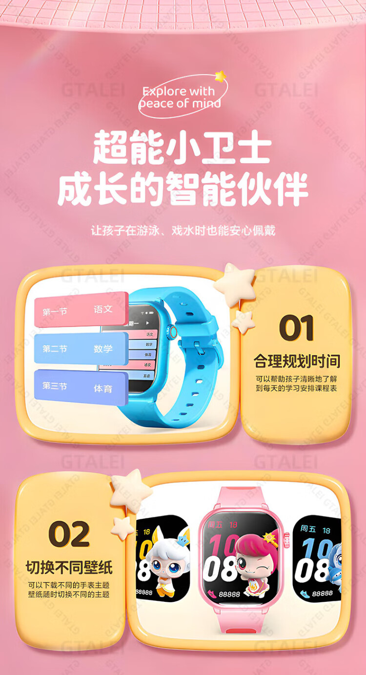 Little Genius Cool Cover Series Children's Phone Watch HD 5G Card Full Netcom Waterproof Pluggable Card GPS Positioning Elementary School Junior High School Students Teenage Boys and Girls 4G Smart Watch Rice Phone Upgraded Black Battery Life Upgrade + Change Payment + Video Call + Positioning + Micro Chat