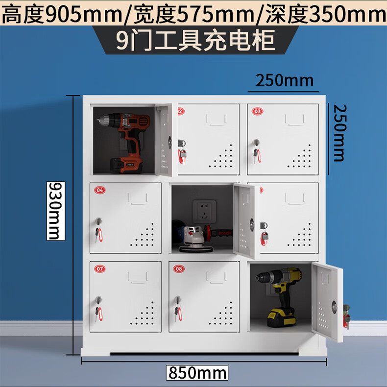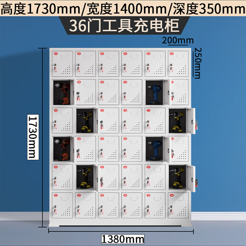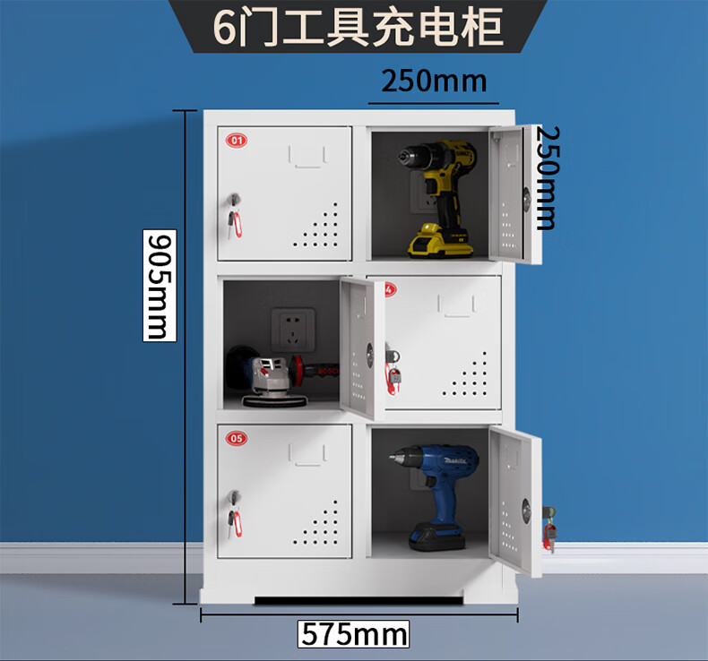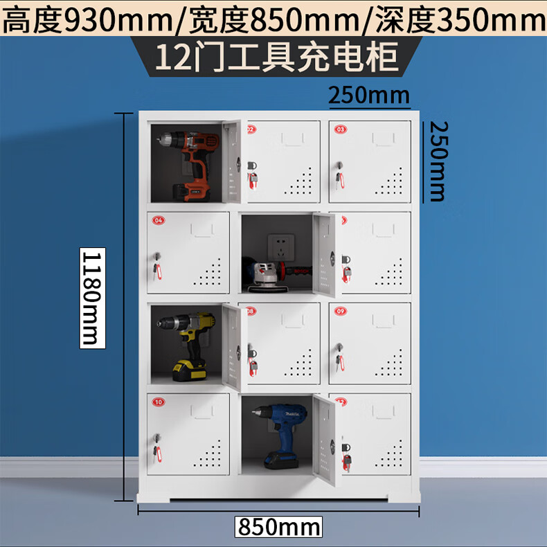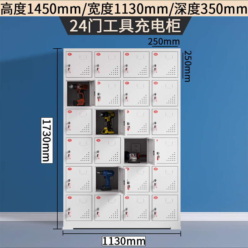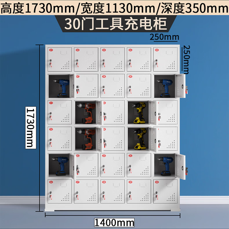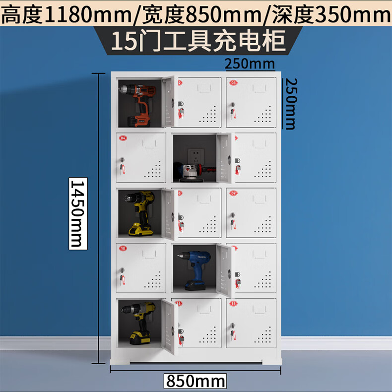 Electric tool charging cabinet gray and white construction site power distribution storage cabinet construction site electric wrench charging box flat charging cabinet 15-door charging cabinet (key to open the door)
