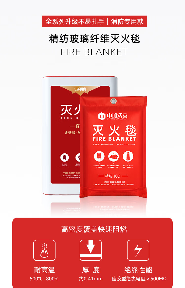 Zhongjia Woan Worsted Glass Fiber Fire Extinguishing Blanket Household Kitchen Fire Blanket Fire Blanket Fire Rescue Protection Fire Fighting Equipment 1.5 Meters - Glass Fiber Fire Blanket EU CE Certification 丨 Not easy to prick hands