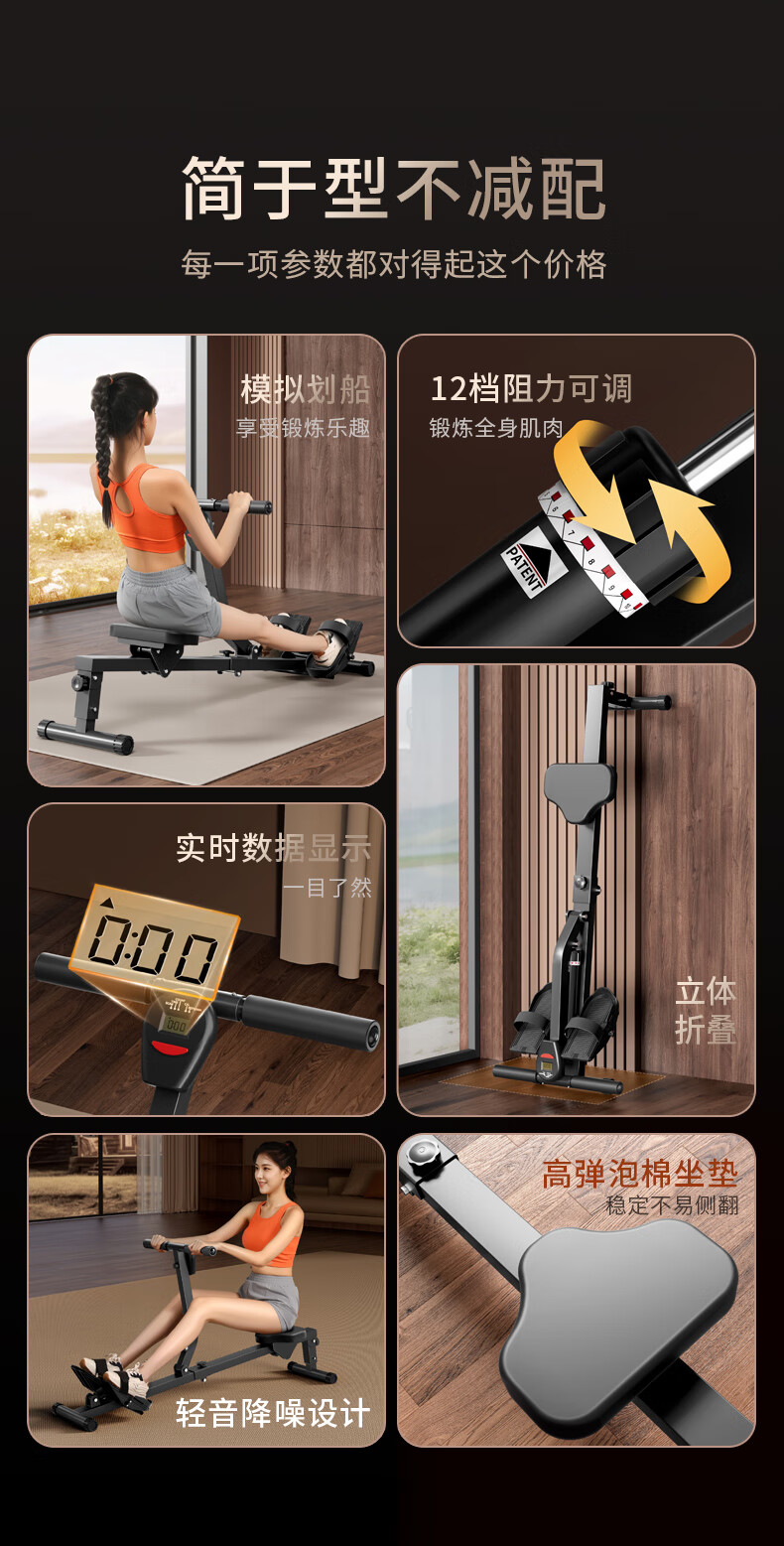 ANTEPOP rowing machine home fitness equipment exercise weight loss aerobic artifact core belly reduction exercise indoor 12-level resistance/digital display/foldable storage/black