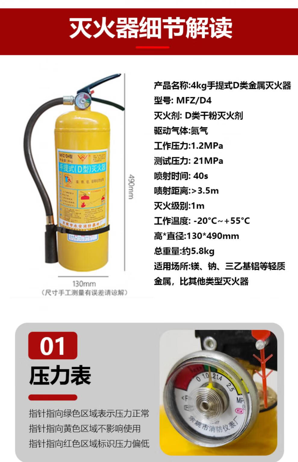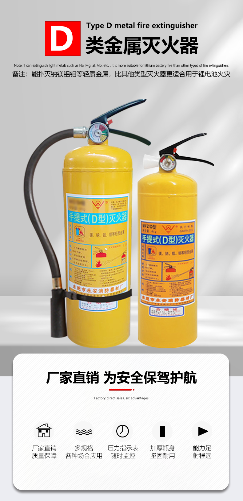 Metal fire extinguisher 4KG7KG yellow bottle d type d class magnesium aluminum metal charging pile fire special fire extinguisher Yongan 2kg metal fire extinguisher sodium magnesium aluminum