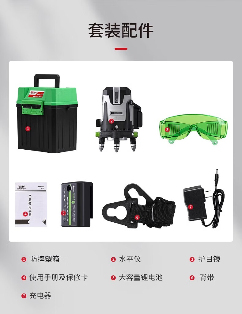 Delixi Electric Laser Green Light Level 2/3/5 Line High-Precision Intense Light Automatic Anping Outdoor Laser Level_Green Light_SP2-5E_5 Line_U Type