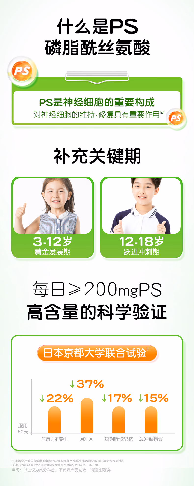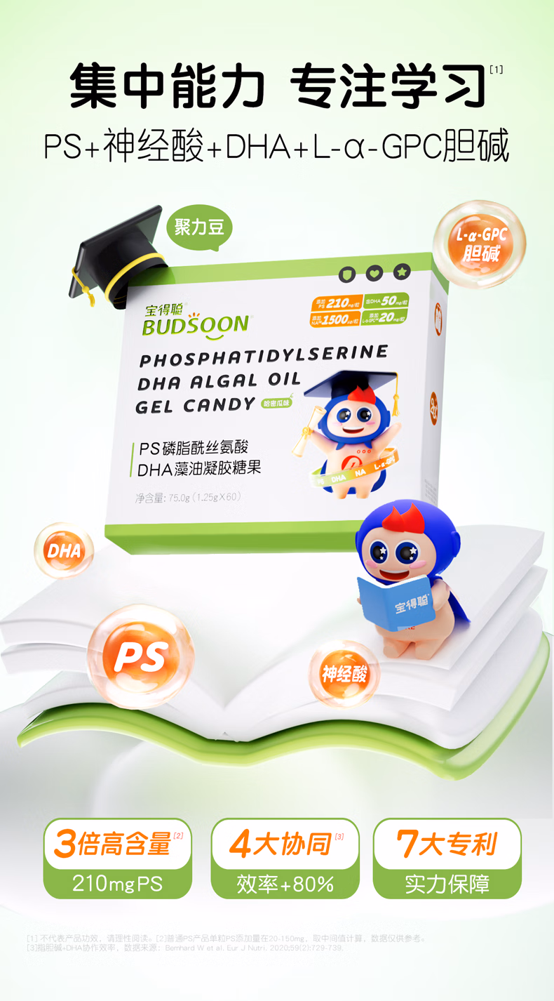 Baodecong PS Phosphatidylserine Children, Teenagers and Students Algae Oil DHA Polybean 3 years and above 1.25g*60 capsules 4 boxes