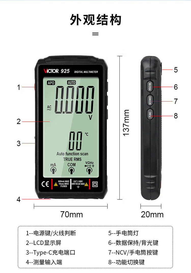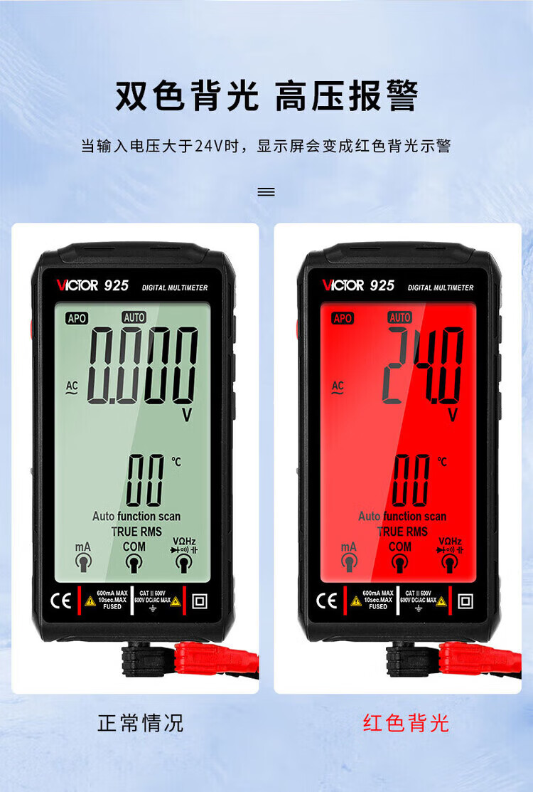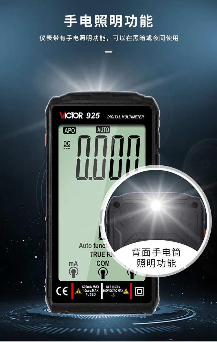 Victory Instrument (VICTOR) digital multimeter rechargeable smart anti-burn portable multimeter high-precision fully automatic multimeter VC925 VC925 fully automatic without shifting