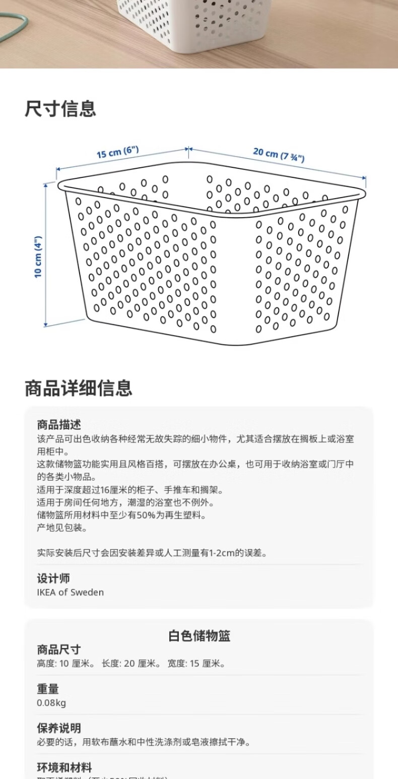 IKEA (IKEA) PLOGSVANG Storage Basket Desktop Bathroom Storage Box Student Dormitory White Storage Basket