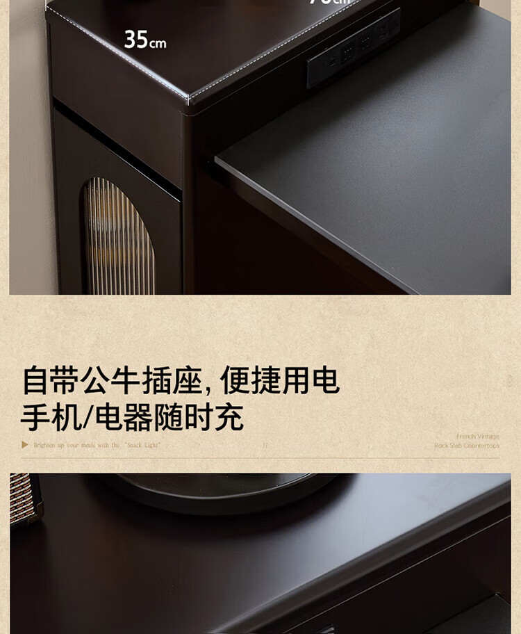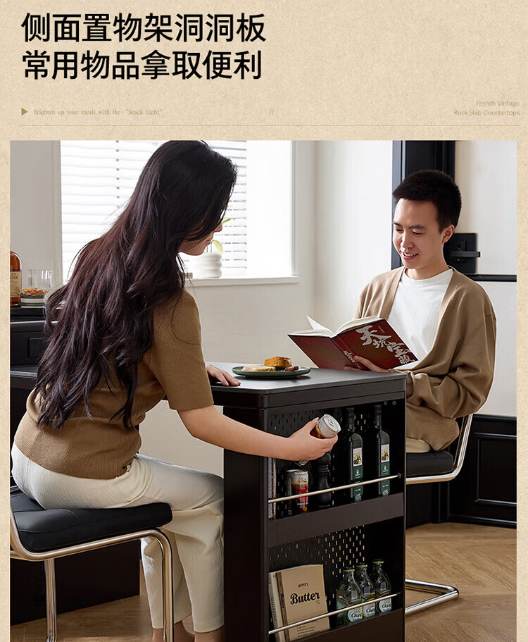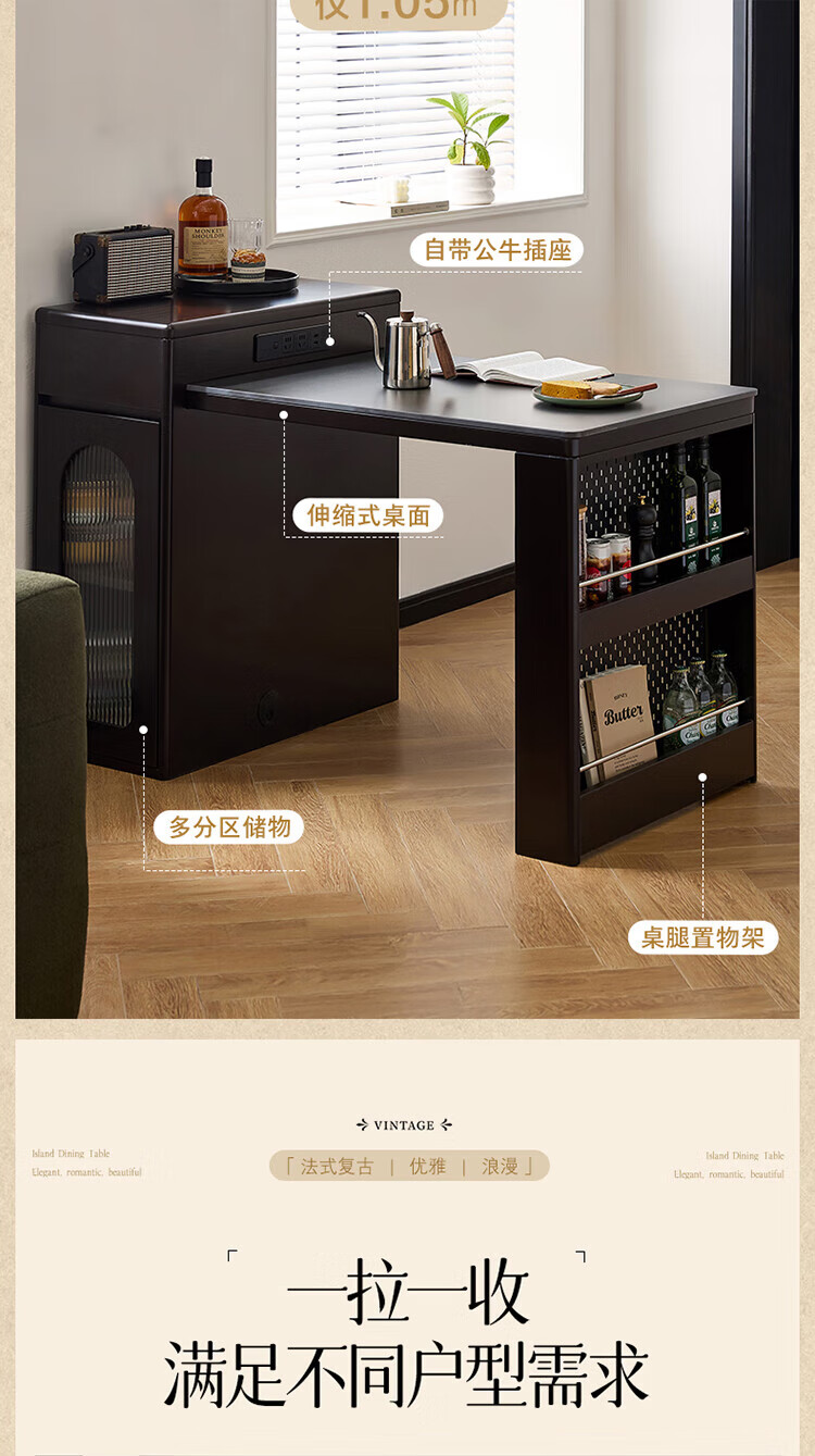 Quanyou Home French Retro Island Table Dining Table Sideboard Integrated Retractable Slate Table Top Dining Table With Chairs Slate | Island Dining Table