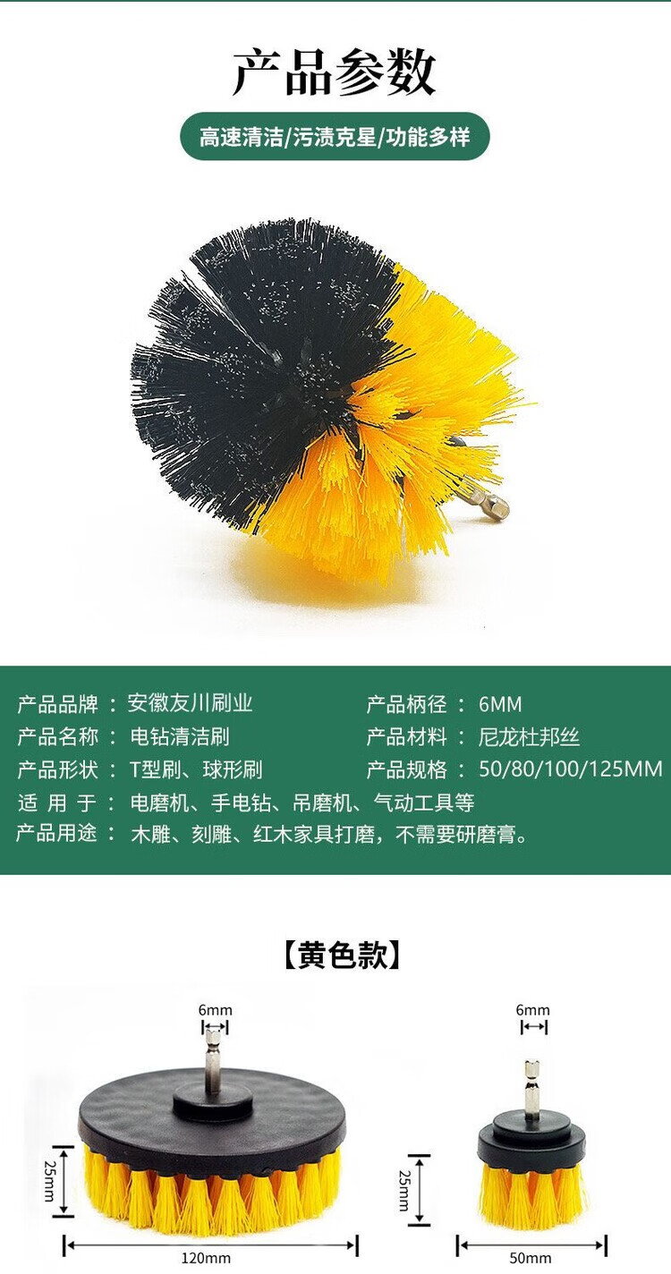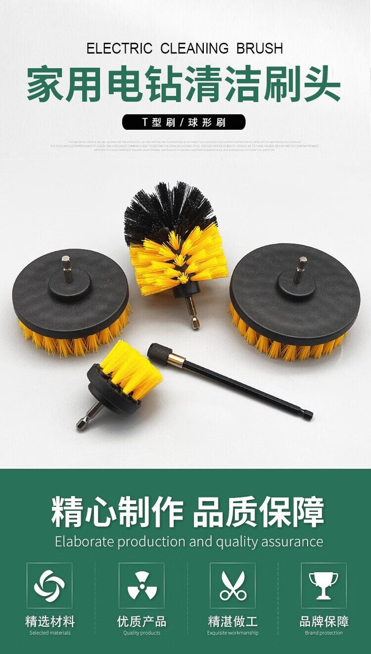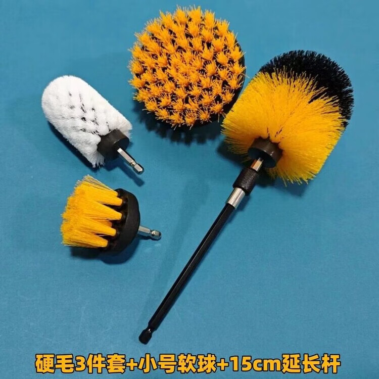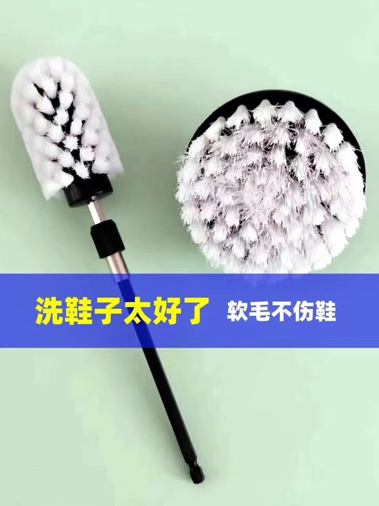 Electric drill cleaning brush head shoe brush set soft-bristle ball head hand electric shoe brush household non-damaging shoe brush artifact long-handled laundry brush best-selling shoe ball brush + soft and hard flat brush + small brush + rod