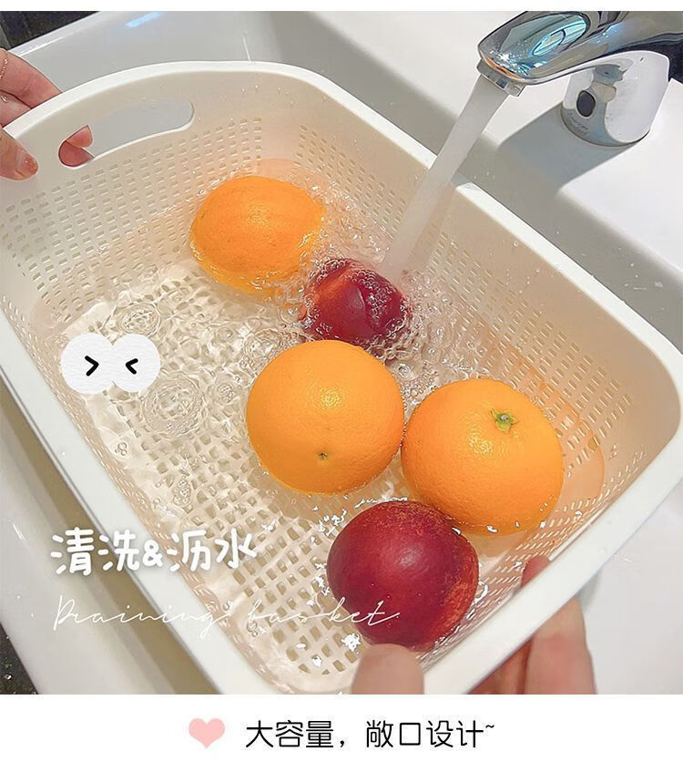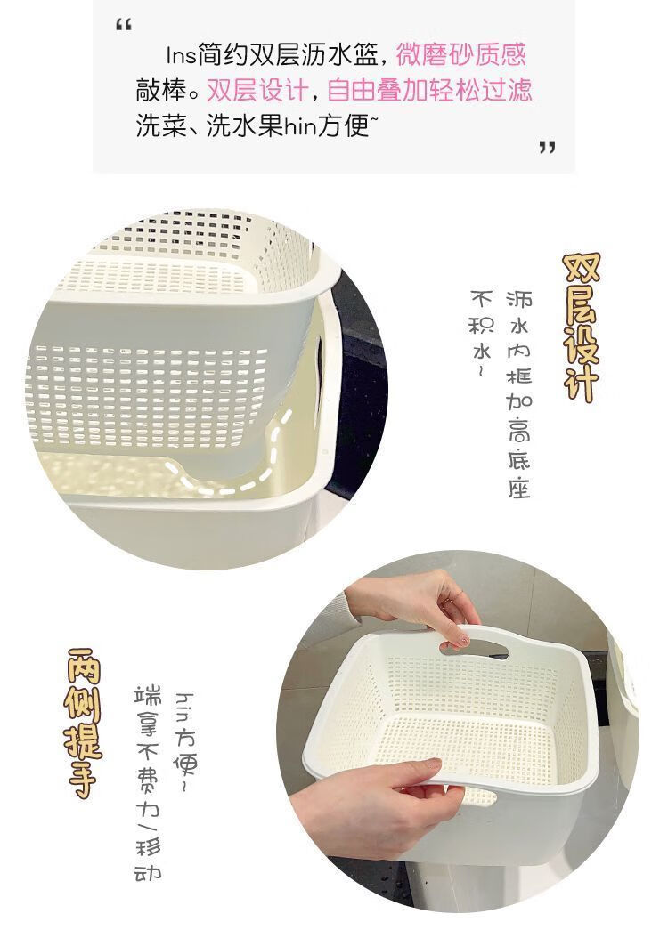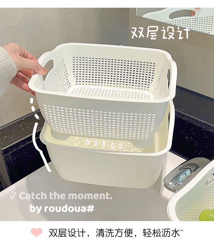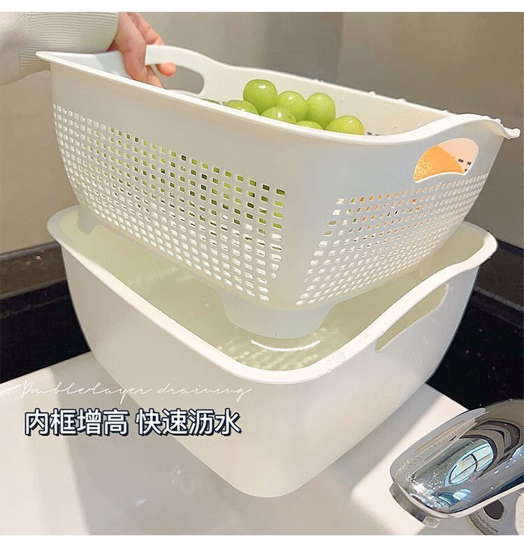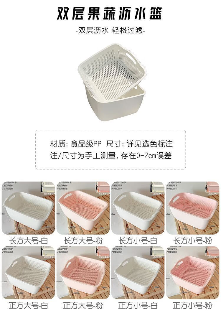 GUIG Double-layer Drainage Home Kitchen Vegetable Washing Thick Plastic Basket Artifact Fruit Cleaning Storage Fruit Plate Washing Basket Square Dabai Double-layer Thickened