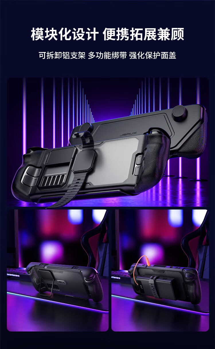 JSAUX is suitable for steamdeck (oled) protective shell module bracket steam deck accessories soft and hard sleeve handheld peripheral all-inclusive expansion dock radiator sticker Steam Deck module protective shell set