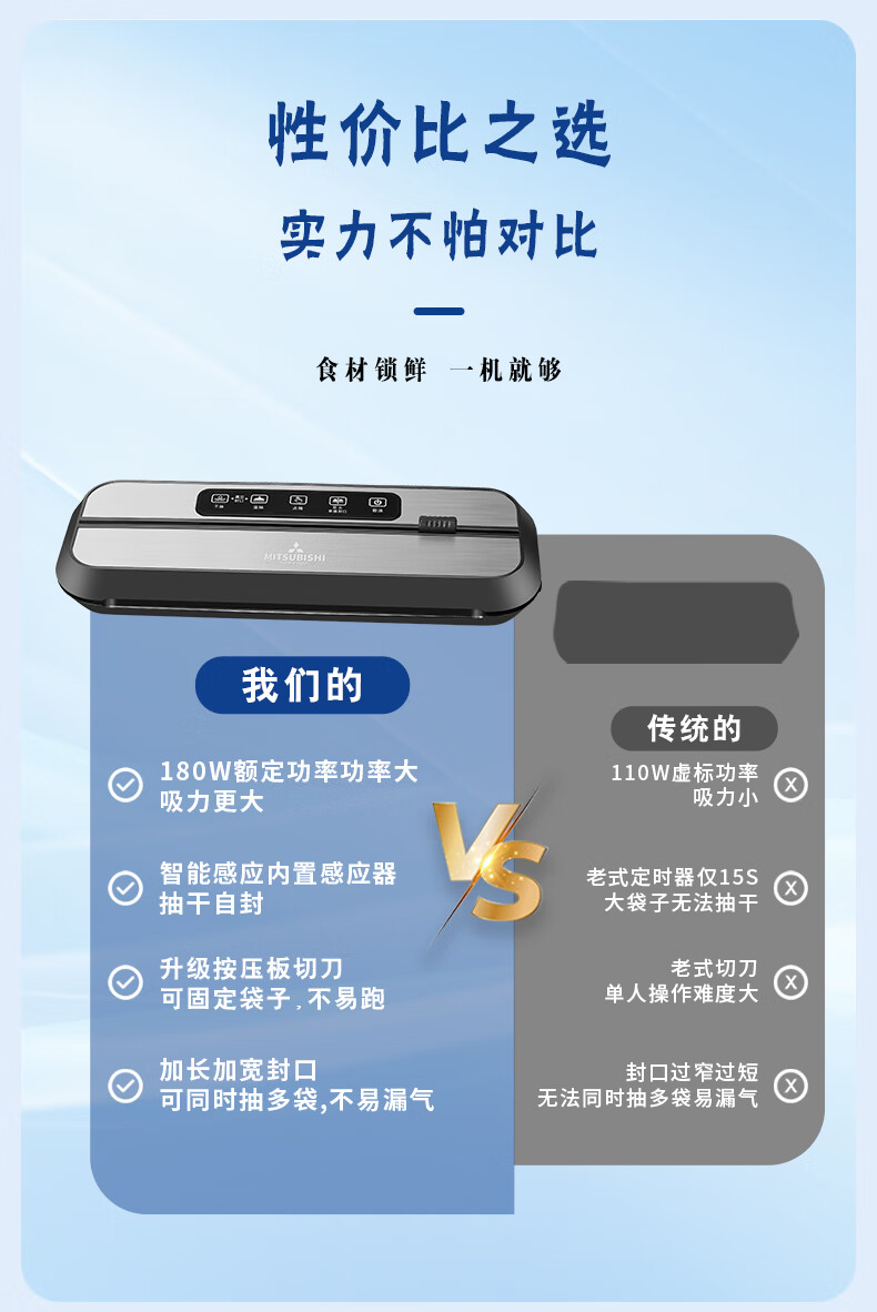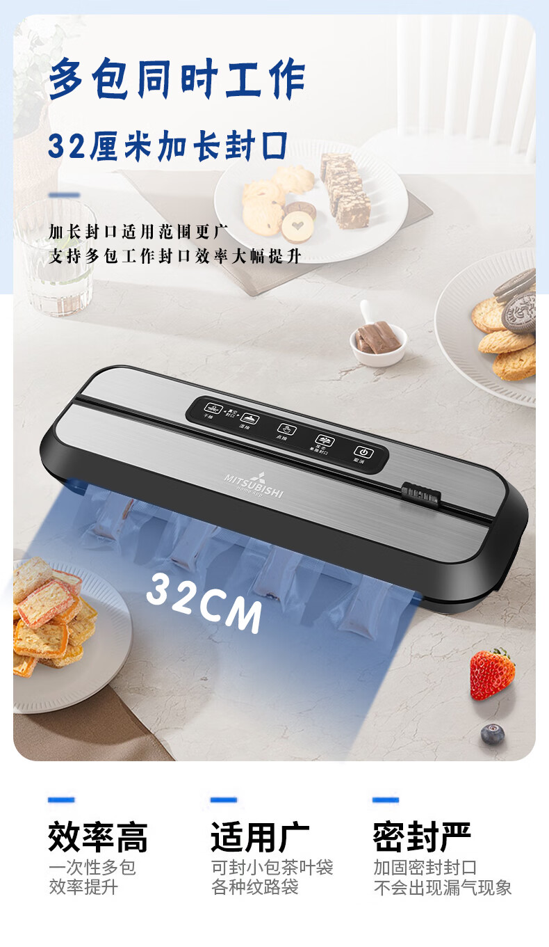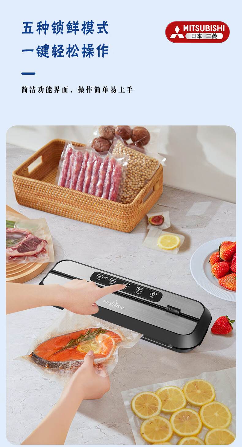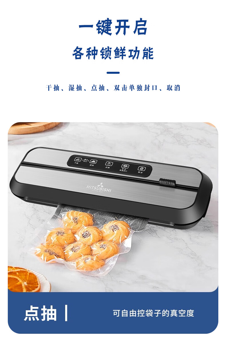 Mitsubishi Mitsubishi vacuum sealing machine plastic sealing small household preservation machine food packaging preservation fully automatic commercial sealing machine vacuum bag sealing single sealing machine warranty sealing machine double pump super suction + (50 bags 30*40