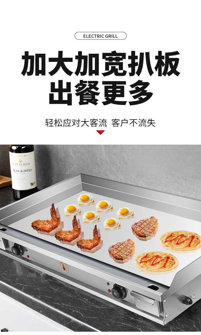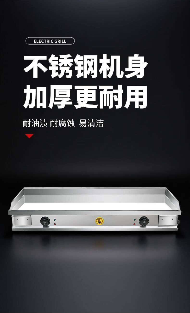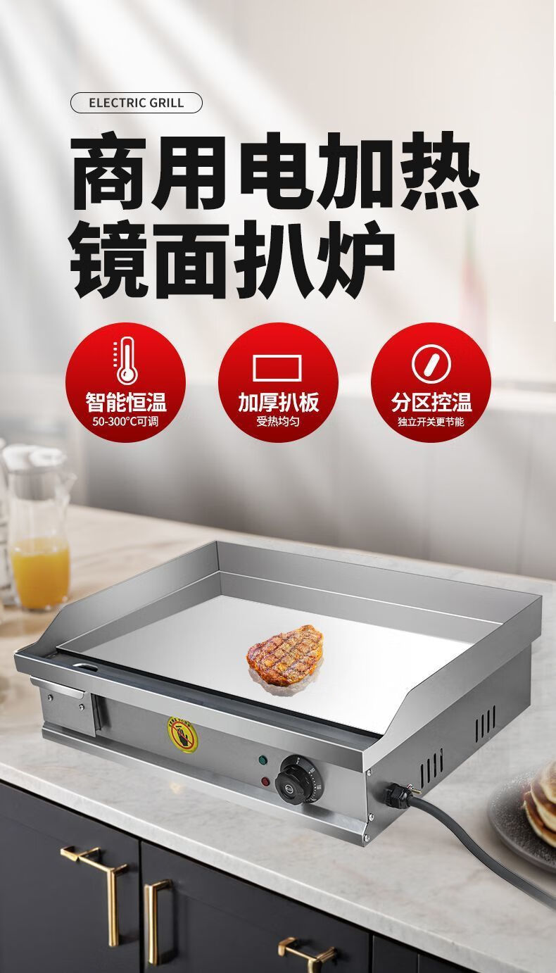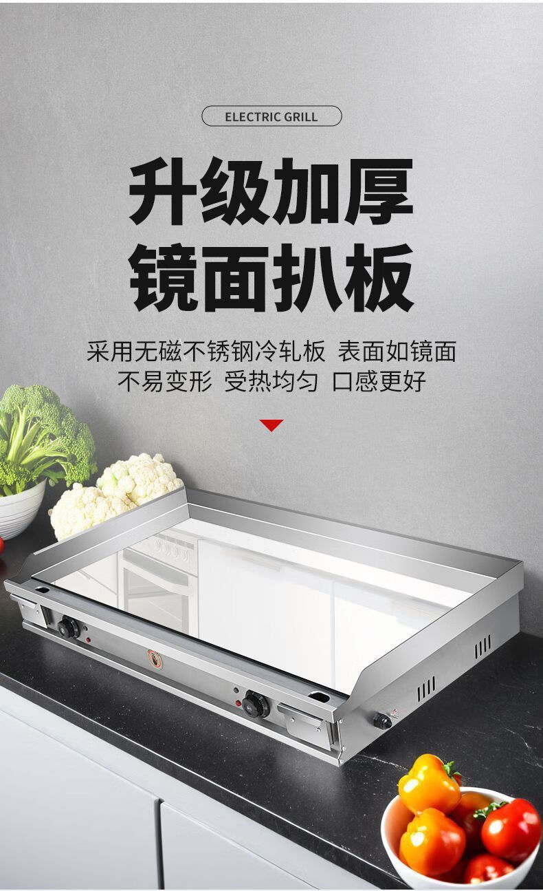 Electric griddle commercial mirror chrome plated iron plate barbecue cold noodles gas hand cake stall machine iron plate squid carbon steel plate 100*50 10mm electric heating model commercial factory direct sales