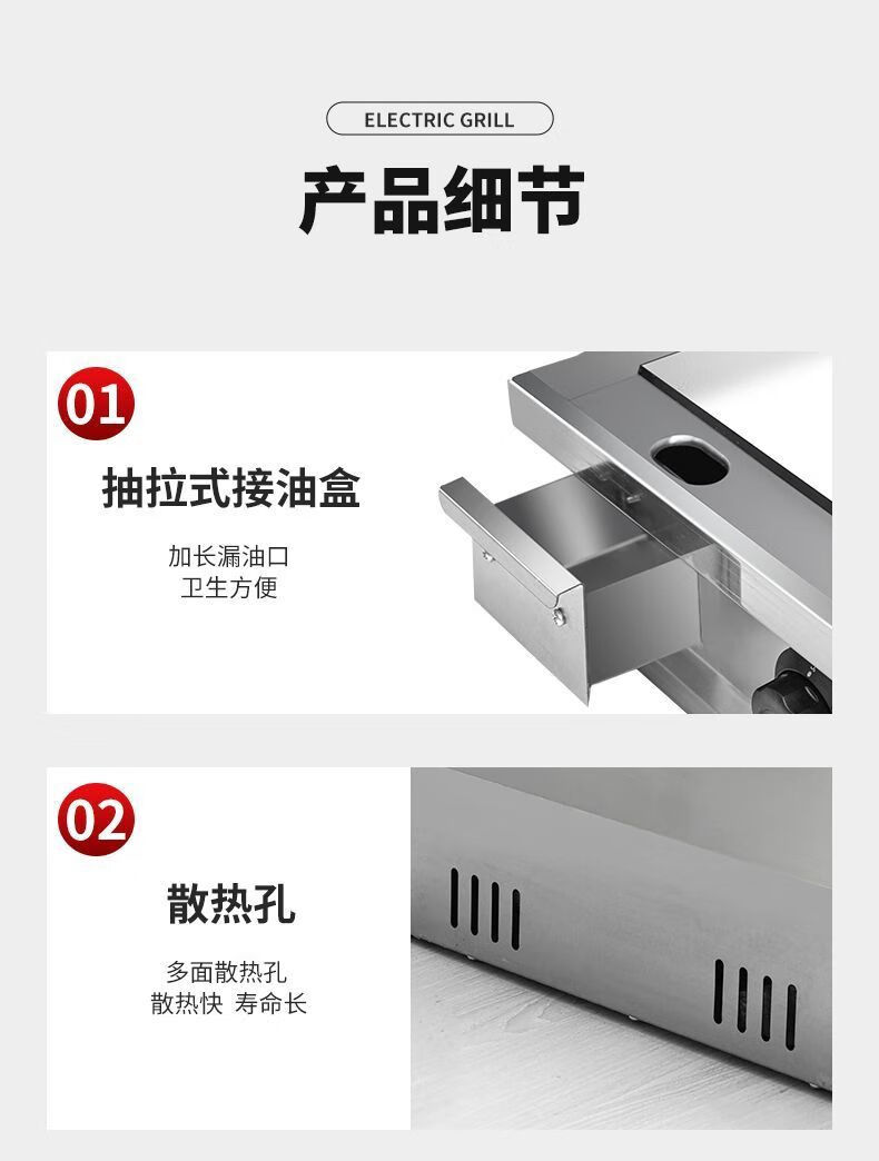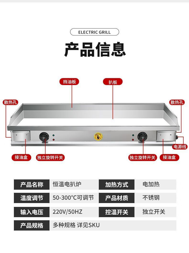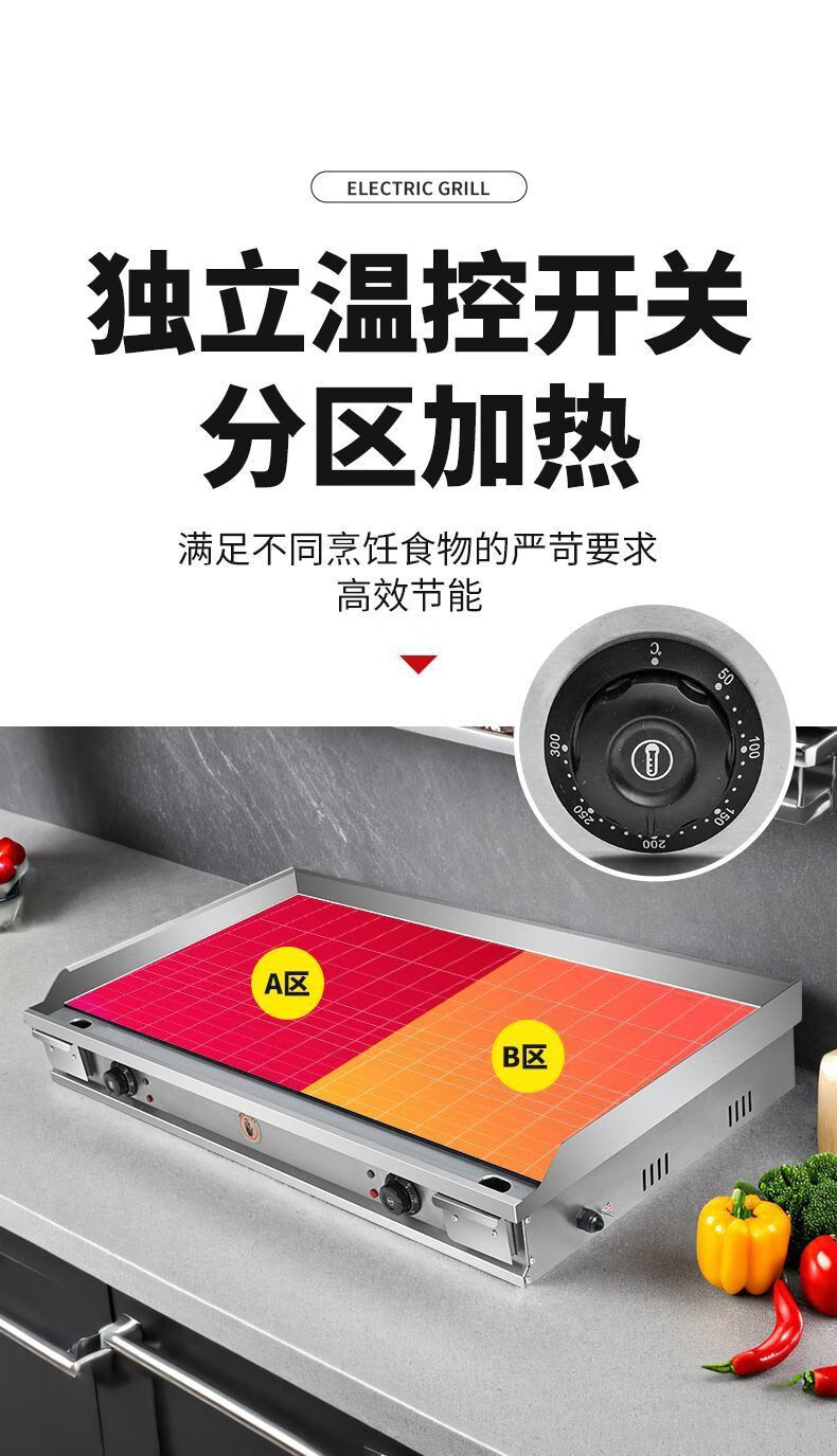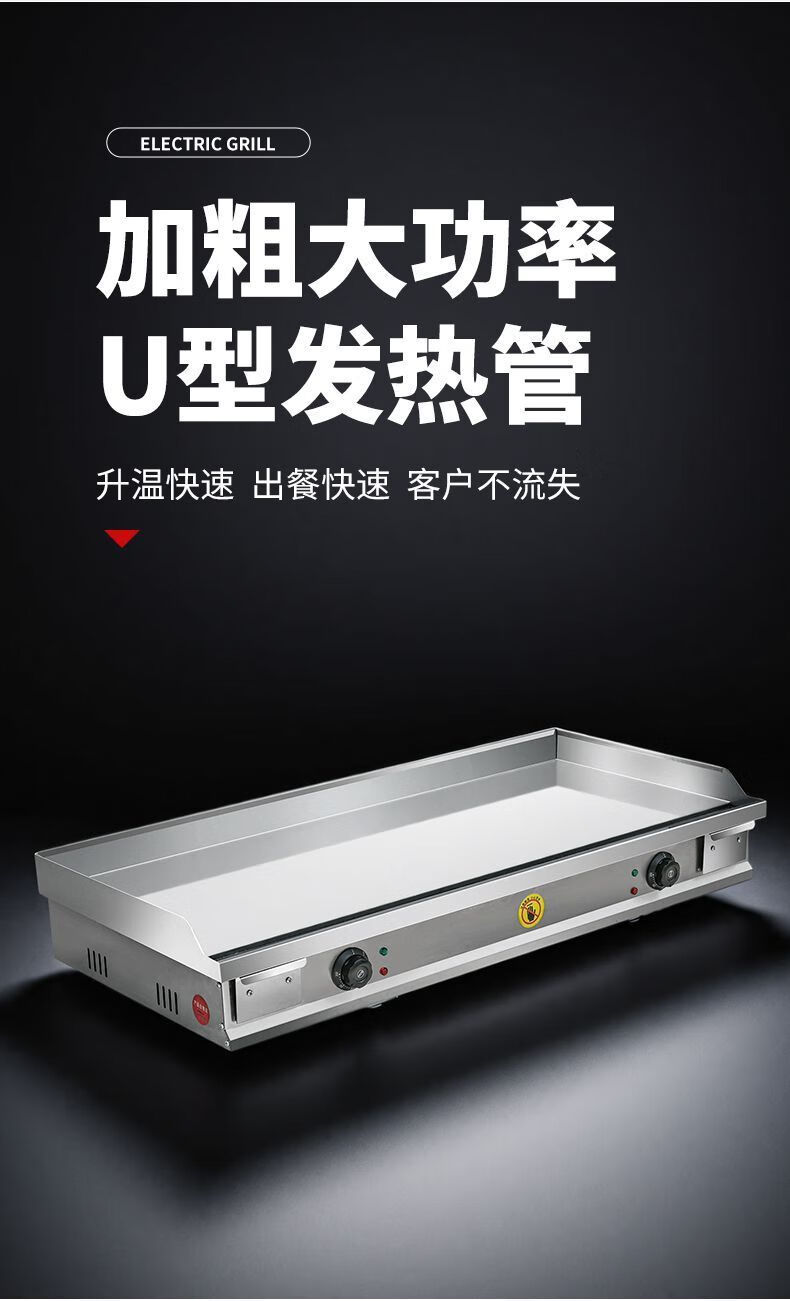 Electric griddle commercial mirror chrome plated iron plate barbecue cold noodles gas hand cake stall machine iron plate squid carbon steel plate 100*50 10mm electric heating model commercial factory direct sales