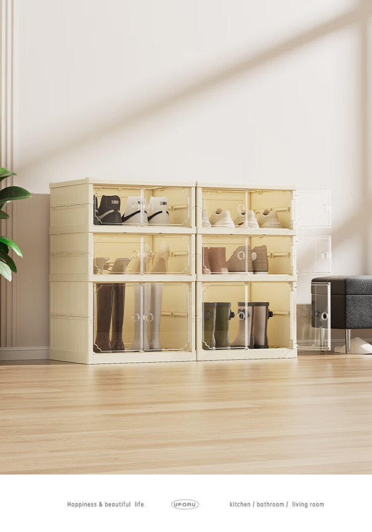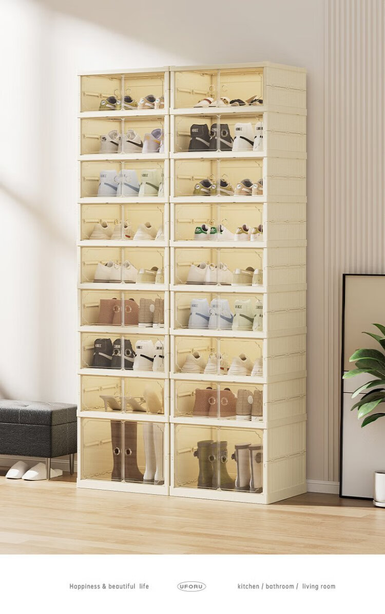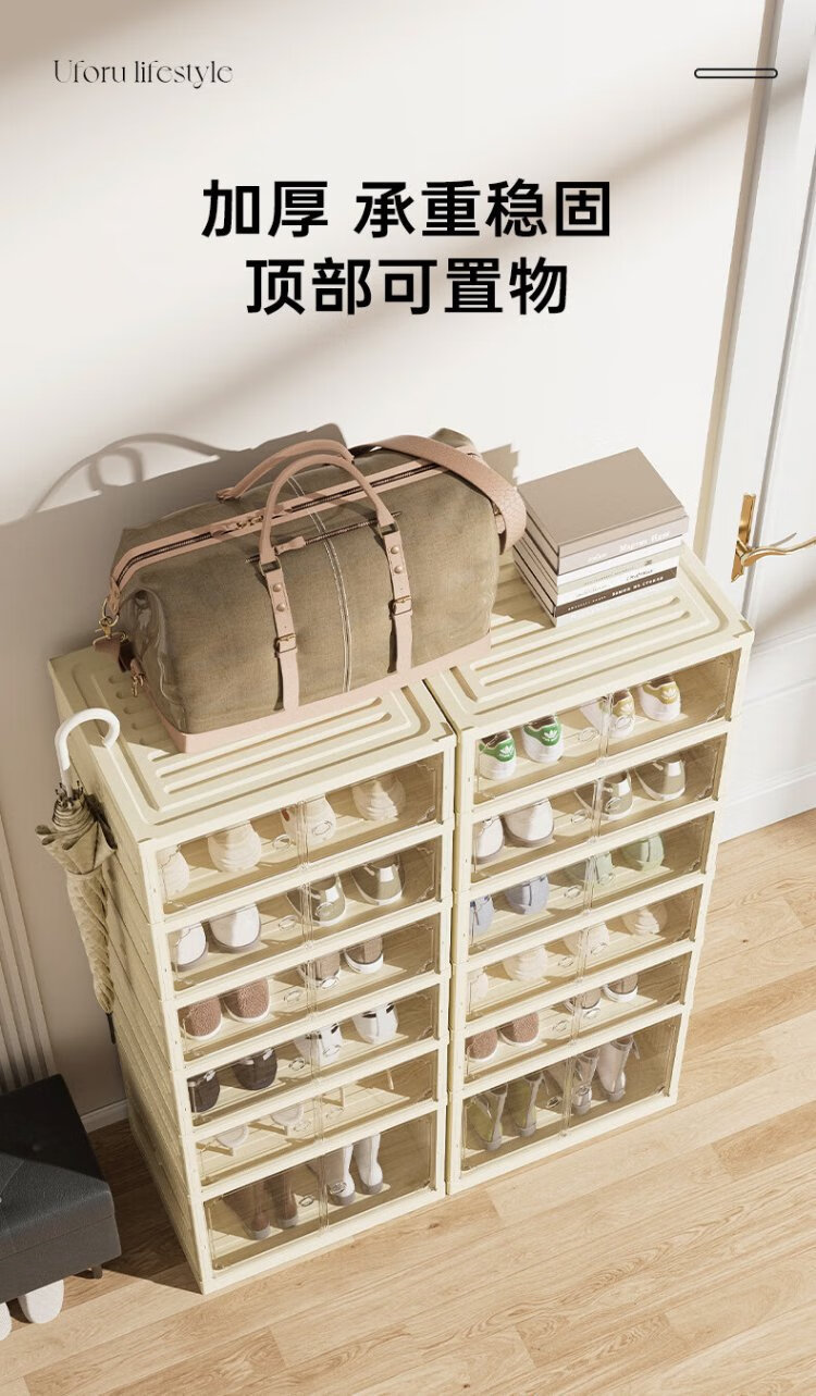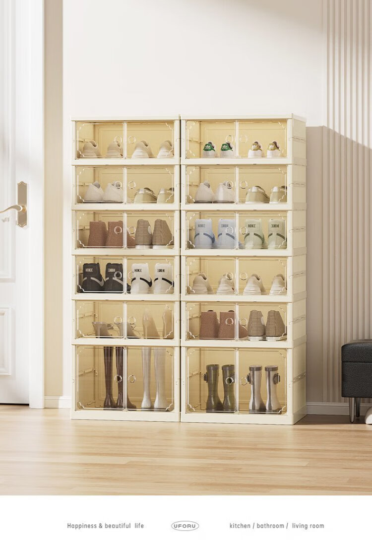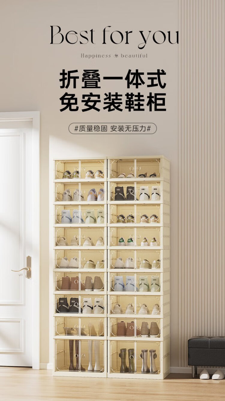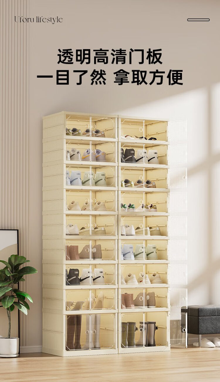 LINGX BOX sporadic box door shoe cabinet free of installation shoe storage box foldable shoe rack entrance dustproof transparent magnetic storage display cabinet cream white double row 5+1 high-rise