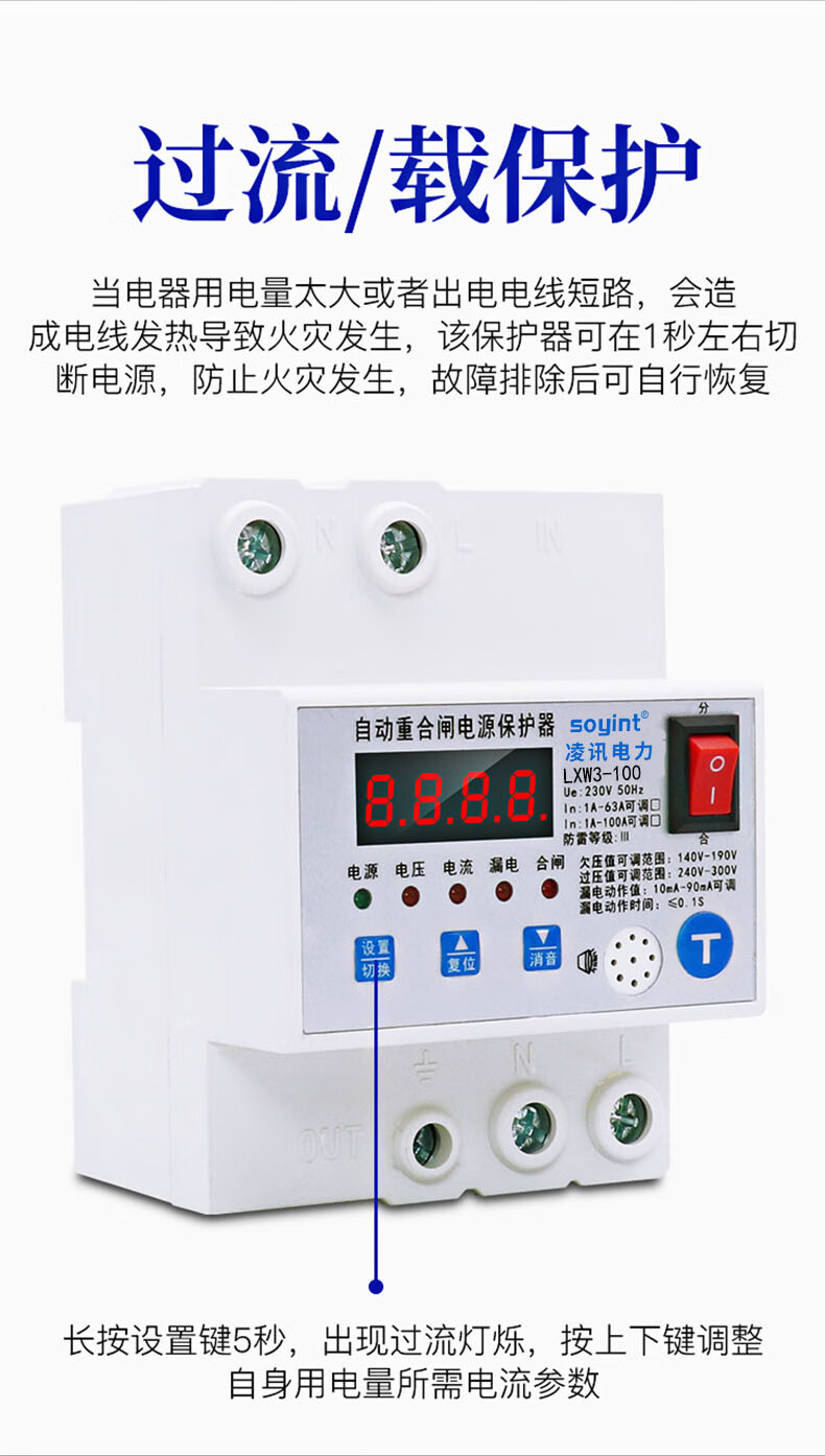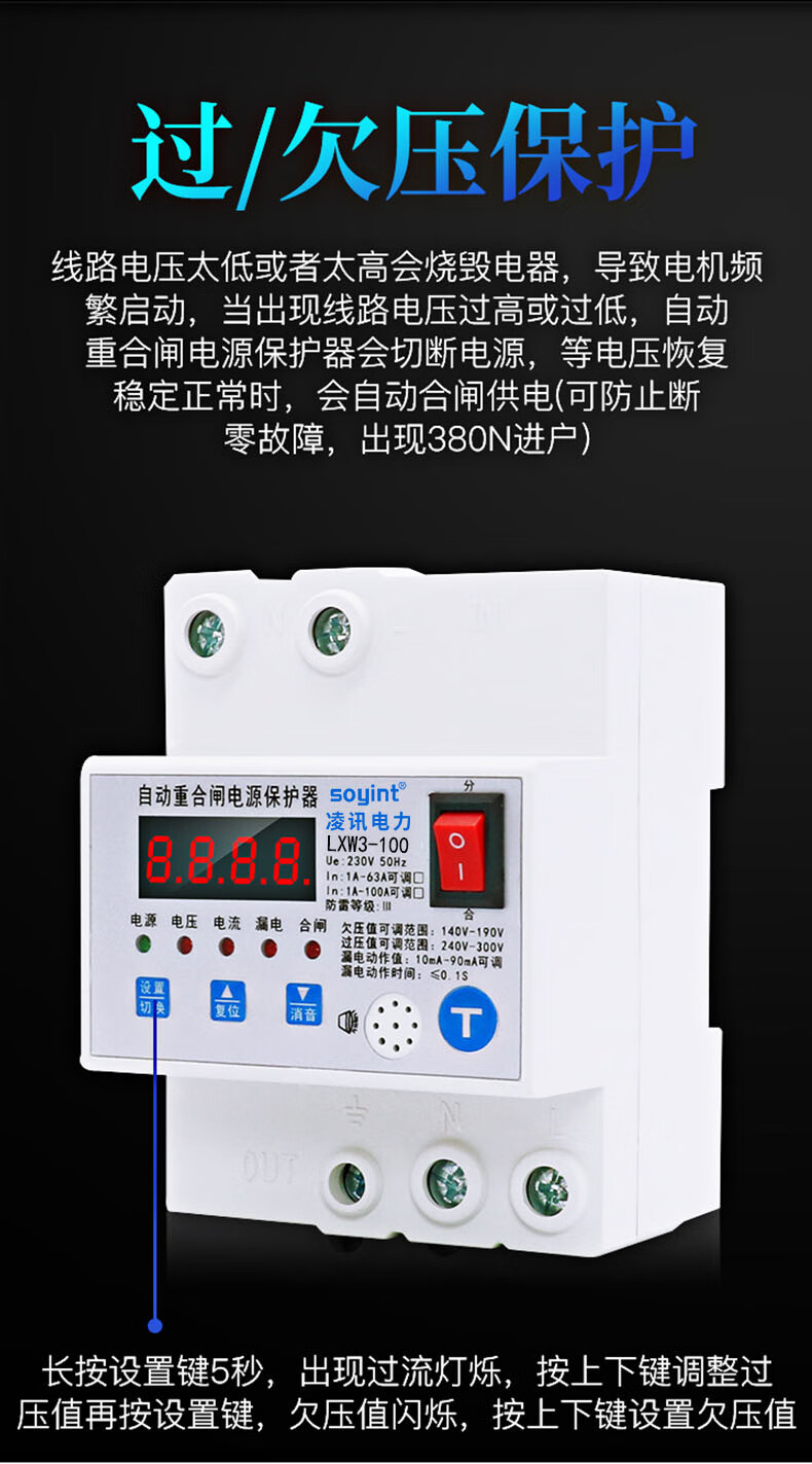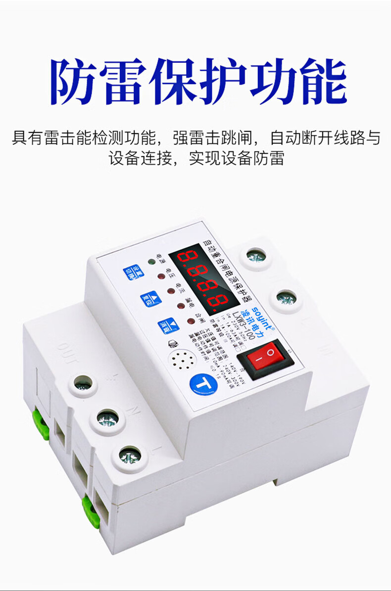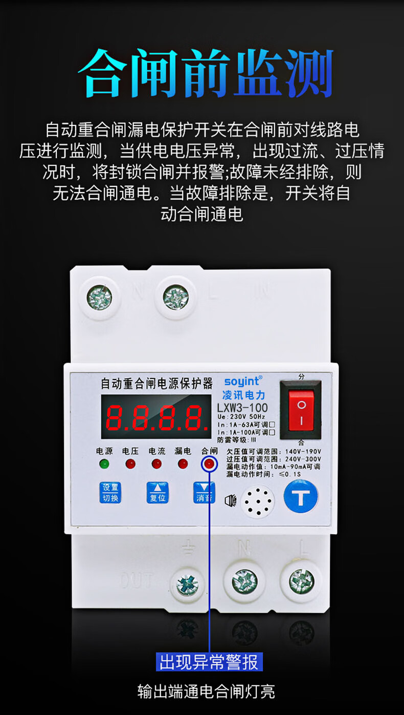Intelligent lightning protection leakage protector automatic reclosing power switch 100A monitoring 220V household main switch 100A 2P