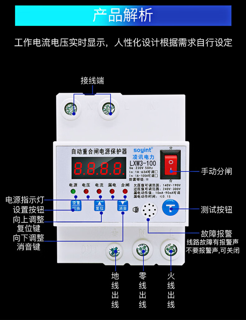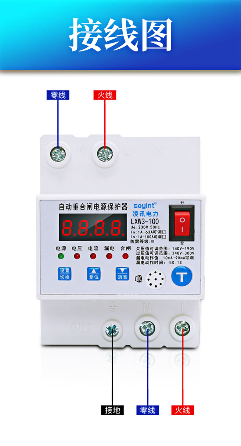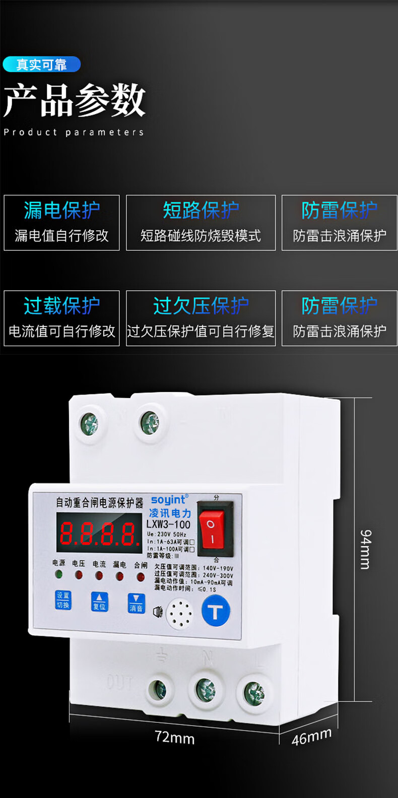 Intelligent lightning protection leakage protector automatic reclosing power switch 100A monitoring 220V household main switch 100A 2P