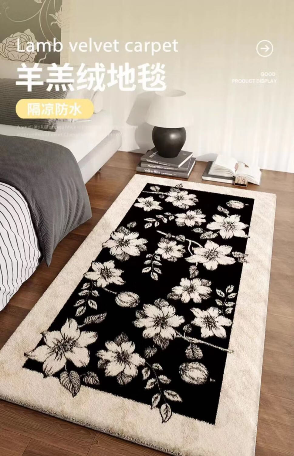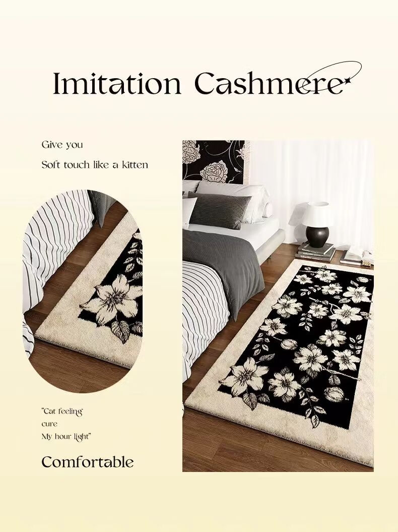 Bedroom bedside blanket plush French style room light luxury and high-end living room carpet all-season imitation cashmere floor mat Ou Yisheng - imitation cashmere 80cm*200cm bedside all over