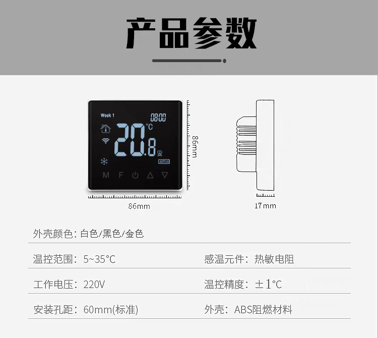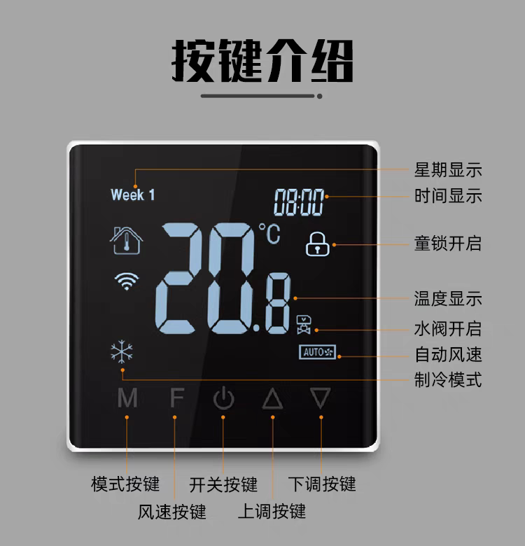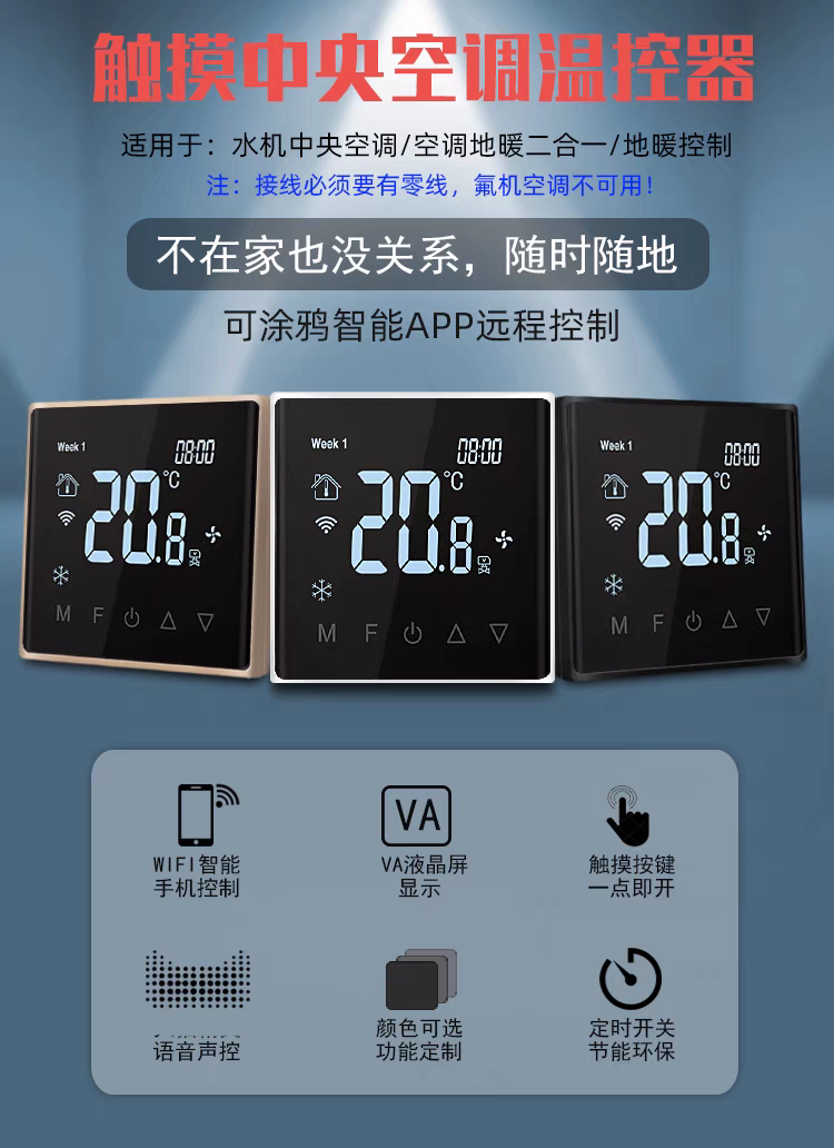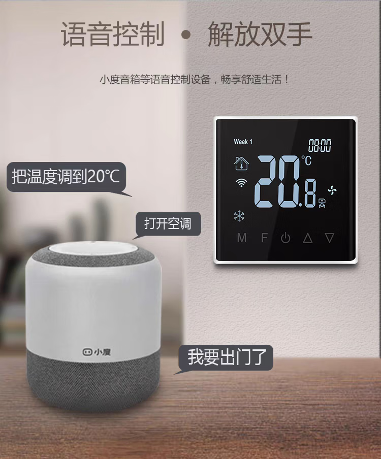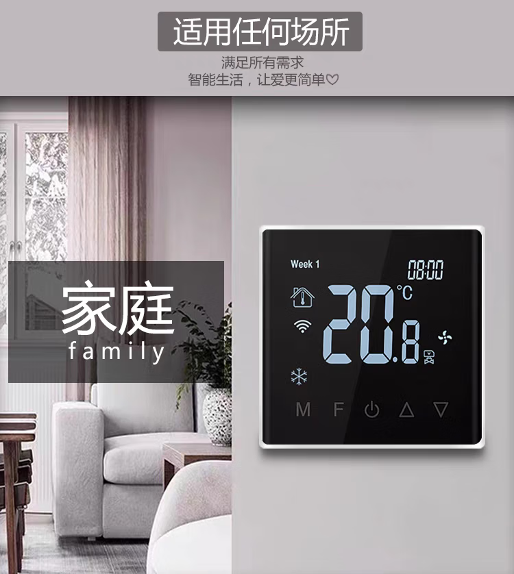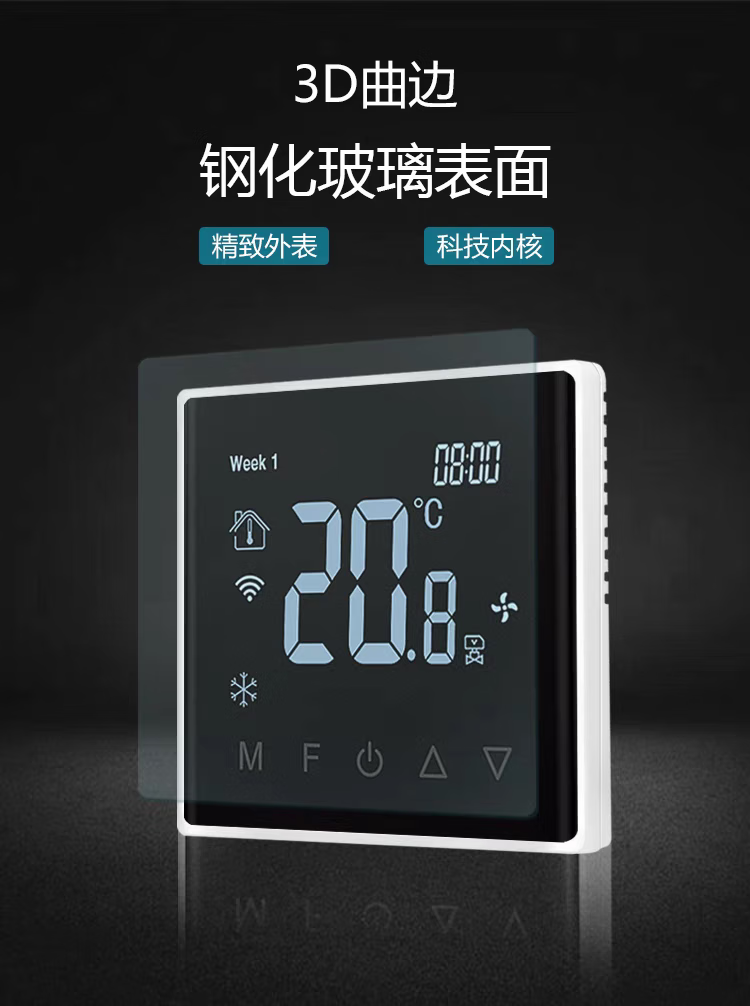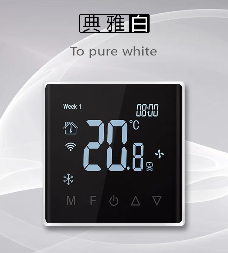 Tuya zigbee wireless wifi central air conditioning thermostat fan coil three-speed switch remote control panel air conditioning model glass screen white