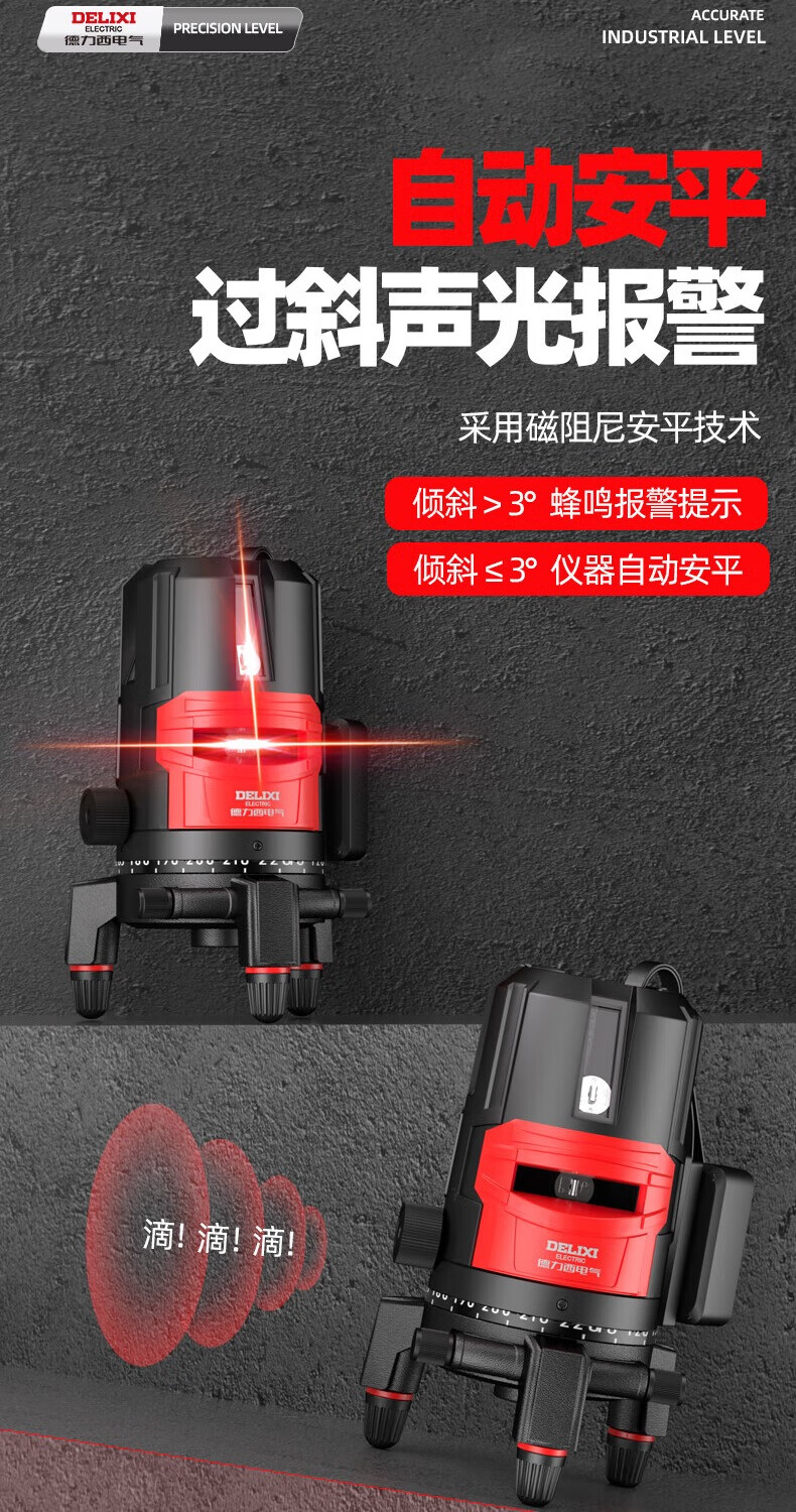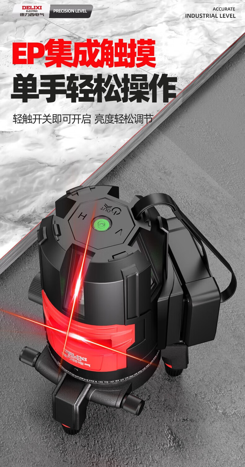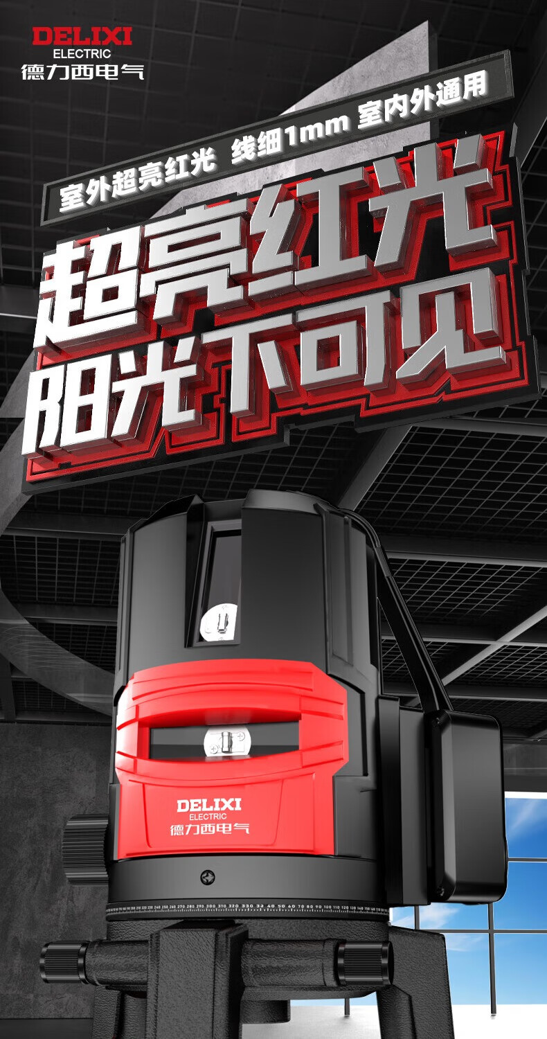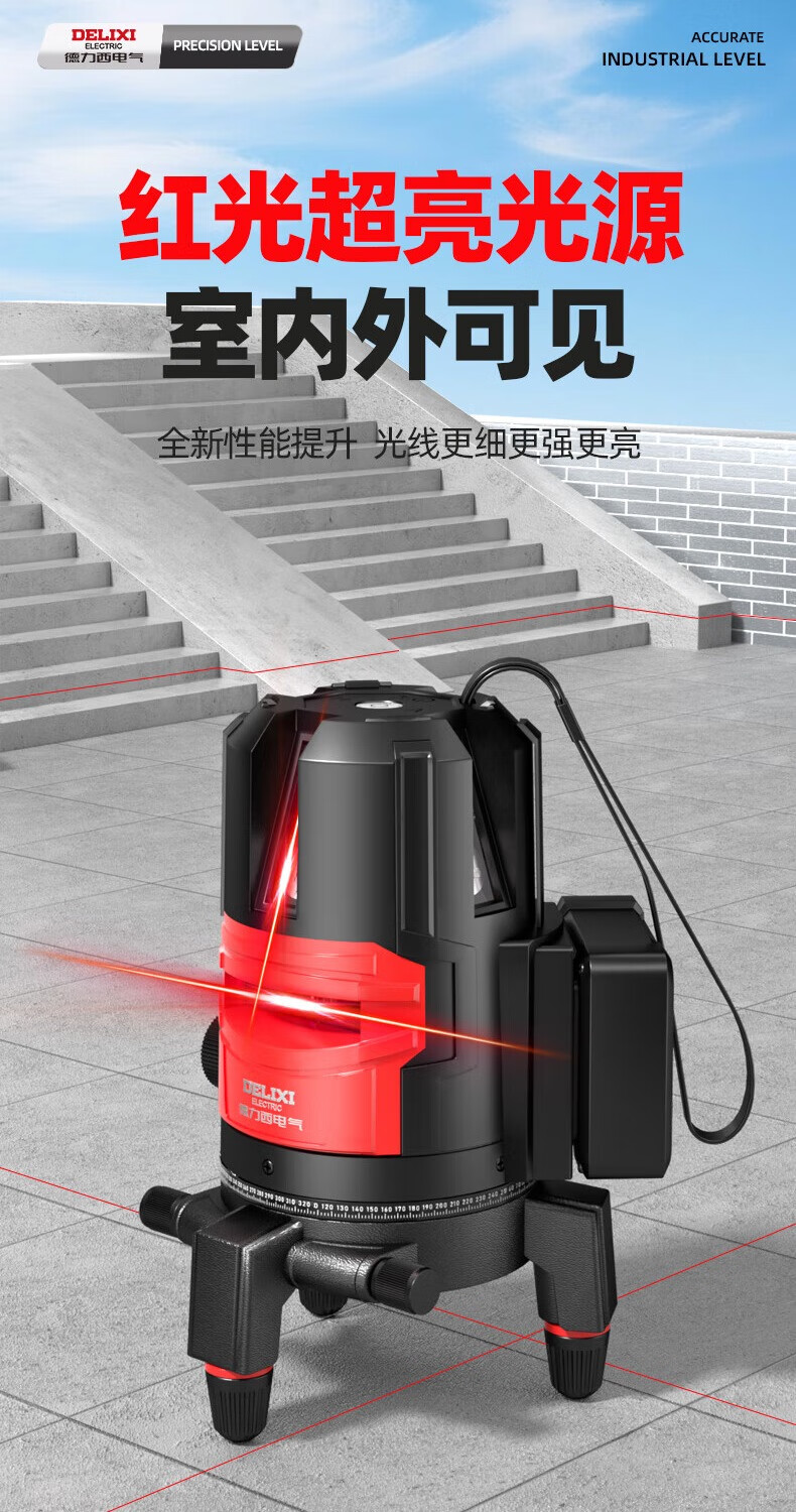 Delixi Electric infrared level meter high-precision strong light thin line automatic leveling green light blue outdoor outdoor construction portable laser outdoor special high-precision red light 5 lines + Big Mac dual power + tripod