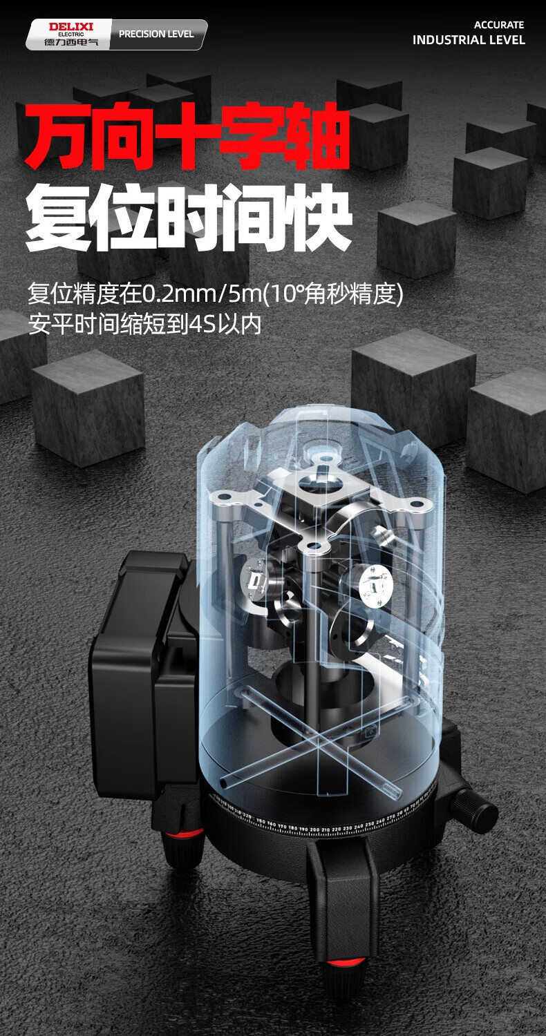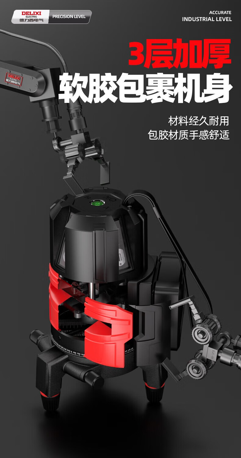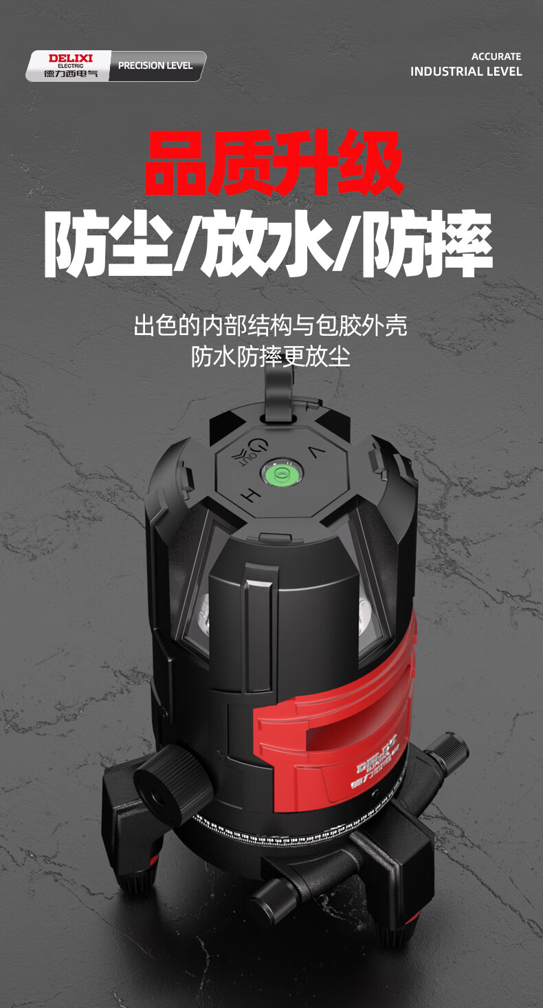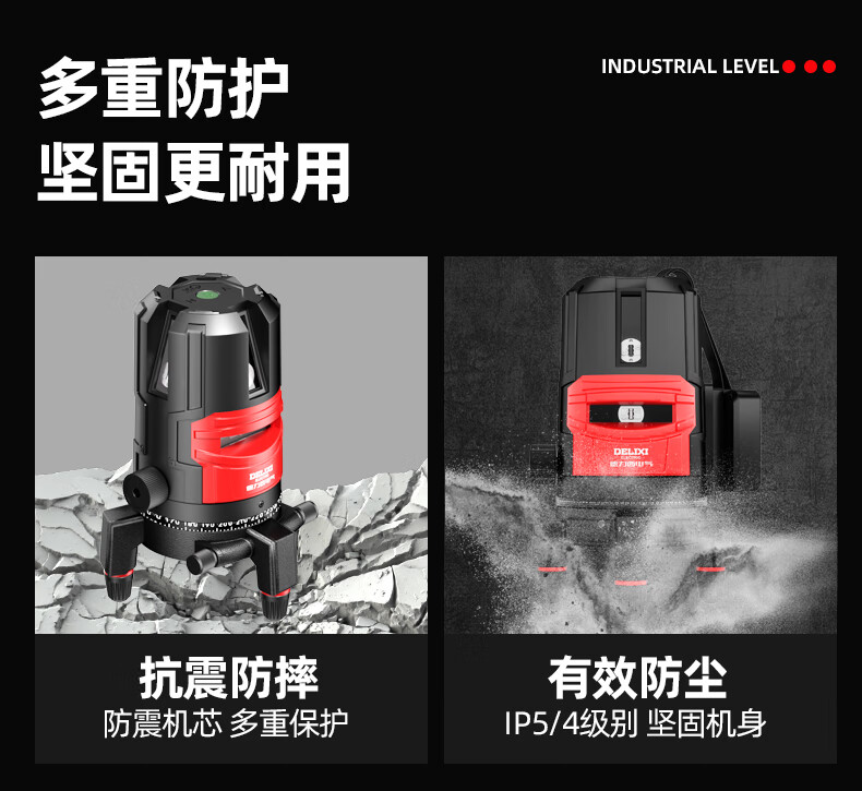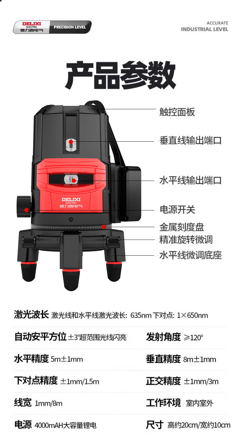 Delixi Electric infrared level meter high-precision strong light thin line automatic leveling green light blue outdoor outdoor construction portable laser outdoor special high-precision red light 5 lines + Big Mac dual power + tripod
