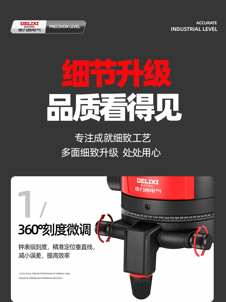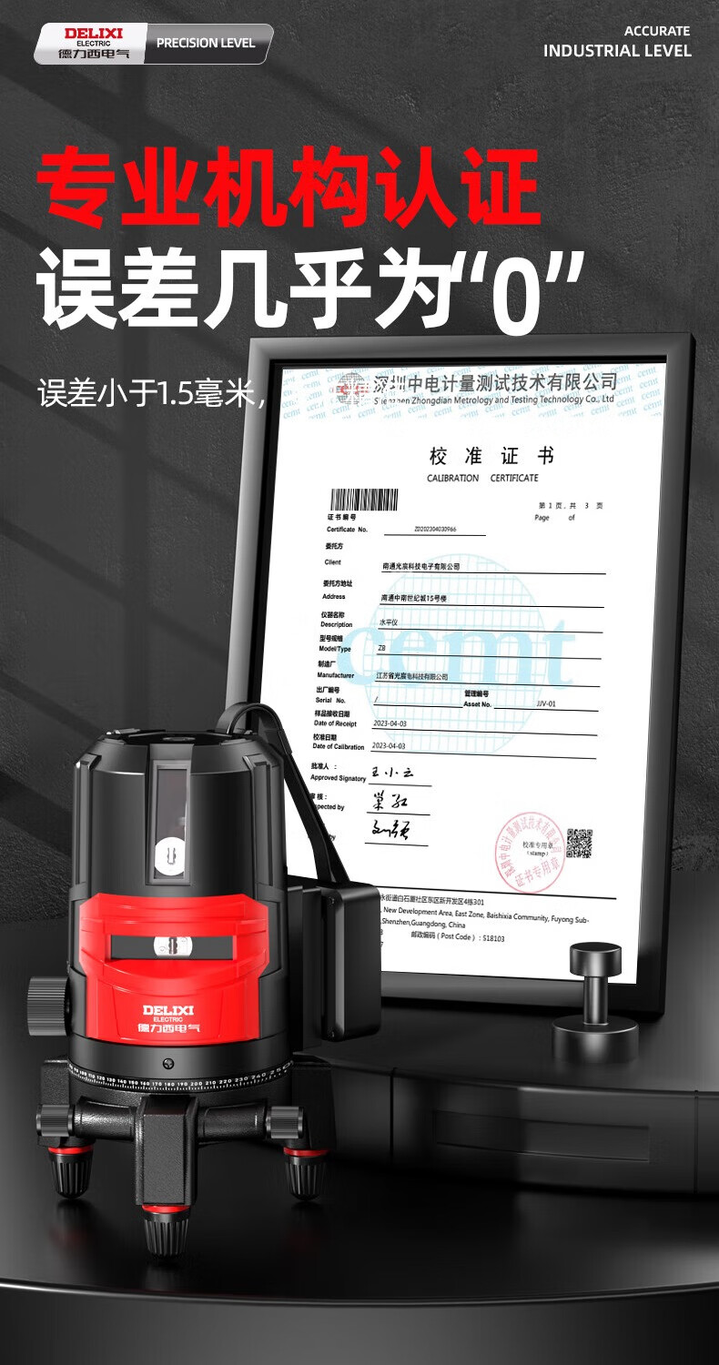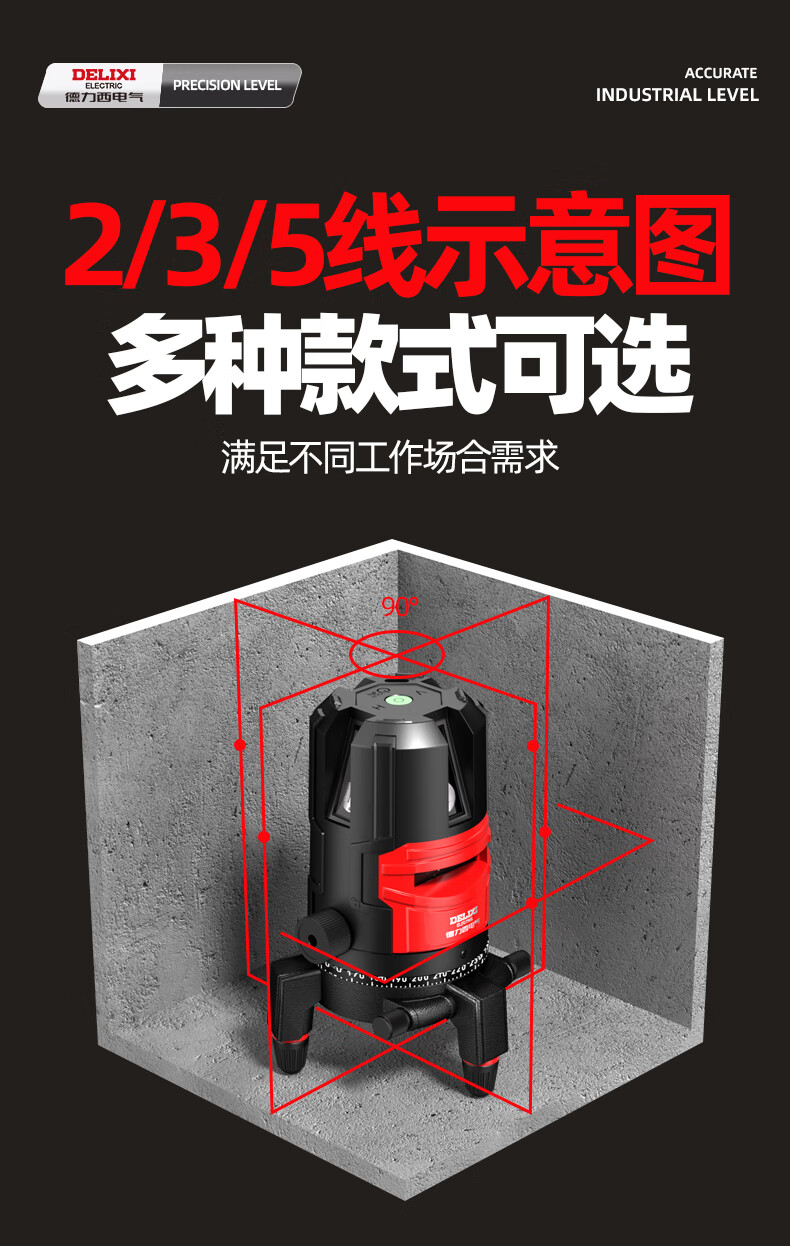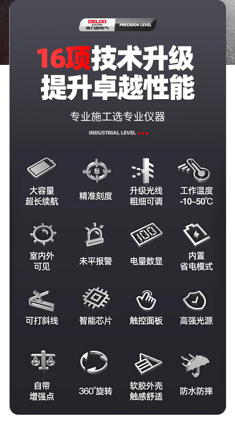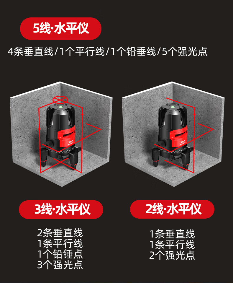Delixi Electric infrared level meter high-precision strong light thin line automatic leveling green light blue outdoor outdoor construction portable laser outdoor special high-precision red light 5 lines + Big Mac dual power + tripod
