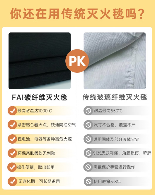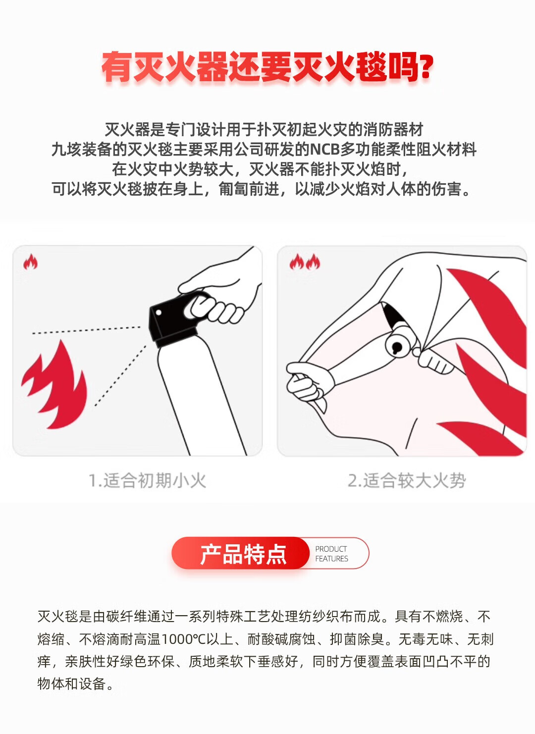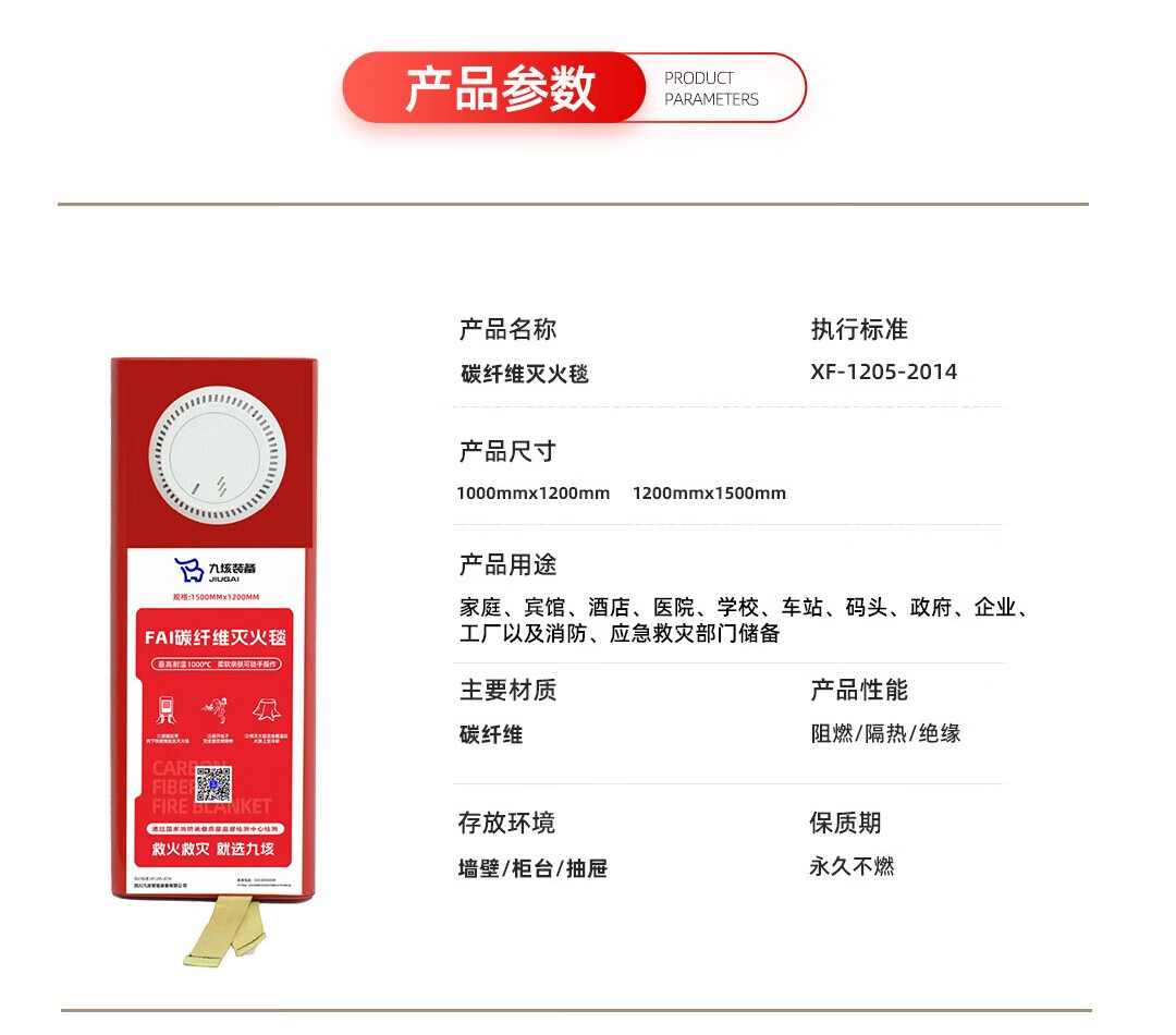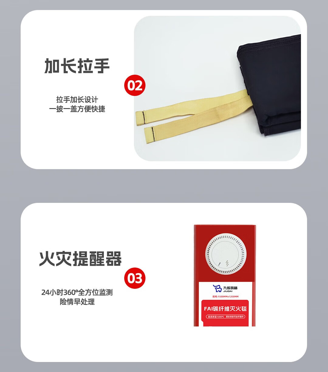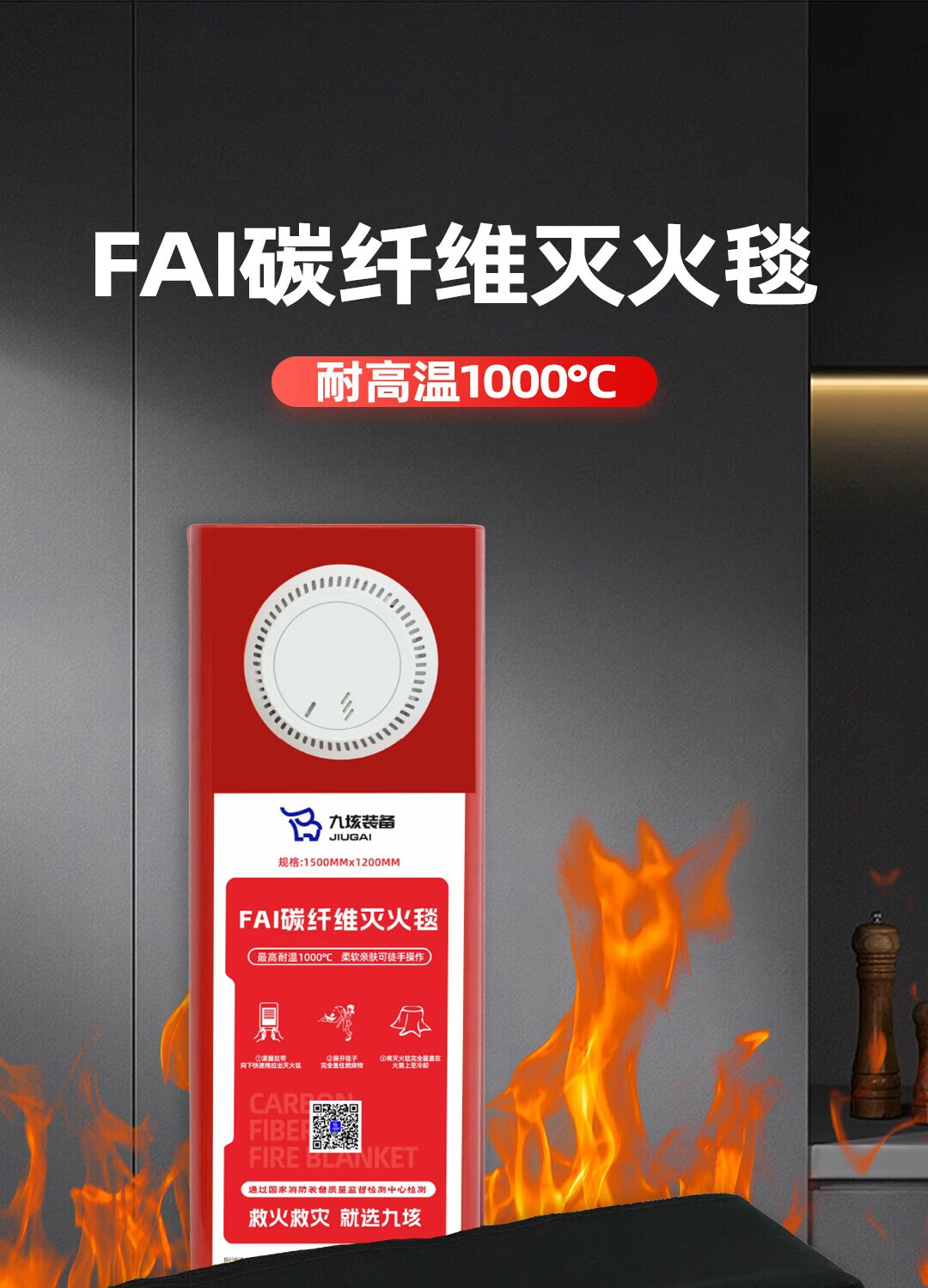 JIUGAI FAI carbon fiber fire blanket fire blanket NCB non-combustible material temperature resistance over 1000 1.5 1.2 with fire alarm reminder 1200mm*1500mm with smoke alarm 1200mm*1500mm