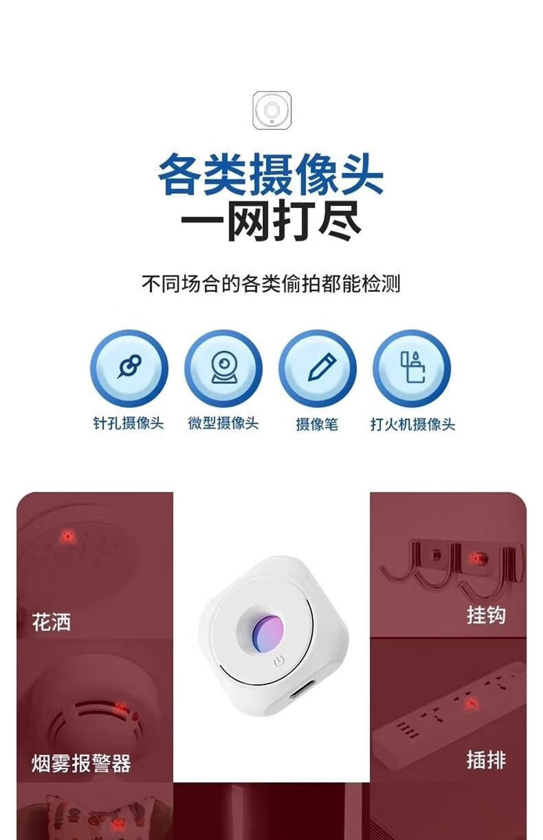 Miyi Hotel Camera Detector Anti-shooting Portable Anti-Peeping Infrared Detector Portable Travel Anti-Sneak Shot Anti-Monitoring White Detector Comes with Hanging Ring + Charging Cable + Instruction Manual