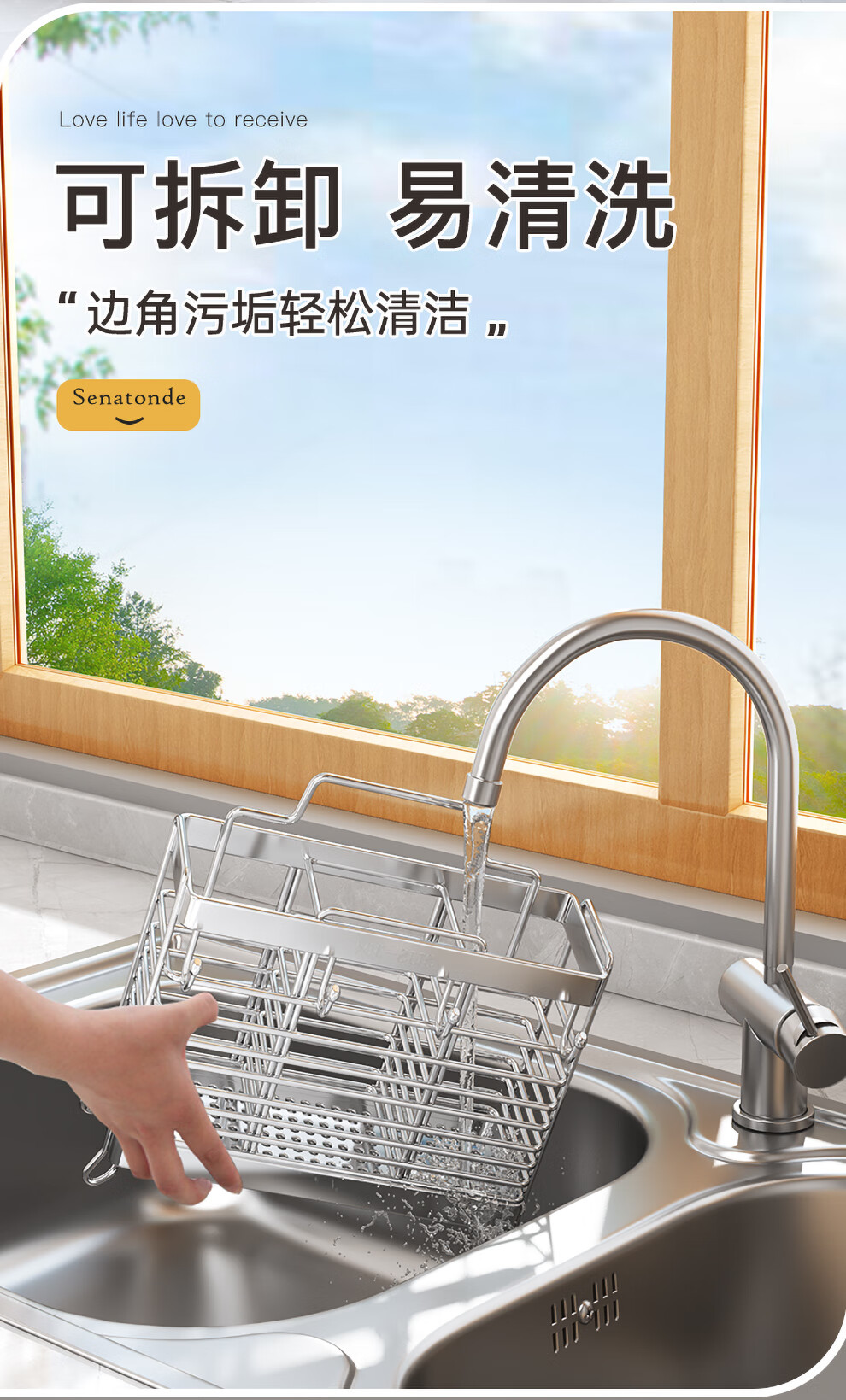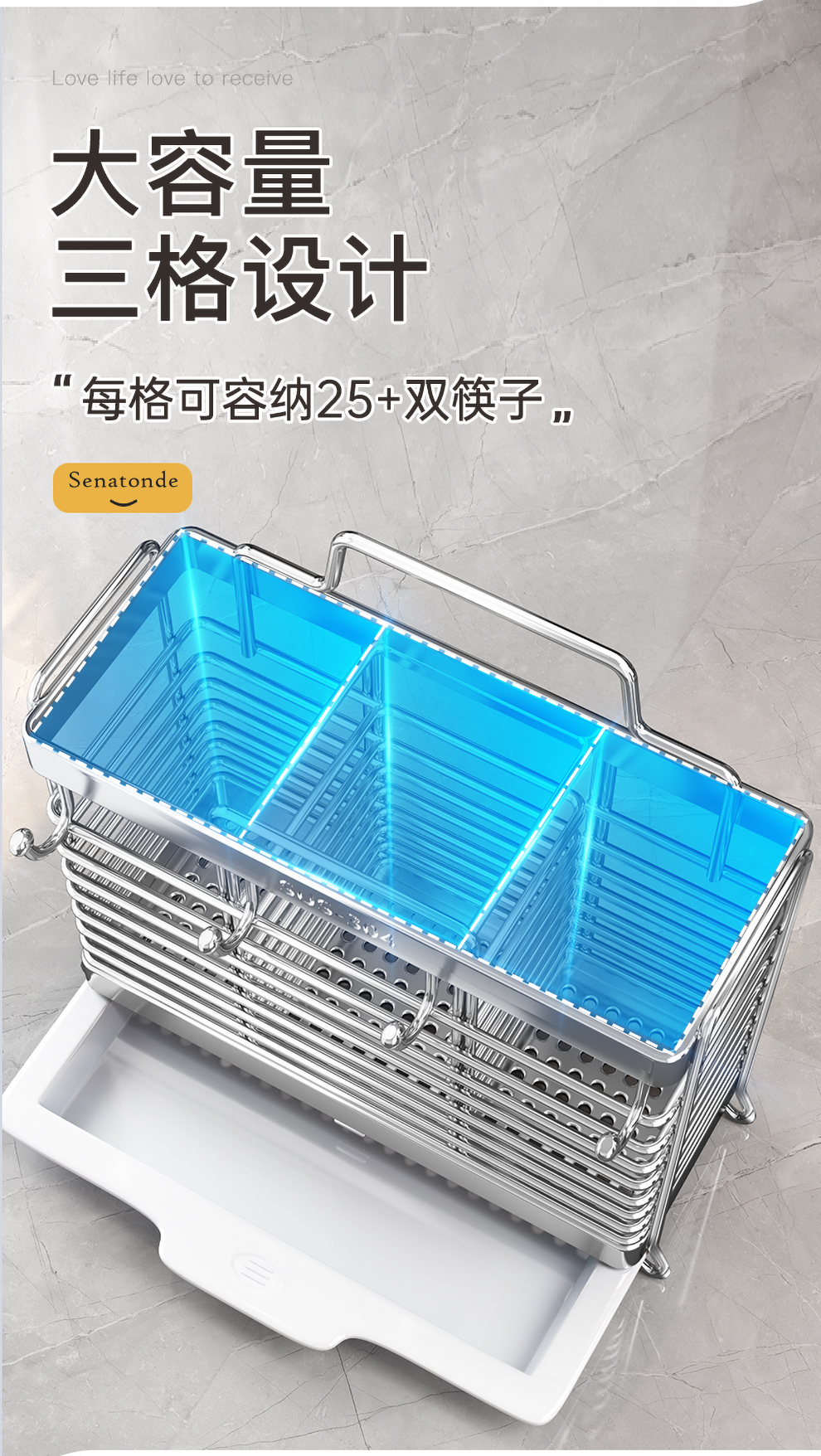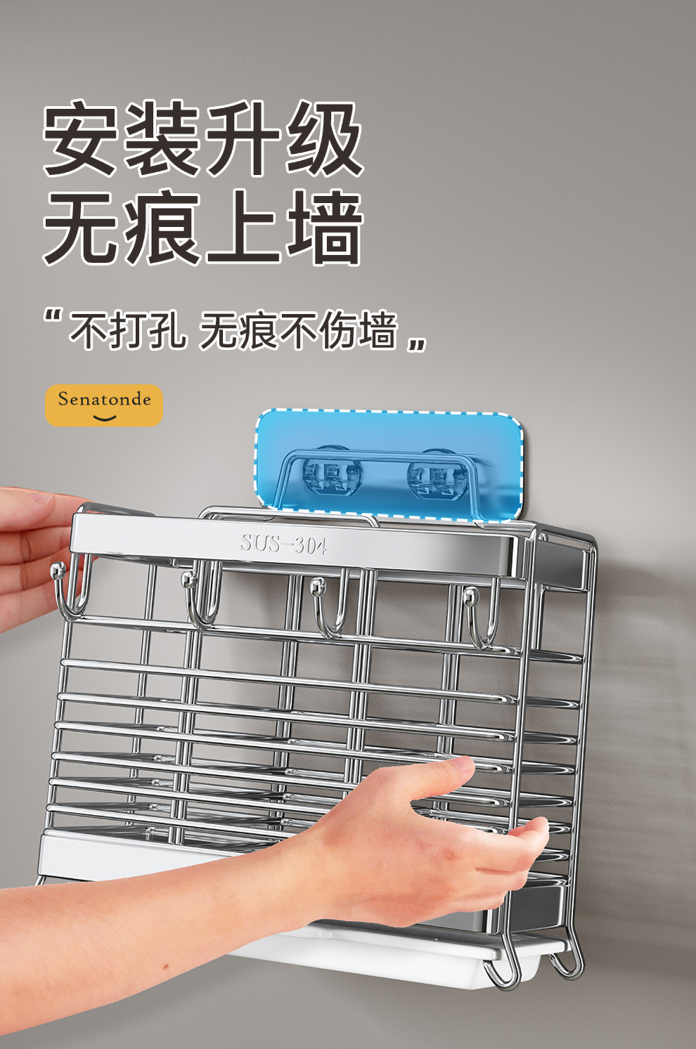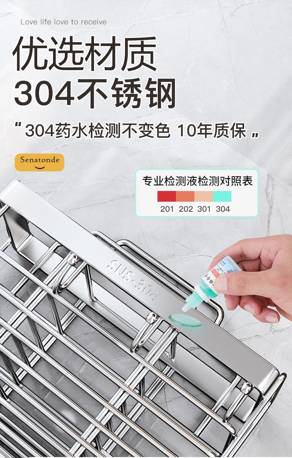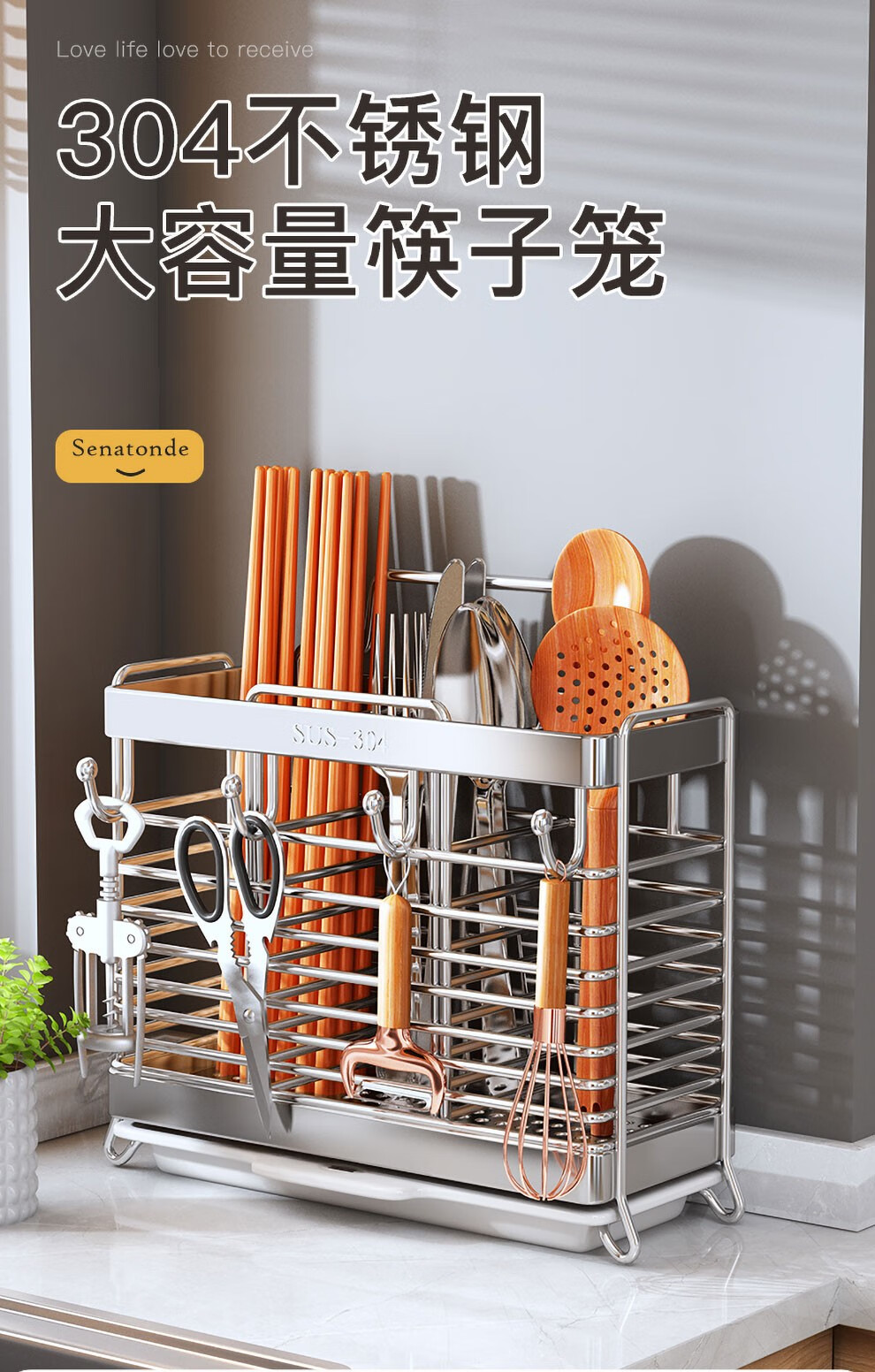 Shuaishi kitchen storage rack 304 stainless steel chopstick cage chopstick barrel nail-free punch-free wall-mounted chopstick holder drain knife holder 304 stainless steel type A-4 hooks