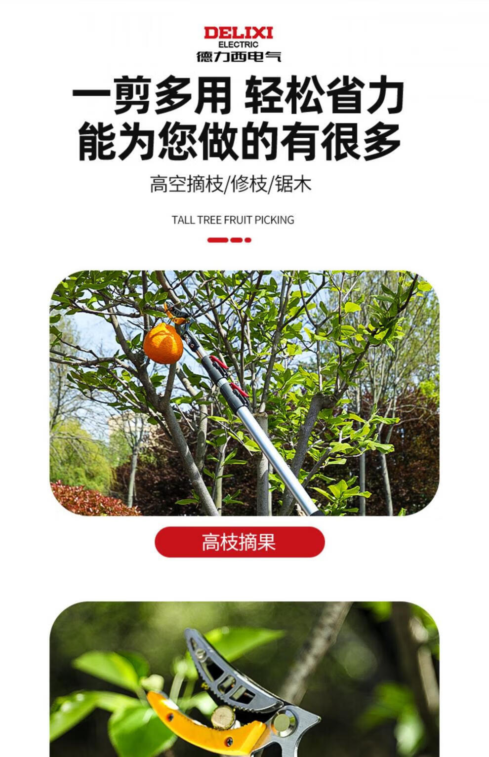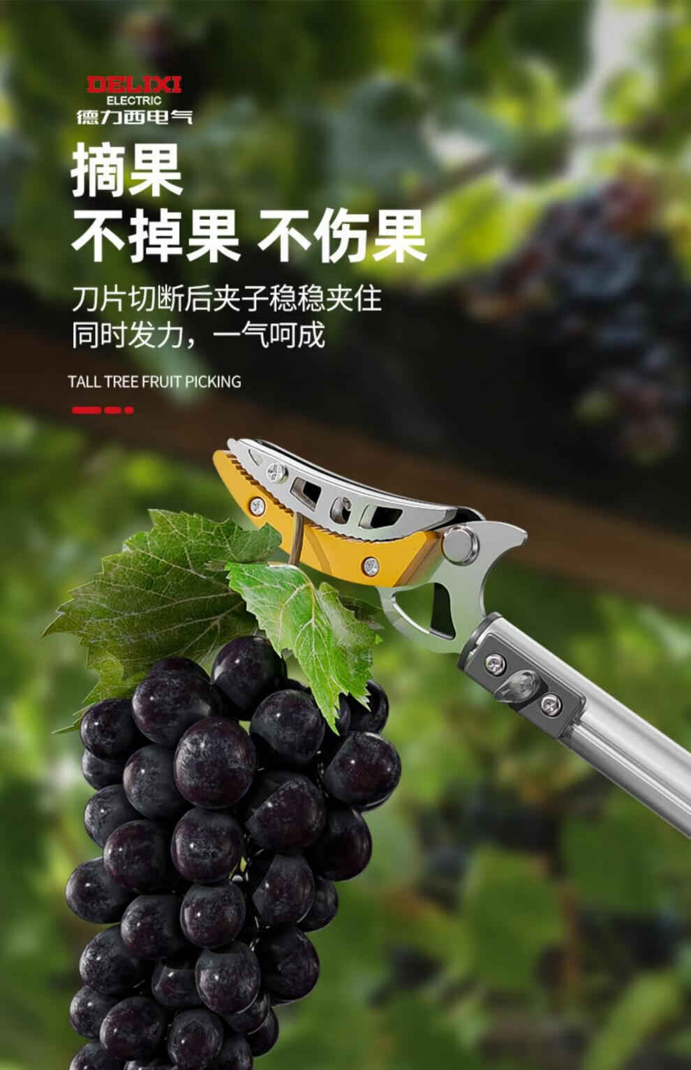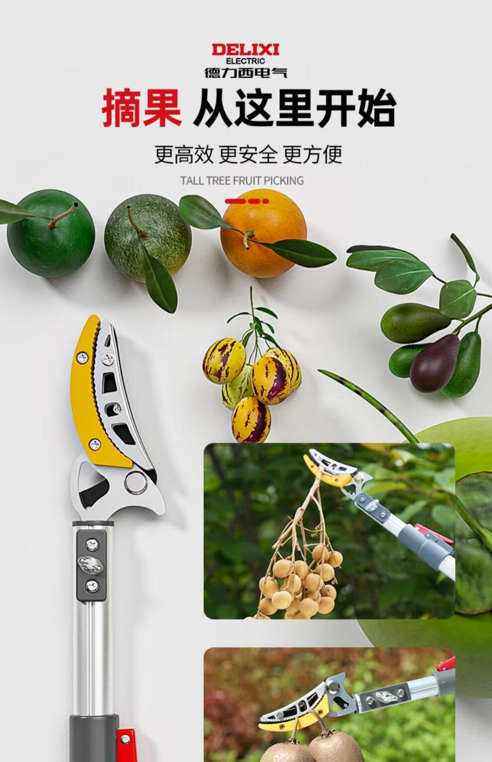 Delixi Fruit Picking Artifact Telescopic Pole Fruit Picking High Branch Shears Scissors Fruit Picking Orange High Altitude Picking Fruit Picking Device Upgraded Single Section Telescopic Pruning and Picking Dual-Purpose 1.5