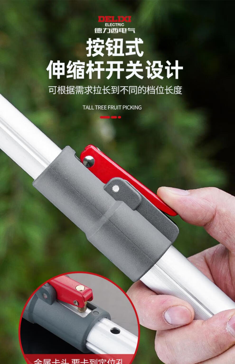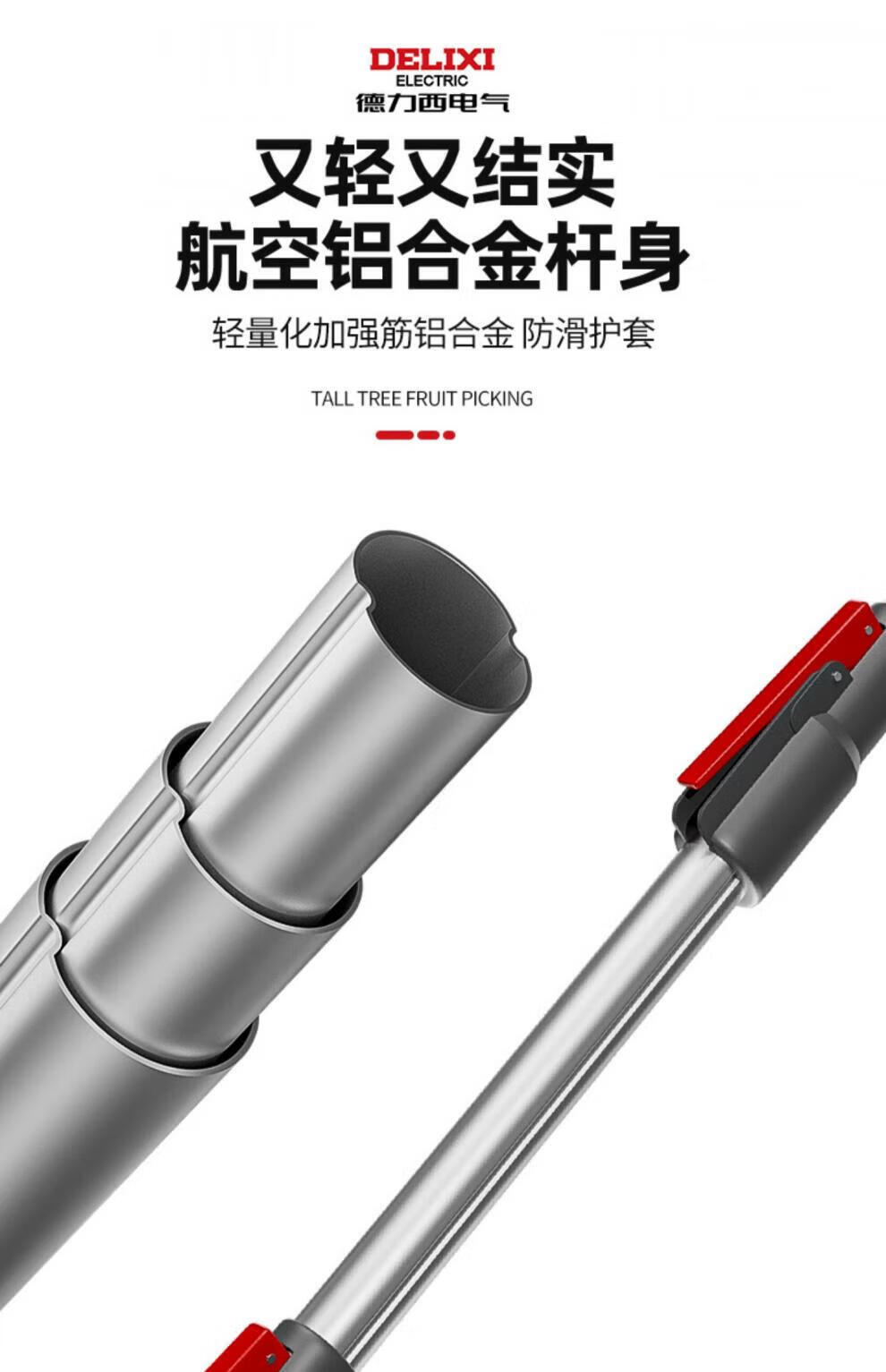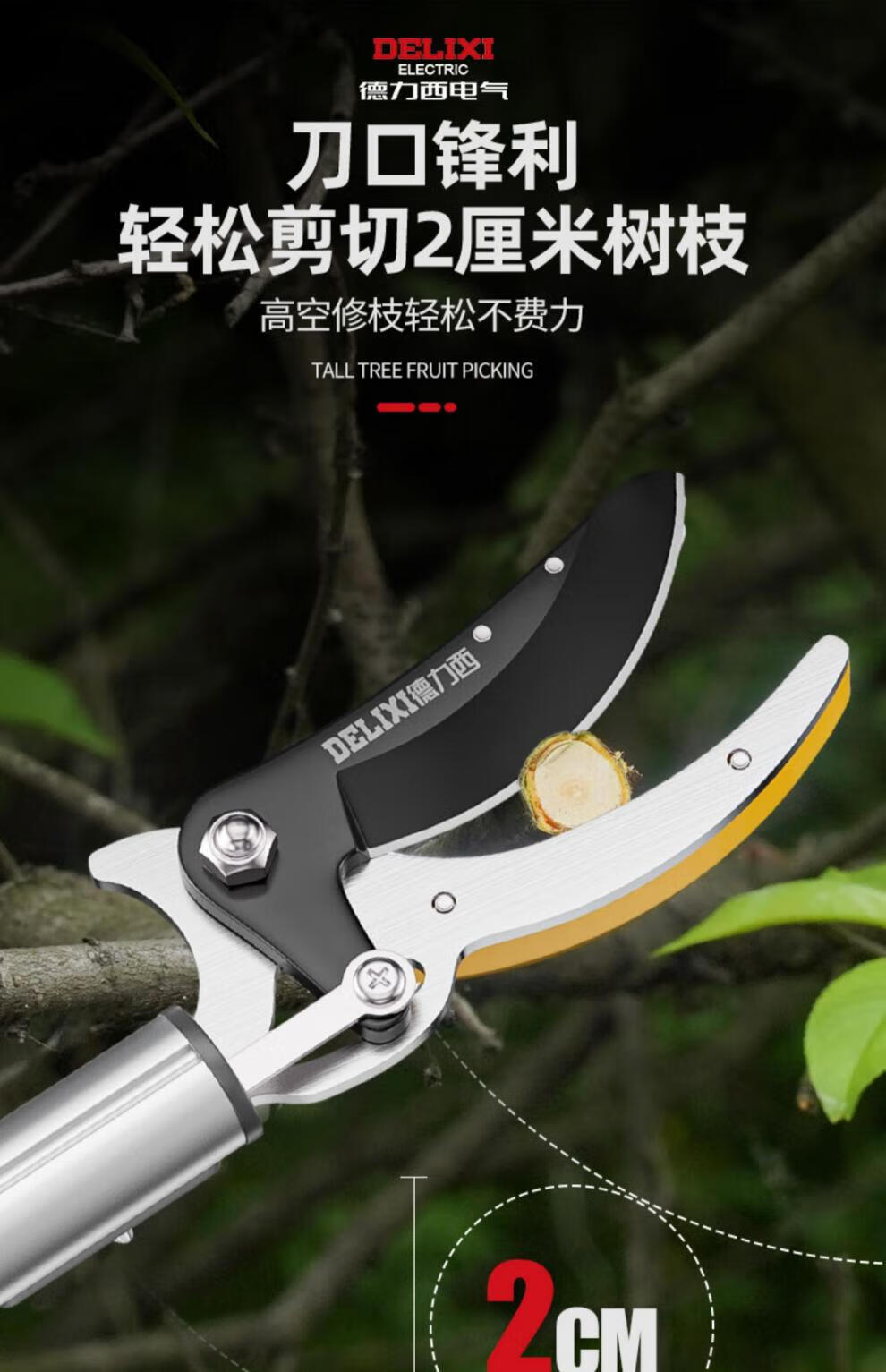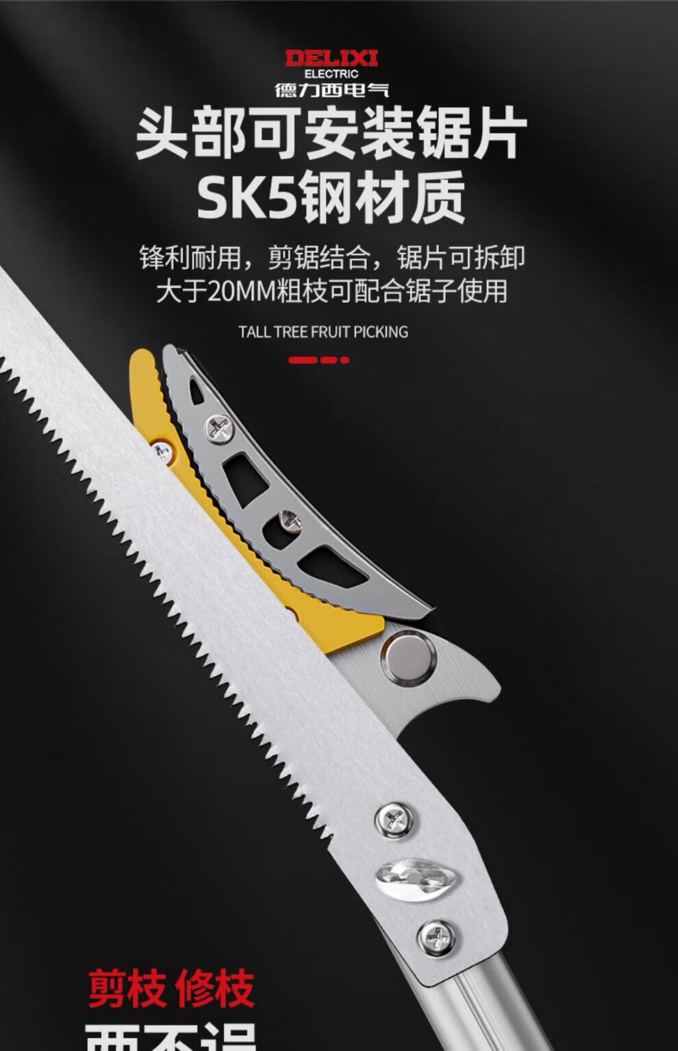 Delixi Fruit Picking Artifact Telescopic Pole Fruit Picking High Branch Shears Scissors Fruit Picking Orange High Altitude Picking Fruit Picking Device Upgraded Single Section Telescopic Pruning and Picking Dual-Purpose 1.5