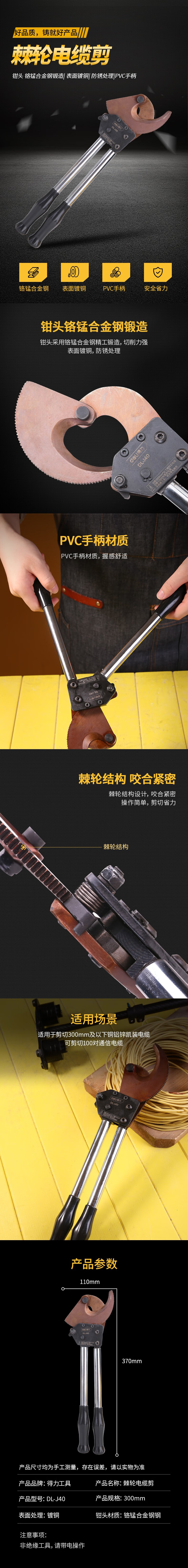Deli professional grade ratchet cable cutter large mouth cable scissors steel strand cutter gear type bolt cutter scissors ratchet cable cutter 40mm DL-J40