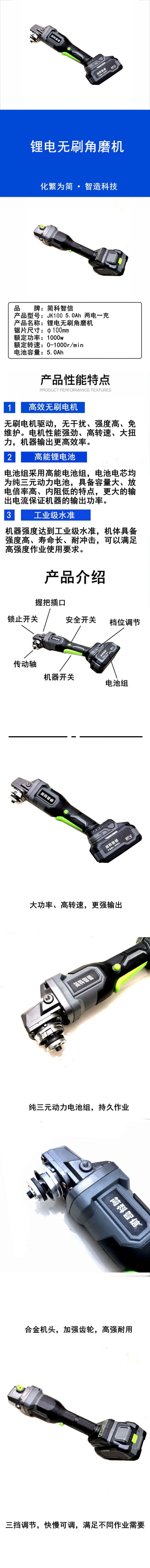Jianke Zhixin lithium battery brushless angle grinder JK-100 5.0Ah two batteries and one charger set JK-100 5.0Ah two batteries and one charger set