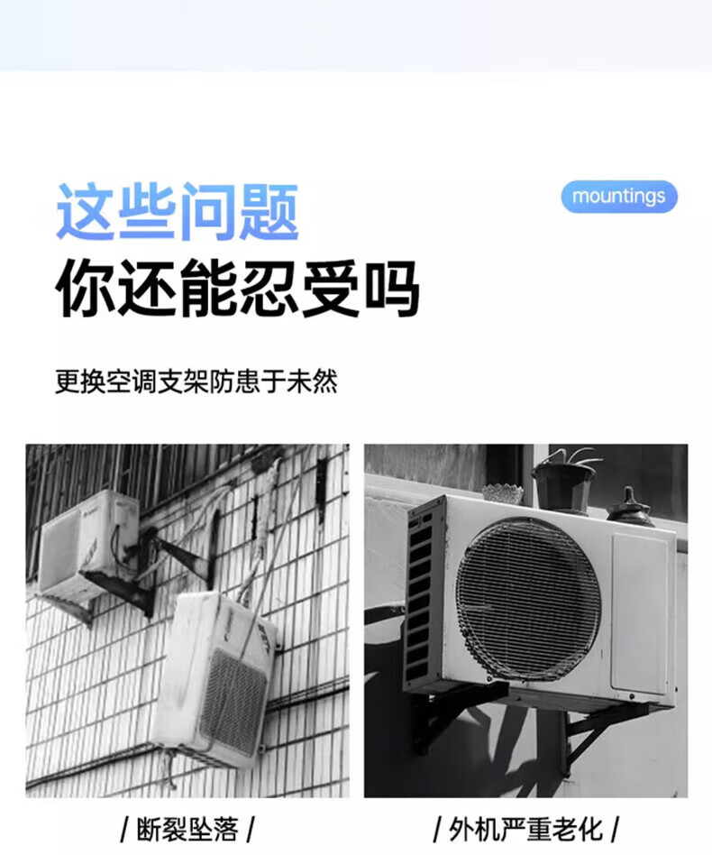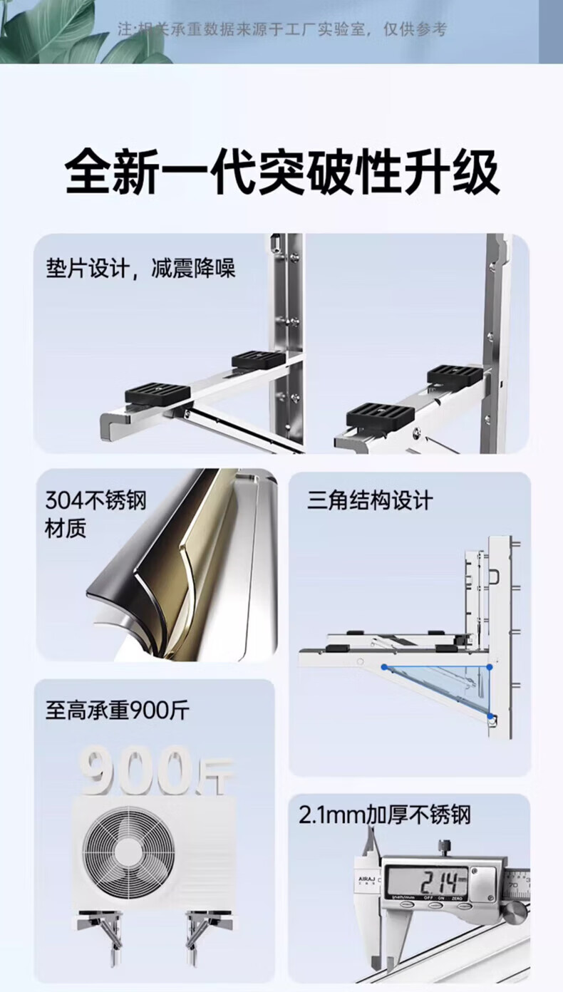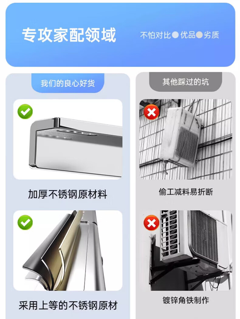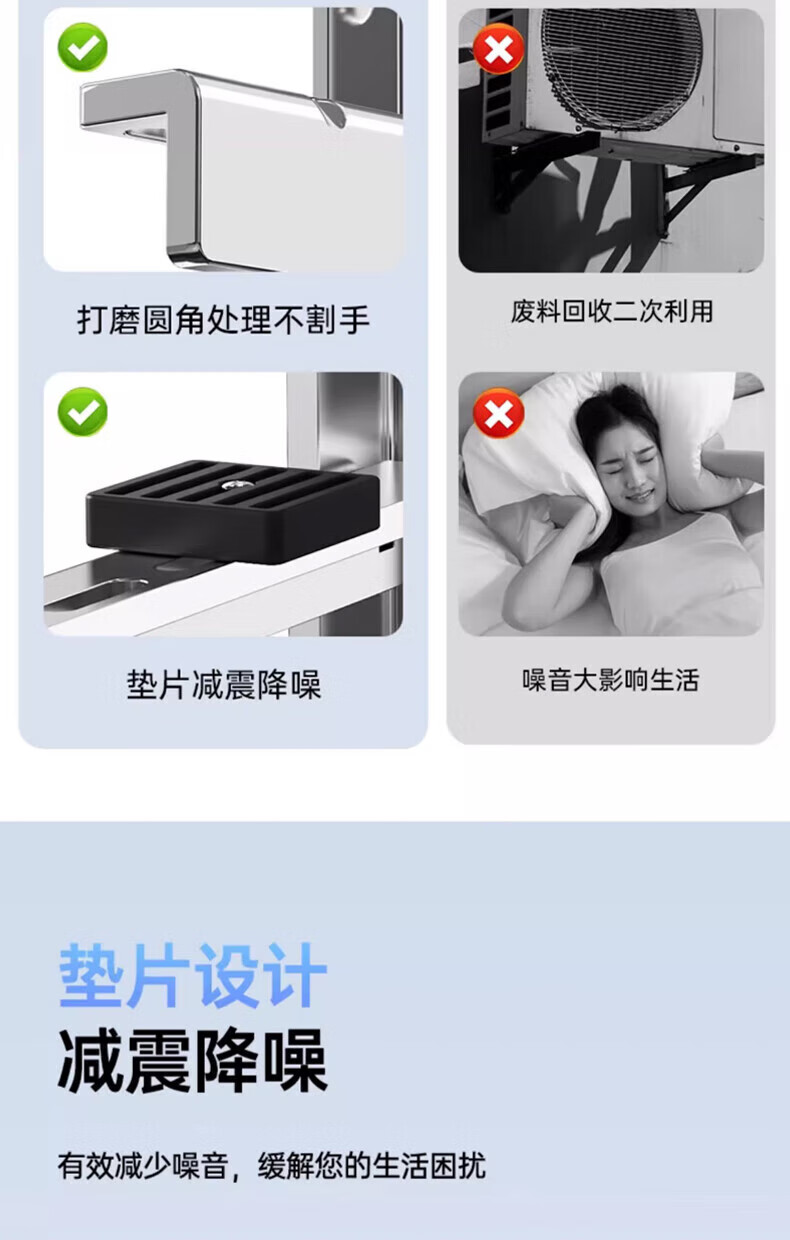 Beishi is suitable for Gree air conditioner outdoor unit bracket thickened stainless steel air conditioner shock pad bracket 201 304 stainless steel air conditioner bracket with 4 shock pads 1-1.5P universal/with extension screws